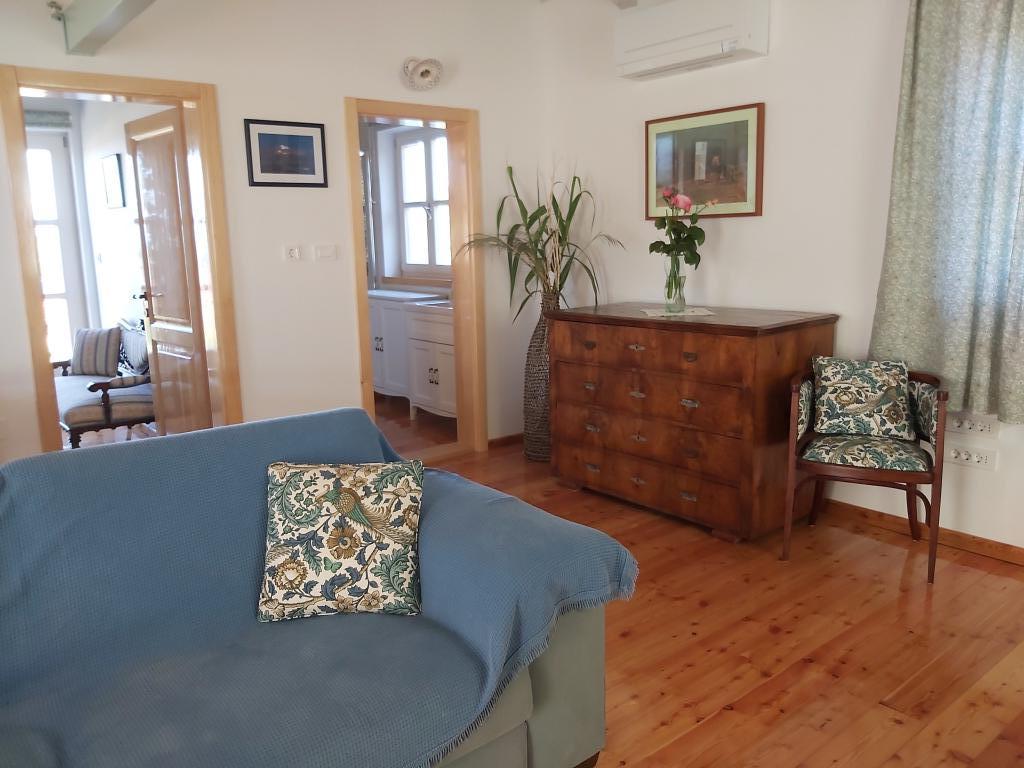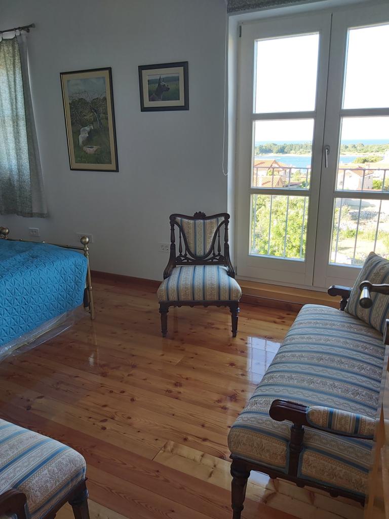Čeprav je naša hiša oddaljena 5 minut hoje od središča idiličnega mesta Ilovik, je posebna in vredna ogleda. Edini, znotraj kmetije, imamo prostoren, razkošno urejen apartma, kategoriziran s 4 sončki, ki ga na otokih ne boste zlahka našli. Lesena tla, kombinacija modernega in starinskega lesenega pohištva, ki ga večinoma obnovimo sami, vas bodo presenetili s svojim udobjem in lepoto. Iz spalnice imate čudovit pogled na celo pristanišče in sosednje otoke Sv. Peter in Orjule. In kar je najpomembneje, ponoči imate tišino in pogled na zvezdnato nebo. Stanovanje zadovolji vse želje sodobnega človeka, a ponuja tudi več kot to. Smo avtorji monografije o Iloviku, tukaj lahko izveste vse, kar morate vedeti o zgodovini otoka, naravi, običajih, na voljo vam je velika knjižnica. Smo ljubitelji živali, gojimo ovce in koze, s katerimi se lahko družite, pa tudi naše pse, mačke, race (mi smo vseeno kmetija!). Na veliki pokriti terasi lahko uporabite veliko leseno mizo.