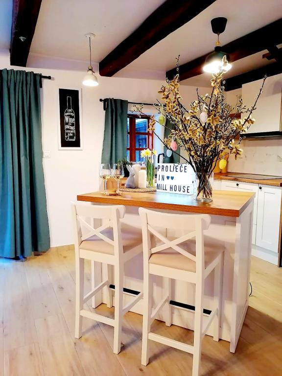 Počitniška hiša "U Mlinu" - In Millhouse se nahaja uro vožnje od Zagreba, v bližini mest Kutina, Lipik, Daruvar, Novska. Do prvega naselja je 5 minut hoje. Posest, na kateri se nahaja hiša, je velika in prostorna. Na dvorišču se nahajajo jezero, mostiček, žaga in mlin, ki dajejo pridih tradicije celotni lokaciji, čeprav je dekoracija tako zunanjih kot notranjih prostorov narejena v kombinaciji modernega in tradicionalnega. V neposredni bližini počitniške hiše je reka Pakra - približno 30 metrov od hiše. Notranjost je zasnovana kot topel, vesel in prijeten prostor za druženje s prijatelji ali družinska srečanja. Hiša je opremljena s potrebnimi gospodinjskimi aparati, kopalnica ima tudi osnovne potrebščine (papir, brisače, sušilnik za lase). Sobe imajo tudi posteljnino, odeje in prostore za shranjevanje oblačil.
