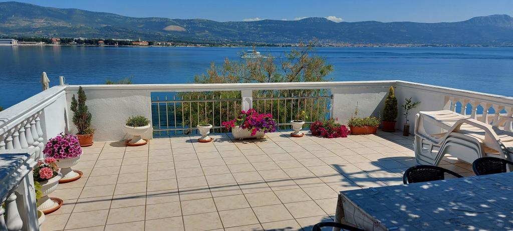 Apartma Vladic se nahaja na polotoku Čiovo blizu najlepšega mesta na svetu Trogir v Arbaniji.Apartma A4+1 se nahaja v prvi vrsti do morja v pritličju,udoben,moderno,popolnoma in moderno opremljen.Velika terasa 42m2 se nahaja 10m od morja s pogledom od Trogirja do Splita.Gostom je na voljo zunanji tuš,žar kamin in ograjeno dvorišče,je vrata s ključem/zaradi varnosti otrok/.Mogoče je jesti v 3 mesta / v kuhinji, pred apartmajem in na veliki terasi Za dnevno kopanje lahko izberete plažo tik pod apartmajem, ki je zgrajena iz majhnega ovalnega kamna, morje je plitvo in primerno za otroke Na polotoku Čiovo vas lahko najdete divje in nedotaknjene plaže, pa tudi večje in urejene. V vsakem primeru ne boste zgrešili, če boste za svoj dopust izbrali apartmaje Vladic.Hvala za obisk in dobrodošli :)