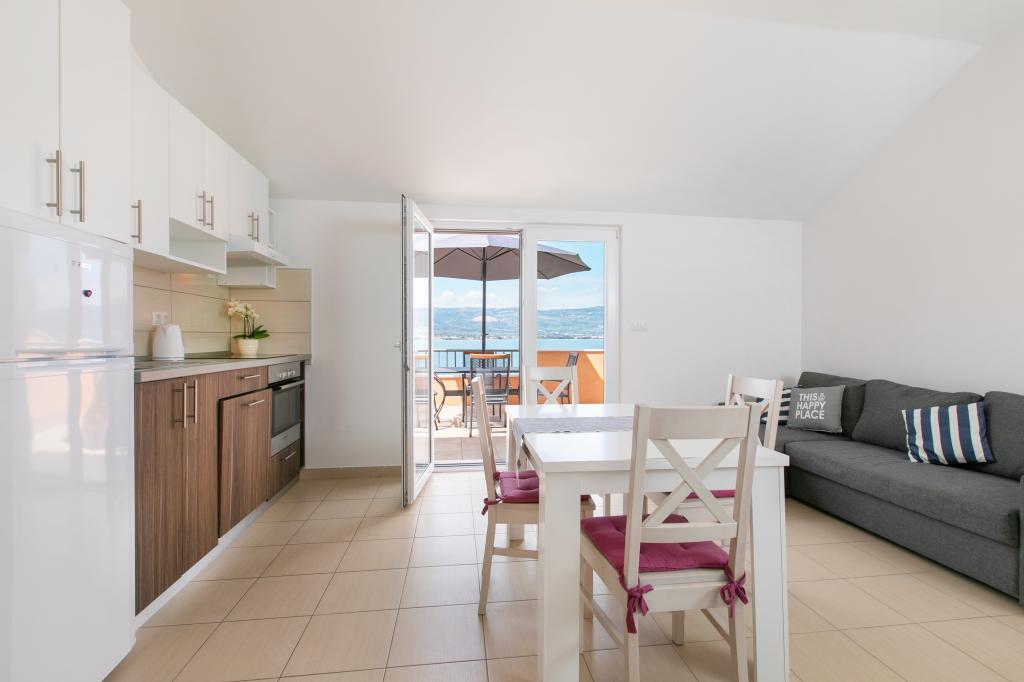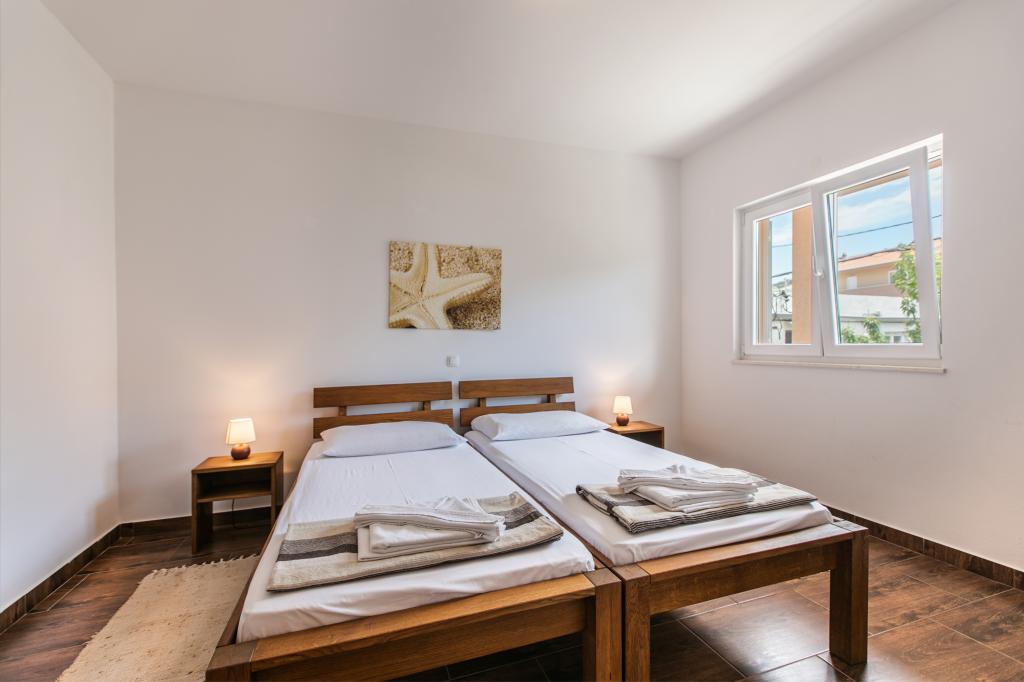 Nahajamo se v Arbaniji na otoku Čiovo. Apartmaji so na novo zgrajeni v hiši, ki se nahaja v prvi vrsti do morja. Na dvorišču je letna kuhinja s kaminom, ki je na voljo gostom. Apartmaji so udobni in sodobno opremljeni. Apartmaji 4 2 so sestavljeni iz dveh spalnic in raztegljivega kavča v dnevni sobi. Apartma 2 2, ki se nahaja v mansardi hiše, ima spalnico in raztegljiv kavč v dnevni sobi. Vsi apartmaji poleg kopalnice imajo ločeno majhno stranišče. V vseh apartmajih je na voljo brezplačen brezžični internet. Preživite družinske počitnice z nami!
