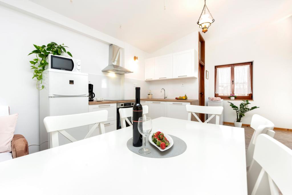 Cena apartmaja je prikazana na dan. Hišni ljubljenčki 10,00 eur na dan, plača se ob prihodu. Hiša je v celoti opremljena, klimatizirana z dvema klimatskima napravama. Nova kuhinja opremljena s pomivalnim strojem, indukcijsko kuhalno ploščo, pečico, mikrovalovno pečico. Cena vključuje posteljnino, brisače za uporabo v apartmaju, uporabo klime, WIFI, končno čiščenje, parkirno mesto na dvorišču. V hiši je na voljo pralni stroj. Otroška posteljica na zahtevo brezplačno.