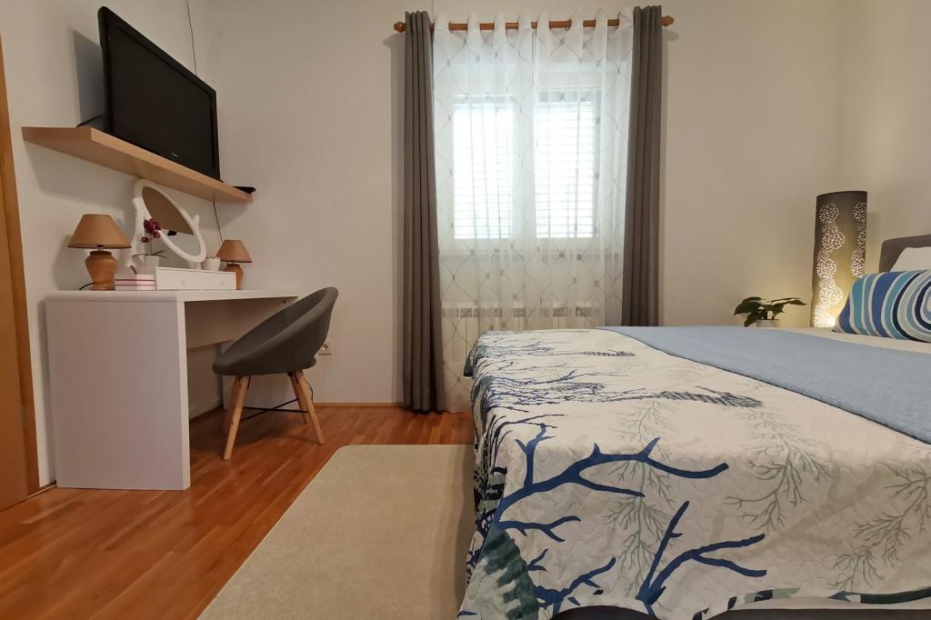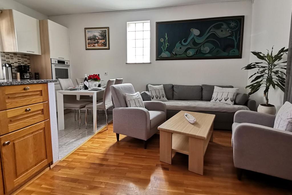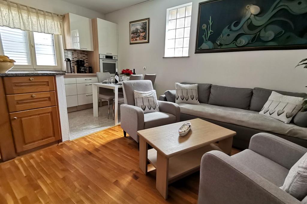 Preberite več Namestitvene enoteCene veljajo za vsak apartma na dan uporabe. Cena vključuje vse stroške uporabe, kot so elektrika, voda in plin, ter čiste brisače in posteljnina. Akontacija, ki potrjuje rezervacijo, znaša 30 % celotnega zneska. Prihod je možen kateri koli dan v tednu izven sezone z najmanj 5 dnevi, v sezoni pa ob sobotah in nedeljah z najmanj 7 dnevi, sobote za Ap 1 2 3, nedelje za Ap 4 5. Krajše bivanje je možno po višji ceni. Cena vključuje vse, klimatsko napravo, brezplačno parkiranje, WiFi internet, turistične takse, pralni stroj, posteljnino, brisače, končno čiščenje. Dodatnih stroškov ni. Akontacija za rezervacijo (30 %) se plača izključno z bančnim nakazilom na račun lastnika, odprt pri OTP Banka Hrvatska. Podatke za plačilo boste prejeli po e-pošti. Preostali znesek (70 %) se plača z gotovino, ob prihodu v apartma. Prijava je po 15. uri. Veselimo se vašega prihoda in vam želimo prijetno bivanje! Odjava je možna do 10. ure ali po dogovoru.
