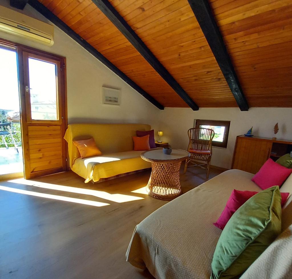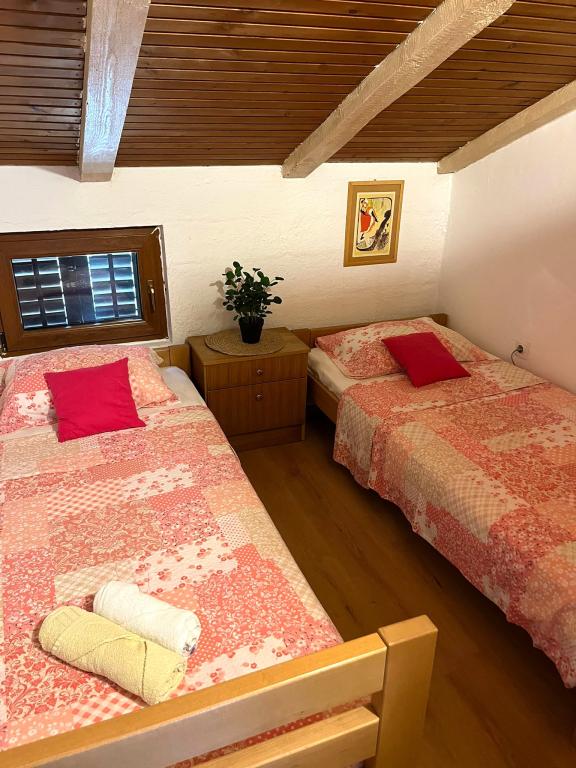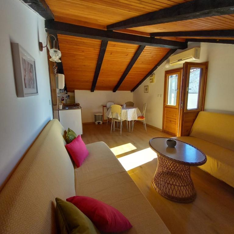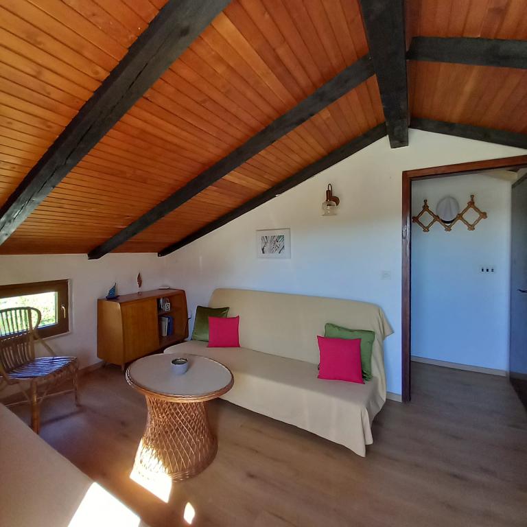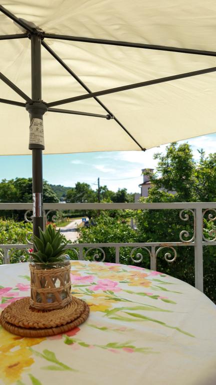 Hiša z dvema apartmajema in parkirnim mestom se nahaja v majhni, mirni vasici Mušoga-Banjole in je oddaljena le 300 m od plaže. Primerna je za namestitev dveh družin. Apartma Oleander 2+2, v 1. nadstropju (nizko podstrešje), je idealen za 2 odrasli osebi ali 2 odrasli osebi in 1-2 majhna otroka. Apartma je klimatiziran in je sestavljen iz 1 dvoposteljne spalnice, kopalnice, ločene sobe z dvema kavčema/posteljama ter mini kuhinjskim blokom in teraso. Apartma Glicinija za 4 osebe, v pritličju, je sestavljen iz 2 spalnic, jedilnice, kuhinje, kopalnice in dvorišča s celodnevno naravno senco. V bližini apartmaja so številne obmorske promenade in kolesarske poti. Desetminutni sprehod vas bo pripeljal do supermarketa, pekarne, ribarnice, lekarne, izposojevalnice koles in več restavracij. Le 6 km od apartmaja je polotok Kamenjak s čudovitimi plažami, čistim morjem in edinstvenim Safari barom. Pridite in uživajte v morju, soncu, mediteranskih vonjavah in digitalnem razstrupljanju :).