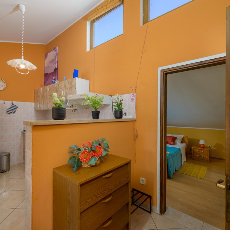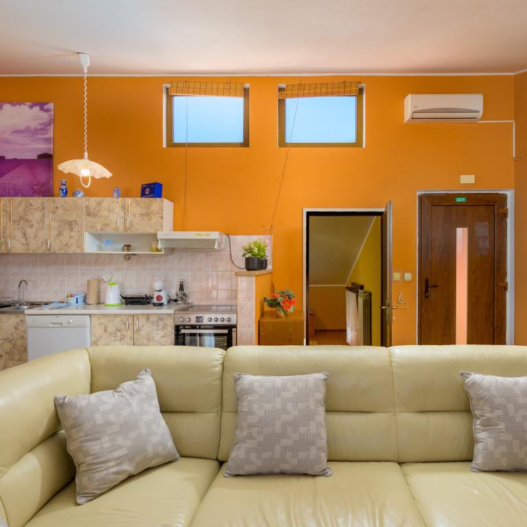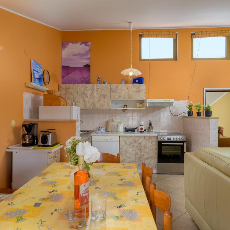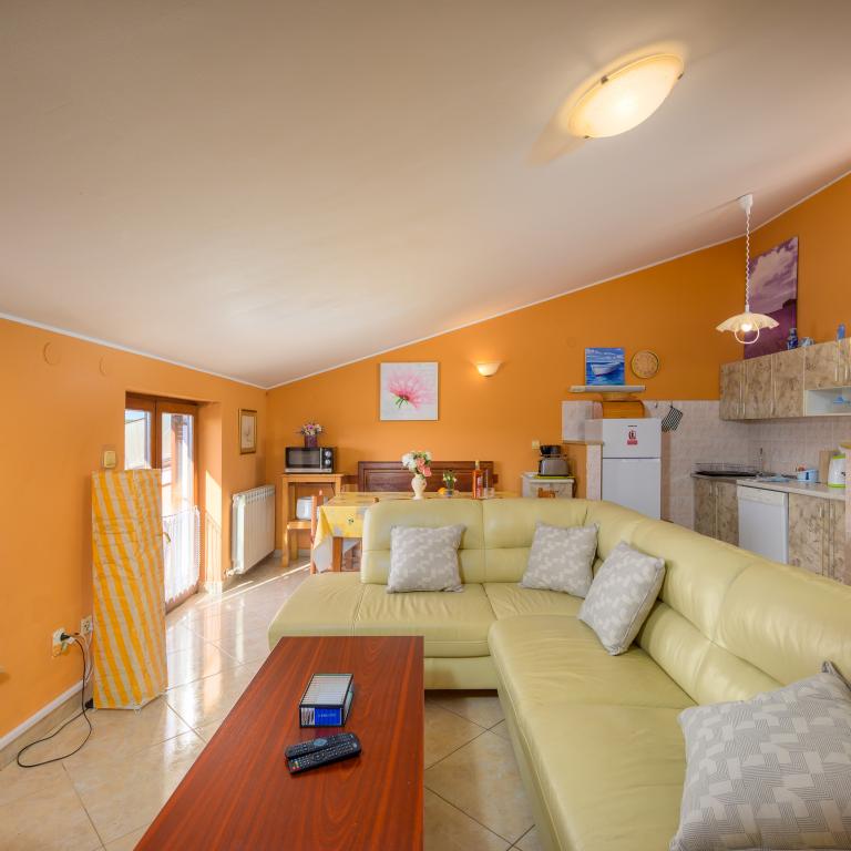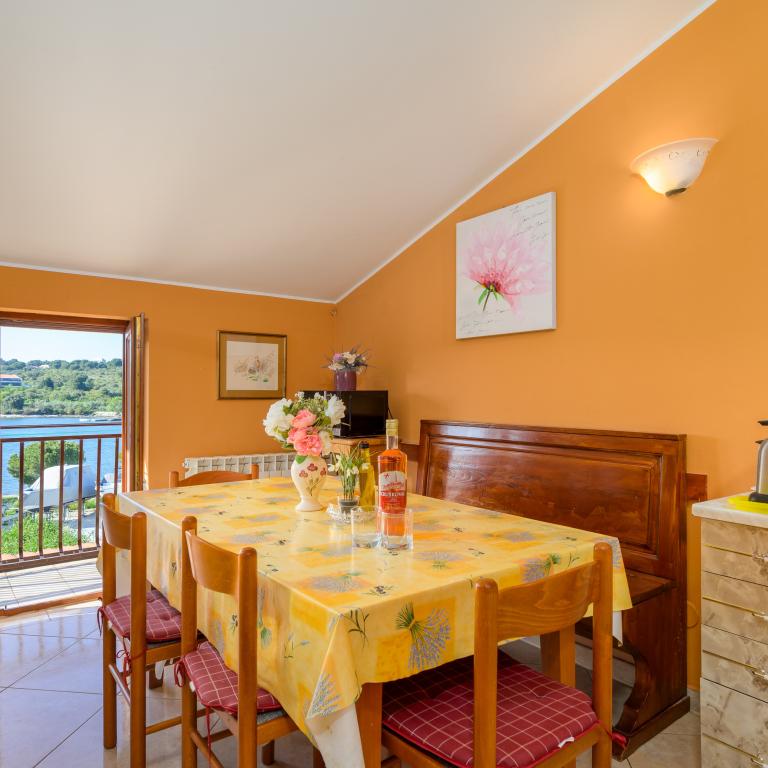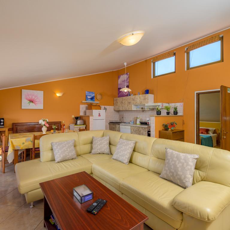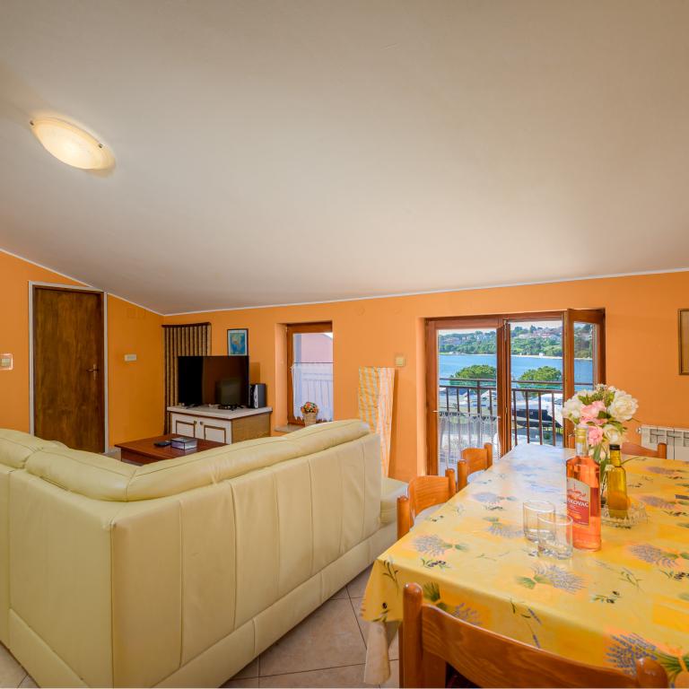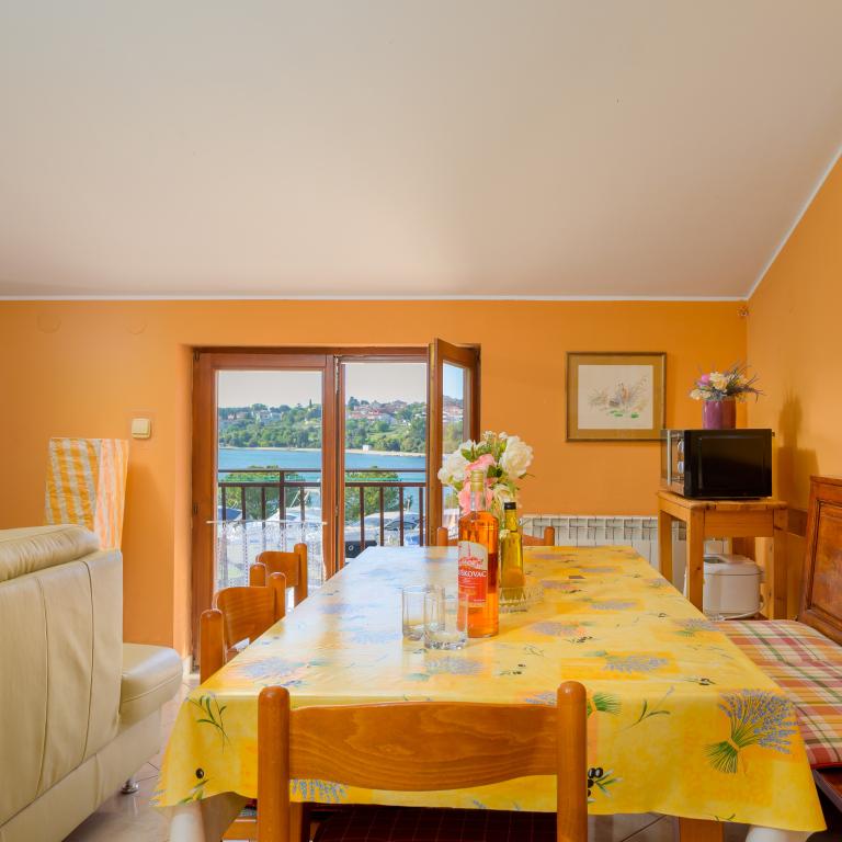 Apartma se nahaja v prvi vrsti ob morju v prvem nadstropju s teraso in čudovitim razgledom na modro morje in nebo. Nahaja se v mirnem delu Banjol, vasi Volme, tiho in mirno, blizu vseh ugodnosti. 5 minut do plaže in 15 minut do hotela na drugi strani obale. Bližnje kolesarske poti vodijo do narodnega parka Kamenjak. Pula je oddaljena tri kilometre, Premantura pa 4 kilometre.