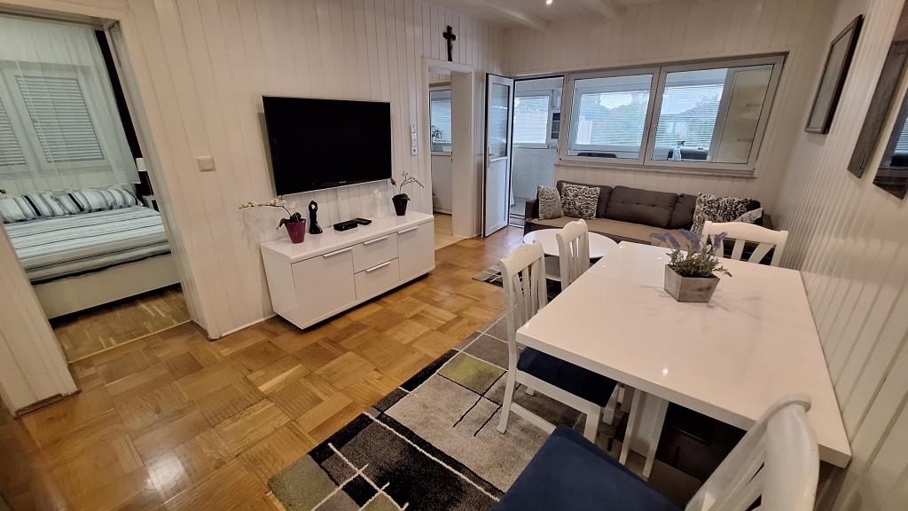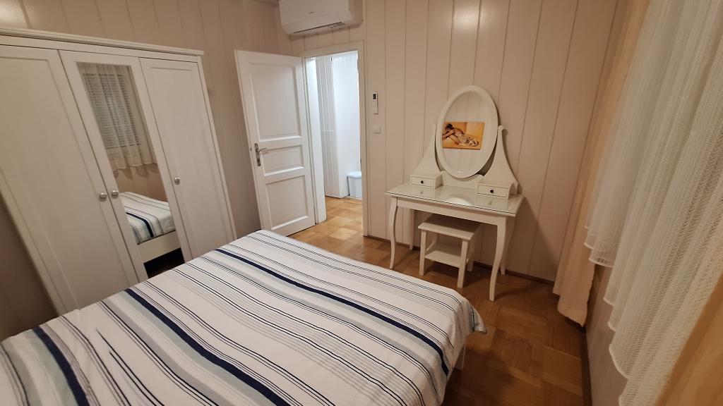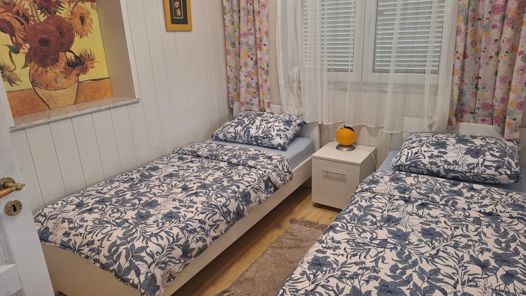 Apartma MARIJA je velik apartma s 3 spalnicami in dnevno sobo. Pred njim je pokrita in zastekljena terasa. Ob vhodu je manjši prosti prostor, kjer lahko posedite in si po potrebi postavite žar, ki je na voljo v apartmaju. Neposredno pred vhodom sta 2 pokriti parkirni mesti za 2 avtomobila.