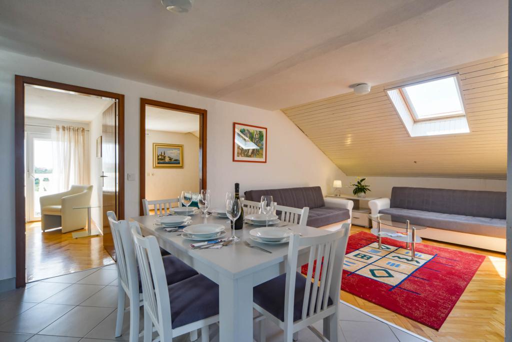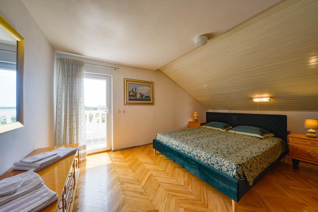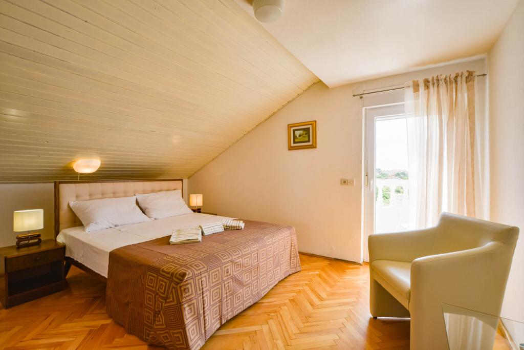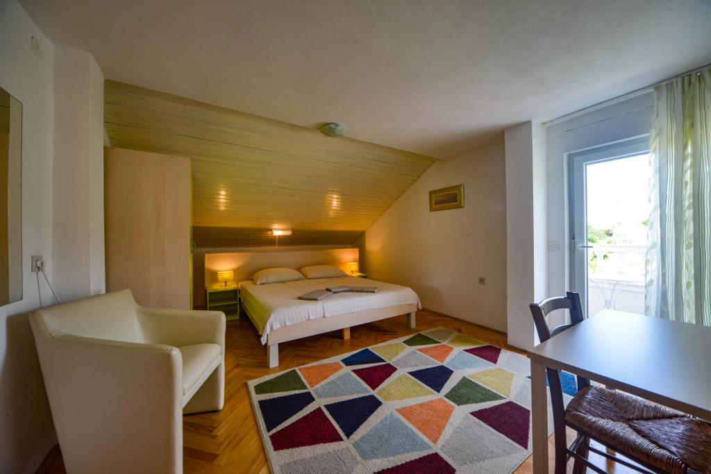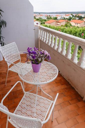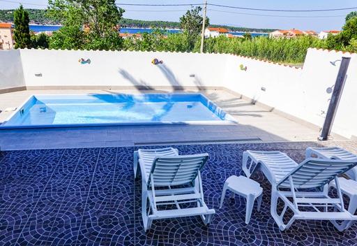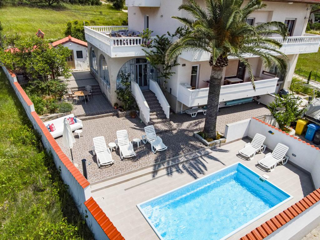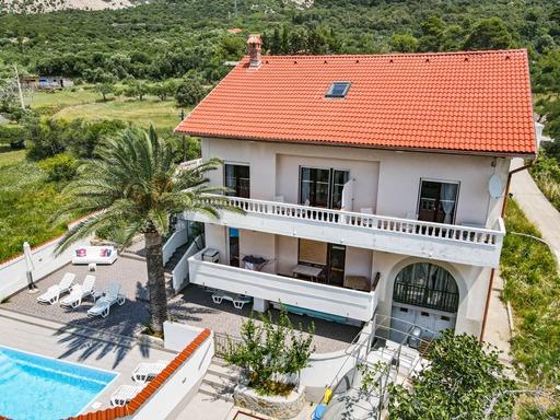 Popolnoma opremljeni prostorni apartmaji s pogledom na Barbatski kanal in cerkev sv. Damjana (ostanki bizantinske skavtske trdnjave iz 6. stoletja), z dovolj zunanjega prostora za različne skupine, da si zagotovijo zasebnost bodisi na prostorni terasi, bazenu ali v senčni paviljonu ob hišici z žarom. Hiša je primerna tudi za najem celotne družine (12 oseb). Otroci in hišni ljubljenčki so dobrodošli. Od obmorske promenade s plažami, restavracijami in kavarnami je oddaljena manj kot 5 minut hoje - 300 m.