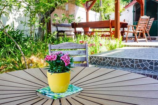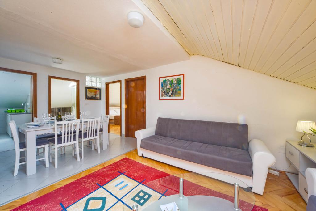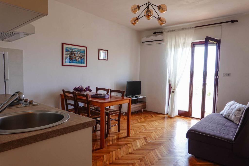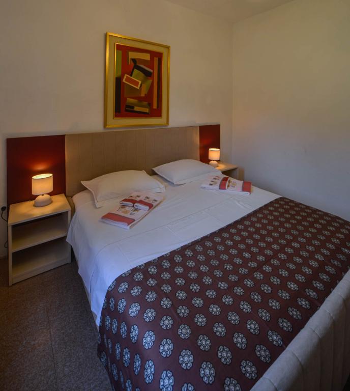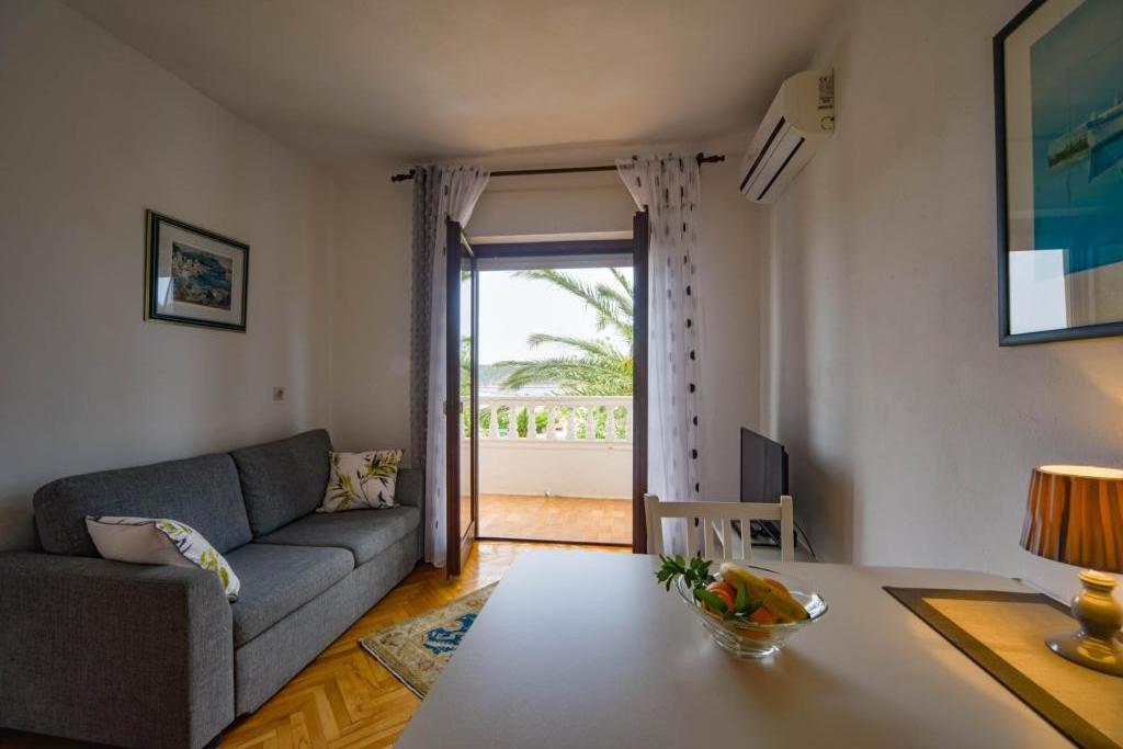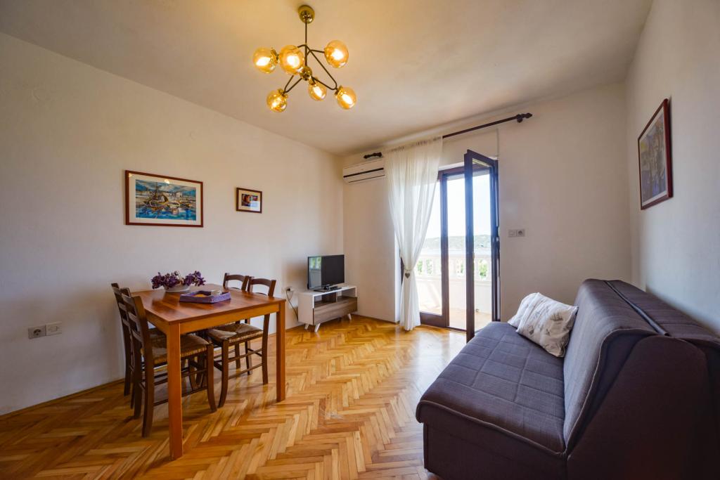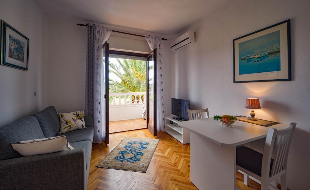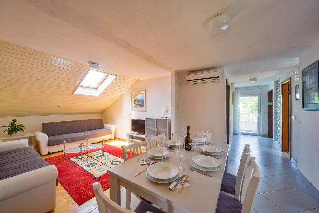 Popolnoma opremljeni prostorni apartmaji s pogledom na Barbatski kanal in cerkev sv. Damjana (ostanki bizantinske skavtske trdnjave iz 6. stoletja), z dovolj zunanjega prostora za različne skupine, da si zagotovijo zasebnost bodisi na prostorni terasi, bazenu ali v senčni paviljonu ob hišici z žarom. Hiša je primerna tudi za najem celotne družine (12 oseb). Otroci in hišni ljubljenčki so dobrodošli. Od obmorske promenade s plažami, restavracijami in kavarnami je oddaljena manj kot 5 minut hoje - 300 m.