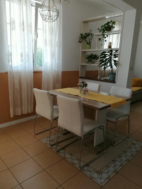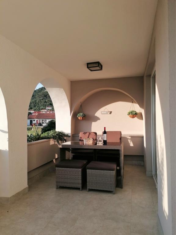Ta čudovita moderna počitniška hiša se nahaja v mestu Barbat na otoku Rabu. Apartmaji so lepo in moderno opremljeni. Imamo lastno parkirišče in privez za čoln. Gostje imajo na voljo dva žara na vrtu. Ponujamo 5 apartmajev. Vsi apartmaji imajo lasten zasebni vhod. V bližini so številne restavracije in trgovine, le nekaj minut hoje stran. Središče Raba je od hiše oddaljeno 4 km. Naša hiša je le 50 metrov od morja.