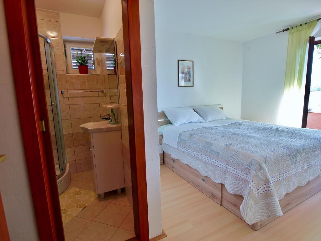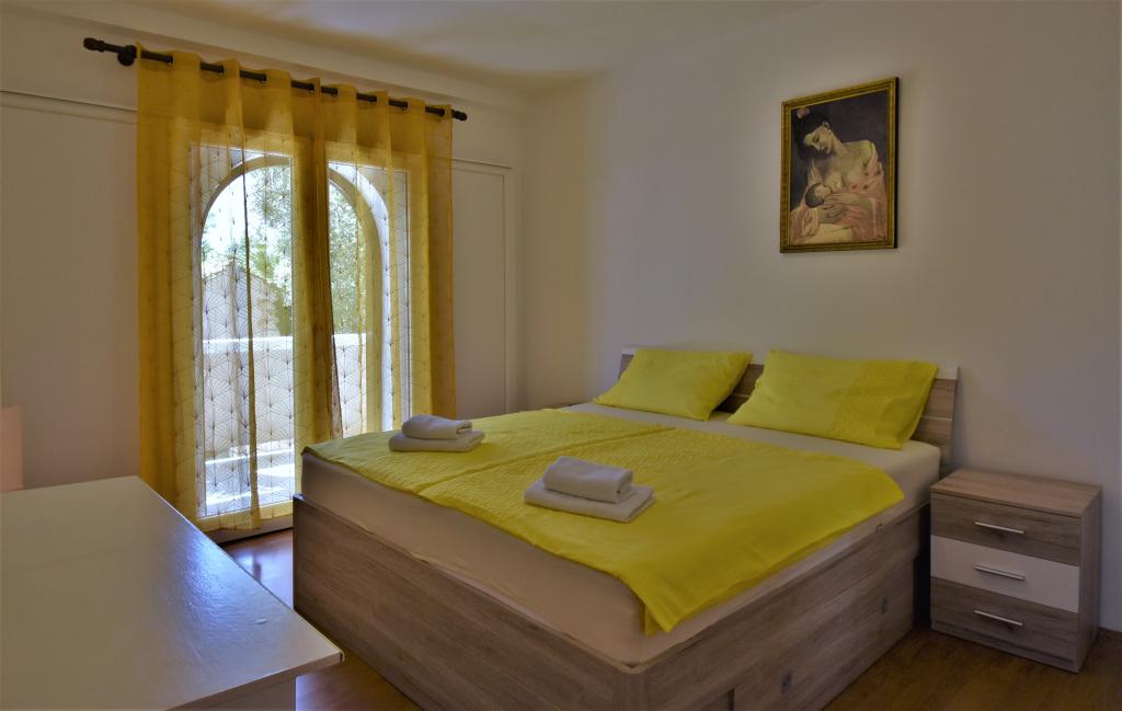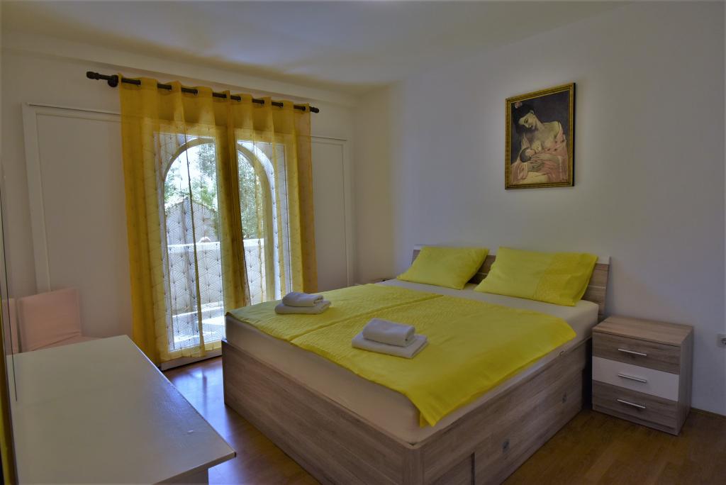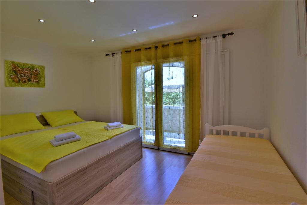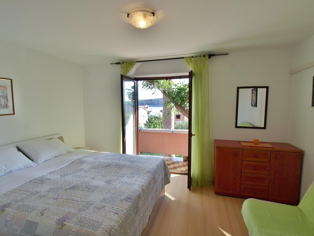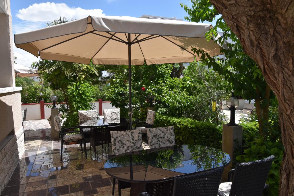 Hiša se nahaja na otoku Rabu, v mestu Barbat, blizu morja. Od morja smo oddaljeni le 50 metrov. Apartma je sestavljen iz dveh dvoposteljnih sob z zakonsko posteljo, kuhinje z jedilnico in dnevno sobo, kopalnice. Stanovanje meri 56 m2. Apartma se nahaja v pritličju in ima veliko teraso v senci, zunanji žar ter prostor za posedanje in večerno druženje.