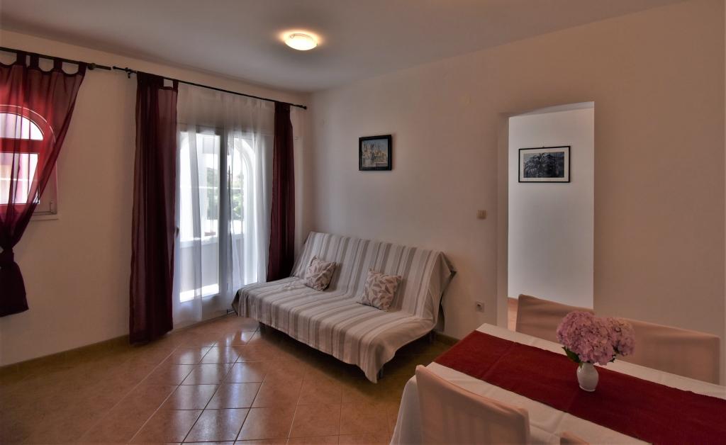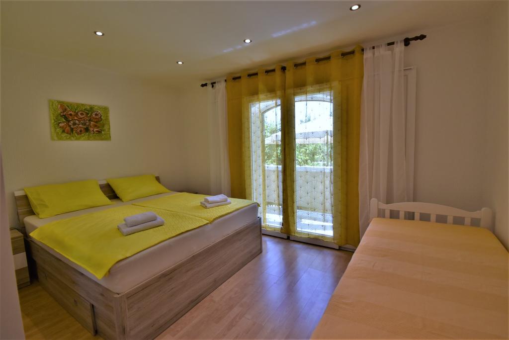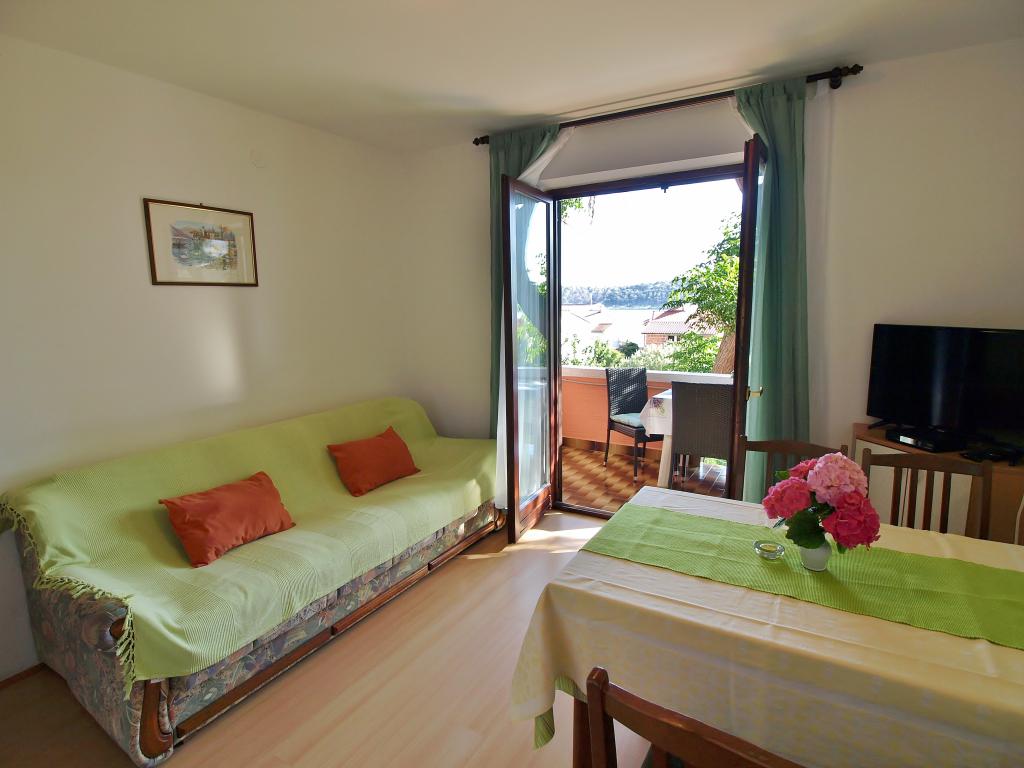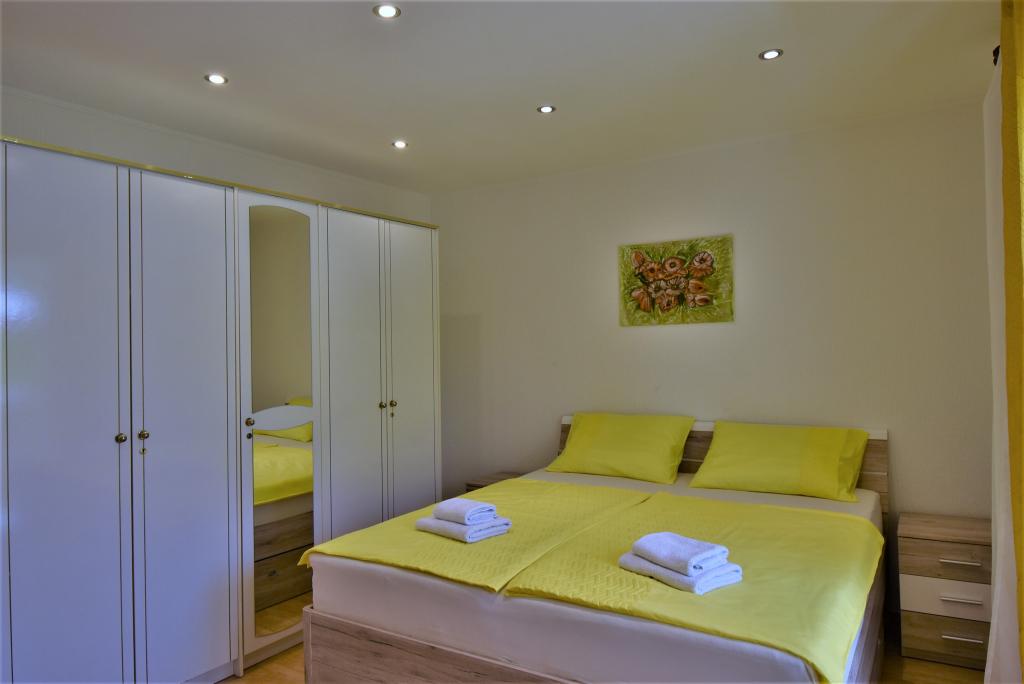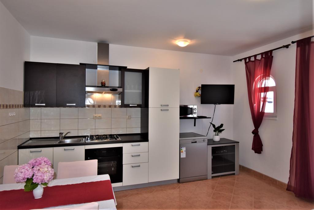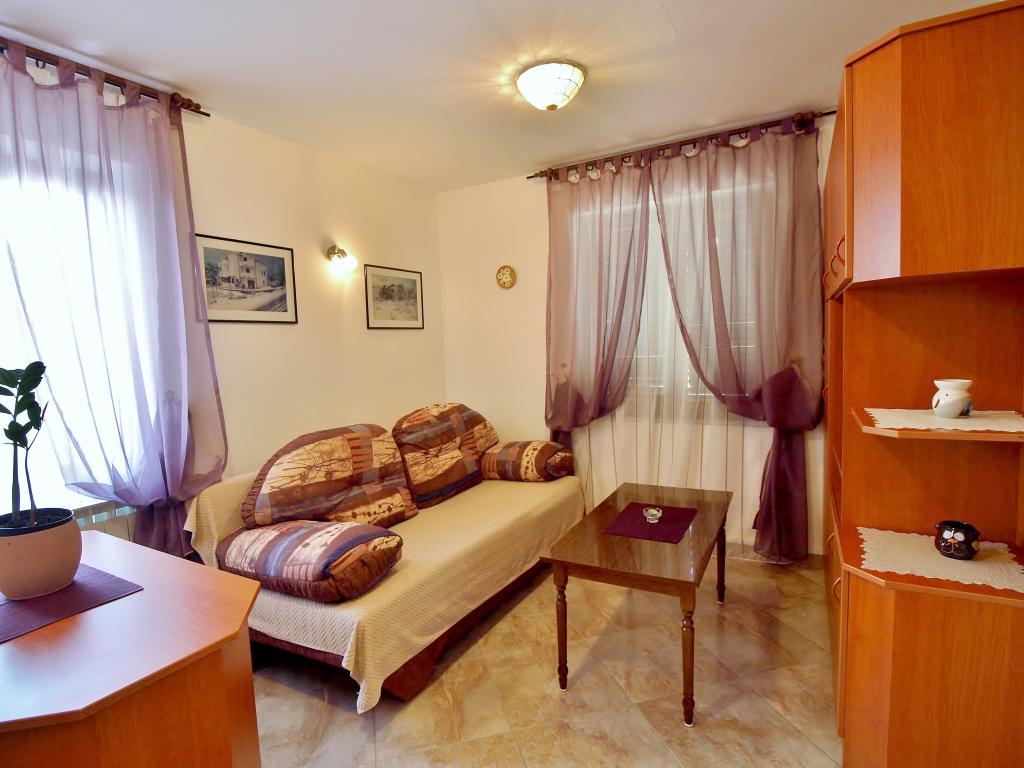 Hiša se nahaja na otoku Rabu, v mestu Barbat, blizu morja. Od morja smo oddaljeni le 50 metrov. Apartma je sestavljen iz dveh dvoposteljnih sob z zakonsko posteljo, kuhinje z jedilnico in dnevno sobo, kopalnice. Stanovanje meri 56 m2. Apartma se nahaja v pritličju in ima veliko teraso v senci, zunanji žar ter prostor za posedanje in večerno druženje.