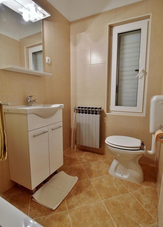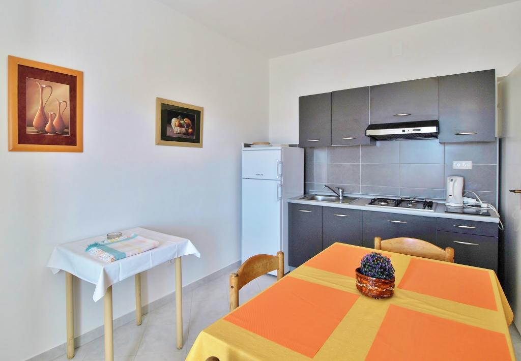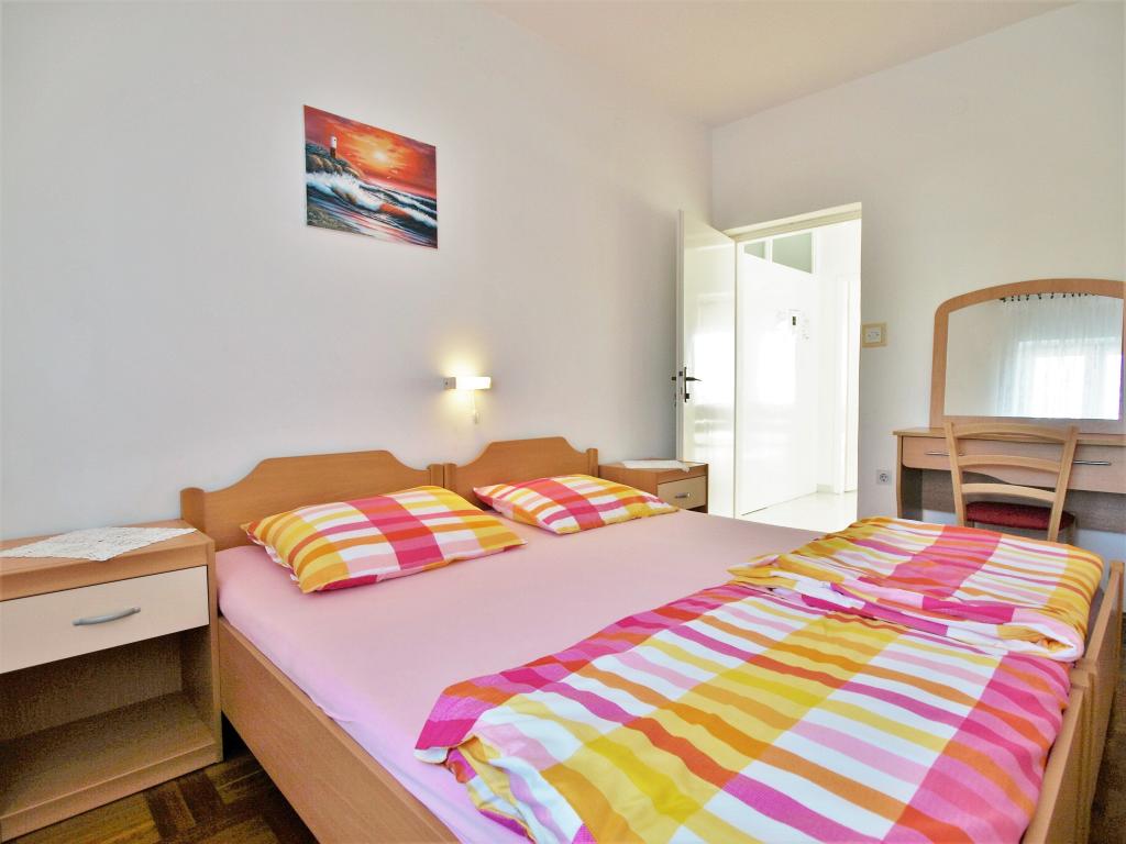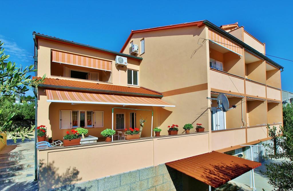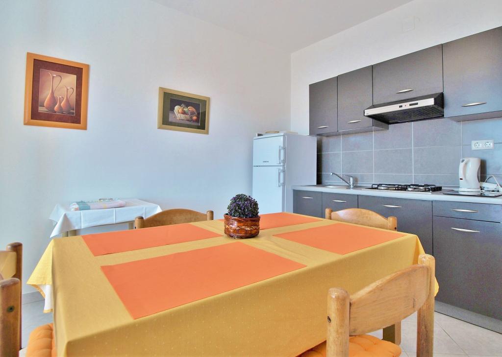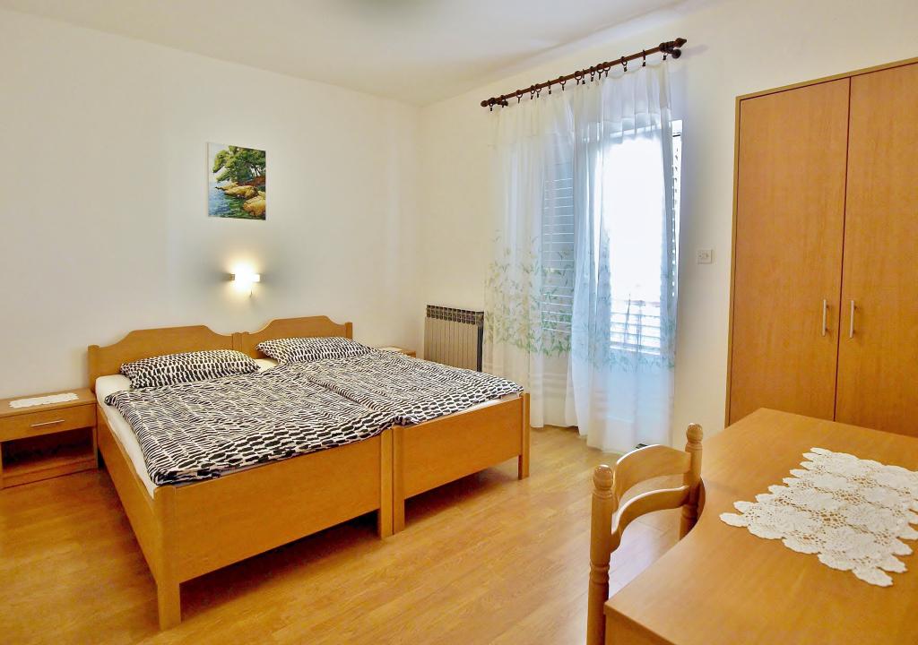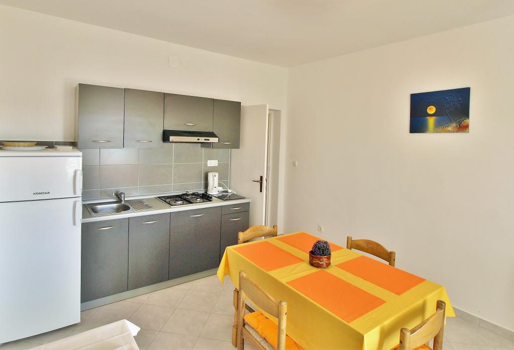 Dragi gostje! Ponujamo apartmaje za 4 osebe. Vsak apartma je sestavljen iz dveh dvoposteljnih spalnic, kuhinje z jedilnico in tudi vsaka soba ima svojo kopalnico ali tuš/WC. Vsi apartmaji imajo balkon/teraso s pogledom na morje, satelitsko televizijo in so klimatizirani. Posteljnina in brisače ter vse ostalo, kar potrebujete za prijeten dopust, so v apartmajih in vam na dopust ni treba ničesar prinesti s seboj. Posteljnina se menja enkrat tedensko, brisače pa po želji. Zunaj imamo veliko teraso in jedilnico, ter velik žar/žar na dvorišču, ki ga lahko uporabljate po želji. Obstaja tudi možnost uporabe pralnega stroja.