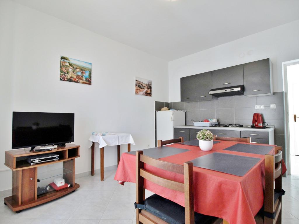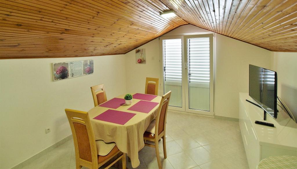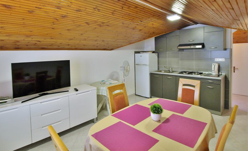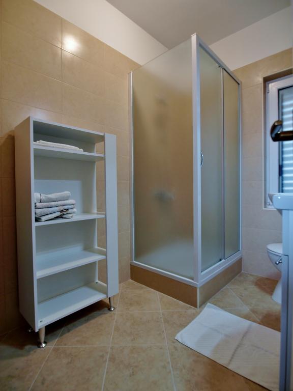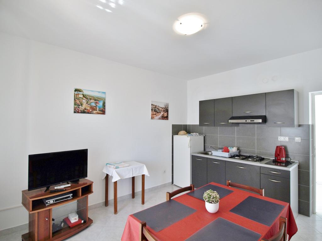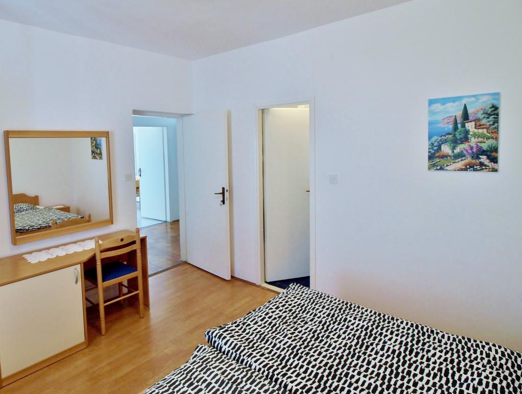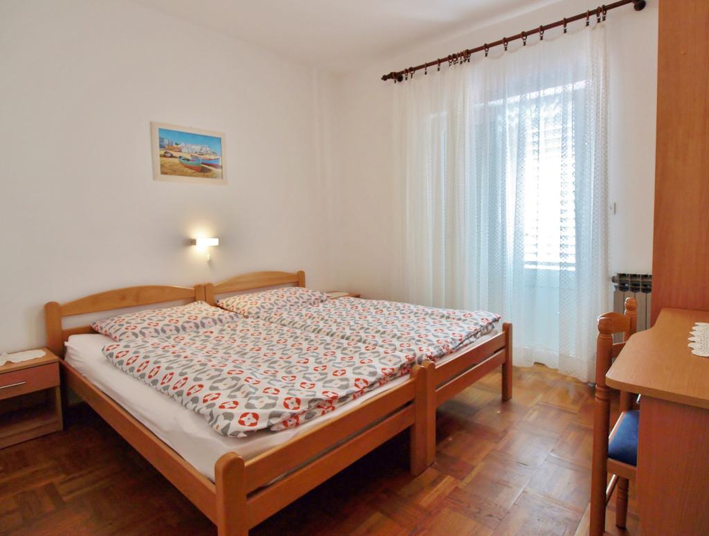 Dragi gostje! Ponujamo apartmaje za 4 osebe. Vsak apartma je sestavljen iz dveh dvoposteljnih spalnic, kuhinje z jedilnico in tudi vsaka soba ima svojo kopalnico ali tuš/WC. Vsi apartmaji imajo balkon/teraso s pogledom na morje, satelitsko televizijo in so klimatizirani. Posteljnina in brisače ter vse ostalo, kar potrebujete za prijeten dopust, so v apartmajih in vam na dopust ni treba ničesar prinesti s seboj. Posteljnina se menja enkrat tedensko, brisače pa po želji. Zunaj imamo veliko teraso in jedilnico, ter velik žar/žar na dvorišču, ki ga lahko uporabljate po želji. Obstaja tudi možnost uporabe pralnega stroja.