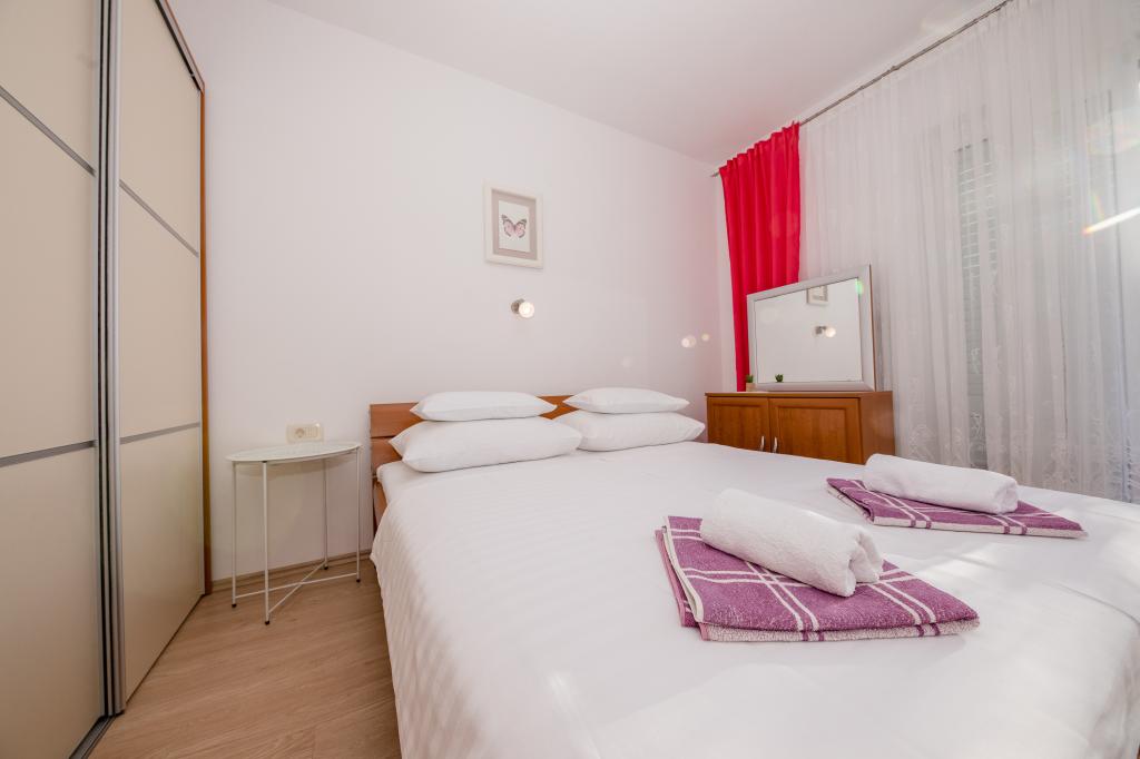 Popolnoma in moderno opremljeni apartmaji v mirnem predelu, 300 m od prodnate plaže. Objekt je od centra mesta Rab oddaljen 6 km, do trgovine 2 minuti hoje, do plaže 10 minut hoje, do najbližje restavracije 10 minut hoje. Na dvorišču je skupen pokrit prostor z mizami in klopmi ter žarom ter otroško igrišče z dvema gugalnicama in trampolinom. Apartmaji so primerni tako za družine z otroki, kot tudi za vse ostale, ki iščejo miren dopust.