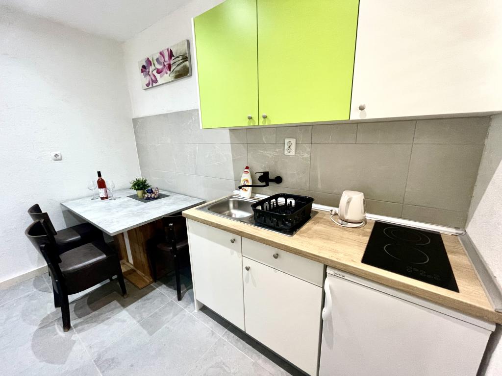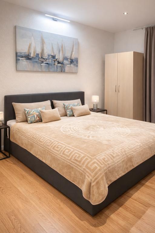 Popolnoma opremljen in popolnoma prenovljen apartma, ki se nahaja v prvi vrsti do morja. Objekt se nahaja 10 metrov od plaže. Objekt ima kavarno, restavracijo, kozmetični salon, tržnico, trgovino s spominki in menjalnico. Objekt je od marine oddaljen 40 metrov