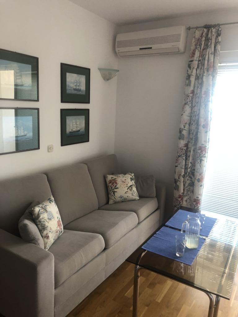 Apartma je velik 45 m² in se nahaja v drugem nadstropju ter je sestavljen iz spalnice s čudovitim pogledom na morje, dnevne sobe z raztegljivim kavčem, ki se v trenutku spremeni v udobno posteljo za dve osebi, popolnoma opremljene kuhinje z mikrovalovno pečico, pomivalnim strojem, pečico, aparatom za kavo, opekačem kruha, grelnikom vode, kopalnice s tušem, pralnim strojem in sušilcem za lase, brisač, satelitske televizije, klimatske naprave, W-LAN-a, sefa, balkona s pogledom na morje s tendo, imamo garažno mesto za parkiranje vašega avtomobila, z možnostjo uporabe koles.