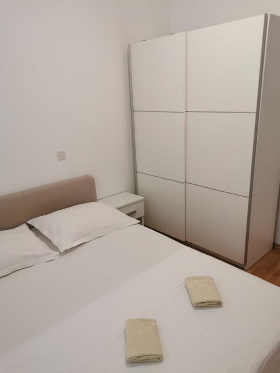 Apartma ima 2 spalnici in dnevno sobo s kuhinjo (popolnoma opremljena kuhinja), na voljo pa je tudi čudovita velika terasa s pogledom na morje in čudovite gore. Apartma je 300 metrov v ravni liniji od morja, blizu barov, trgovin, vse kar potrebujete. Stanovanju pripada tudi velika garaža, v katero lahko brez skrbi vstopite kadarkoli podnevi ali ponoči. boš imel prostor. Lastnik je zelo prijazen in ustrežljiv, priporočam ga z vsem srcem