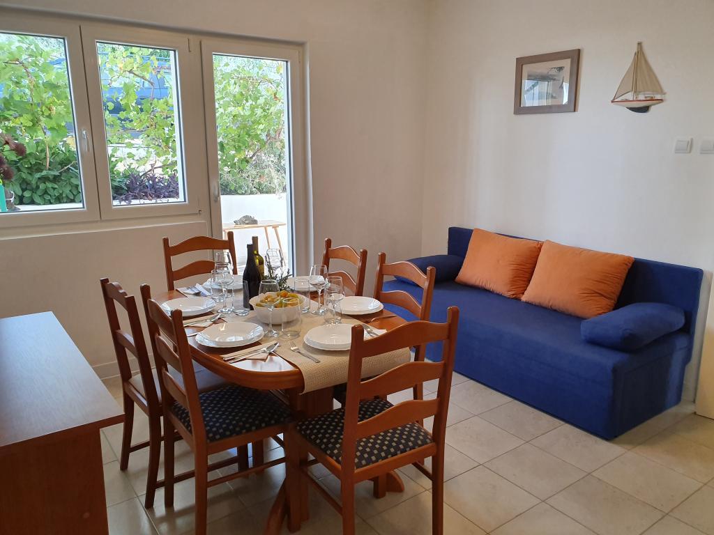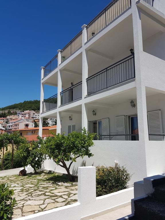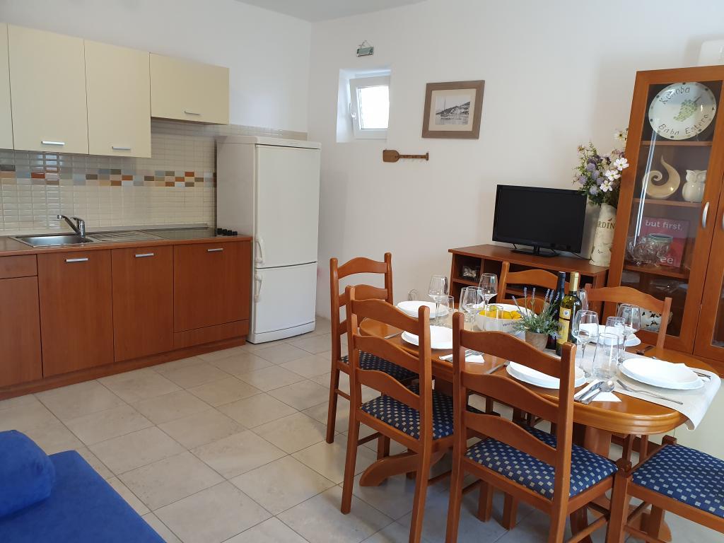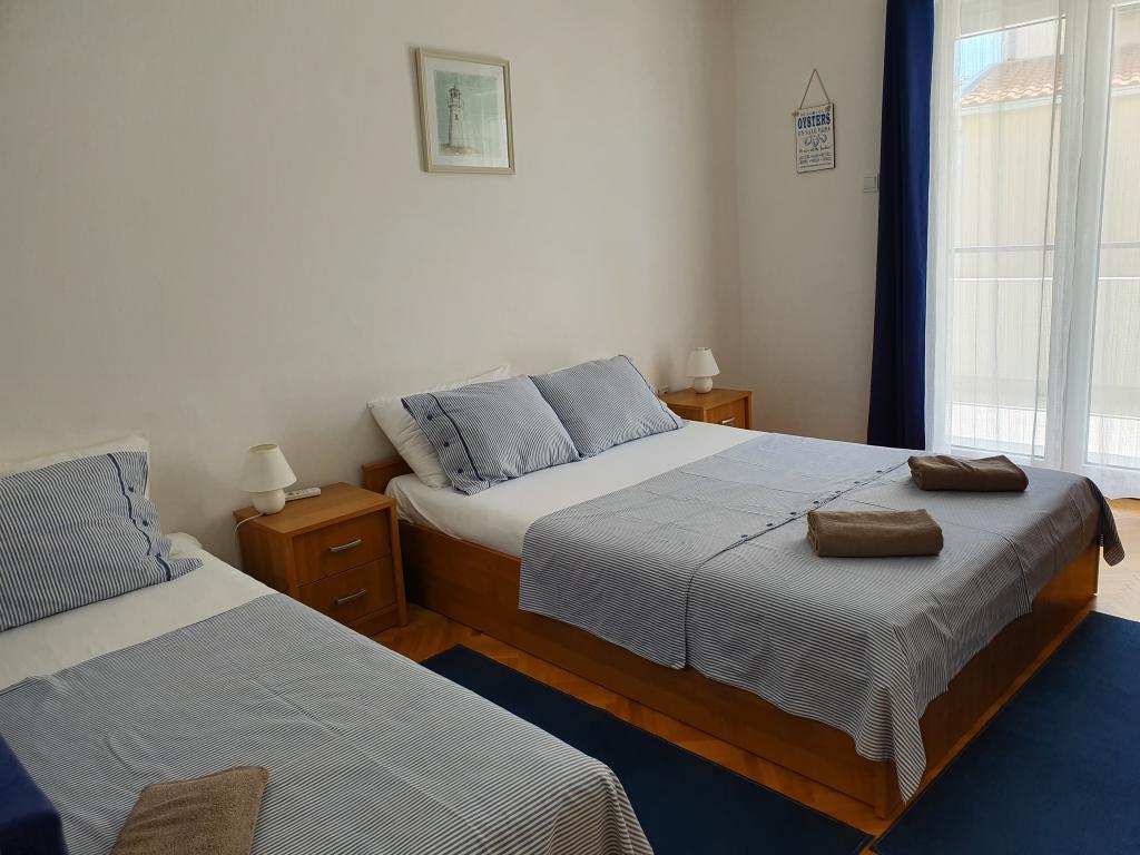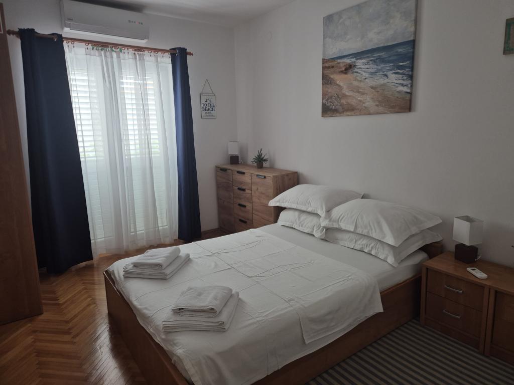 Veliko stanovanje v mirnem predelu Baške Vode, popolnoma opremljeno. Objekt se nahaja 2 minuti hoje do plaže in manj kot 5 minut od centra. Velik balkon s pogledom na morje. Parkiranje pred hišo za dva avtomobila.