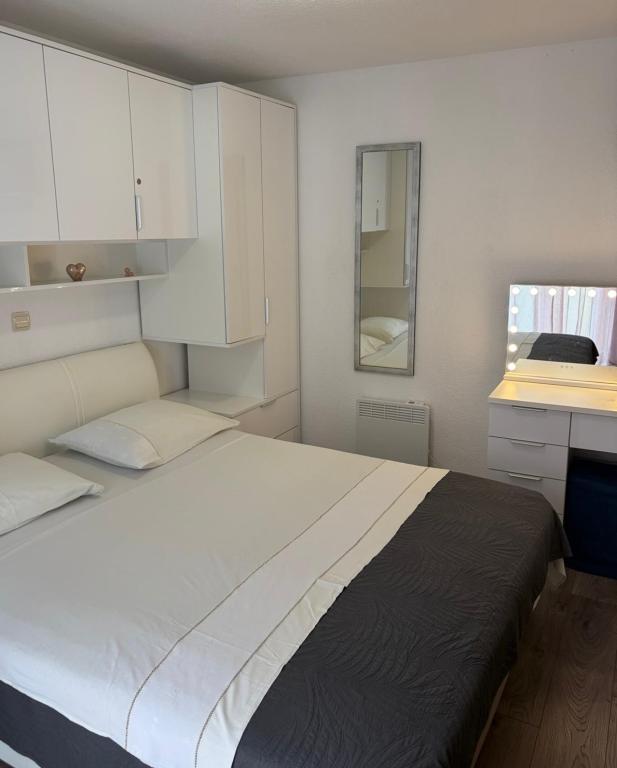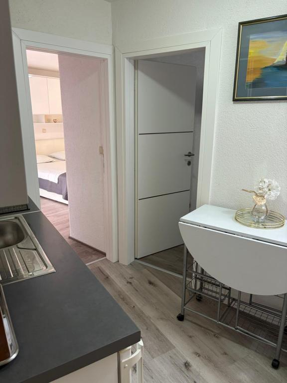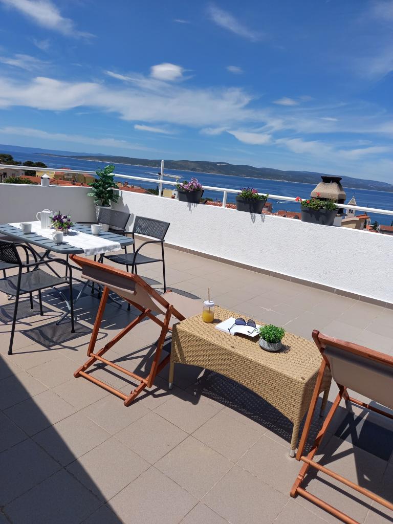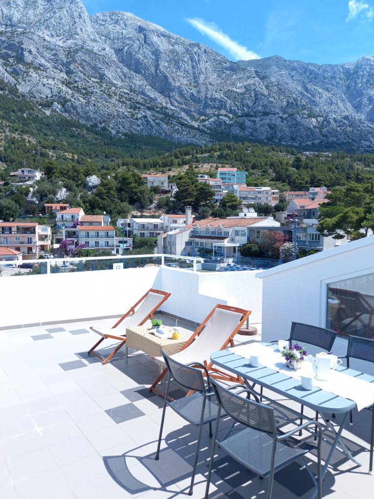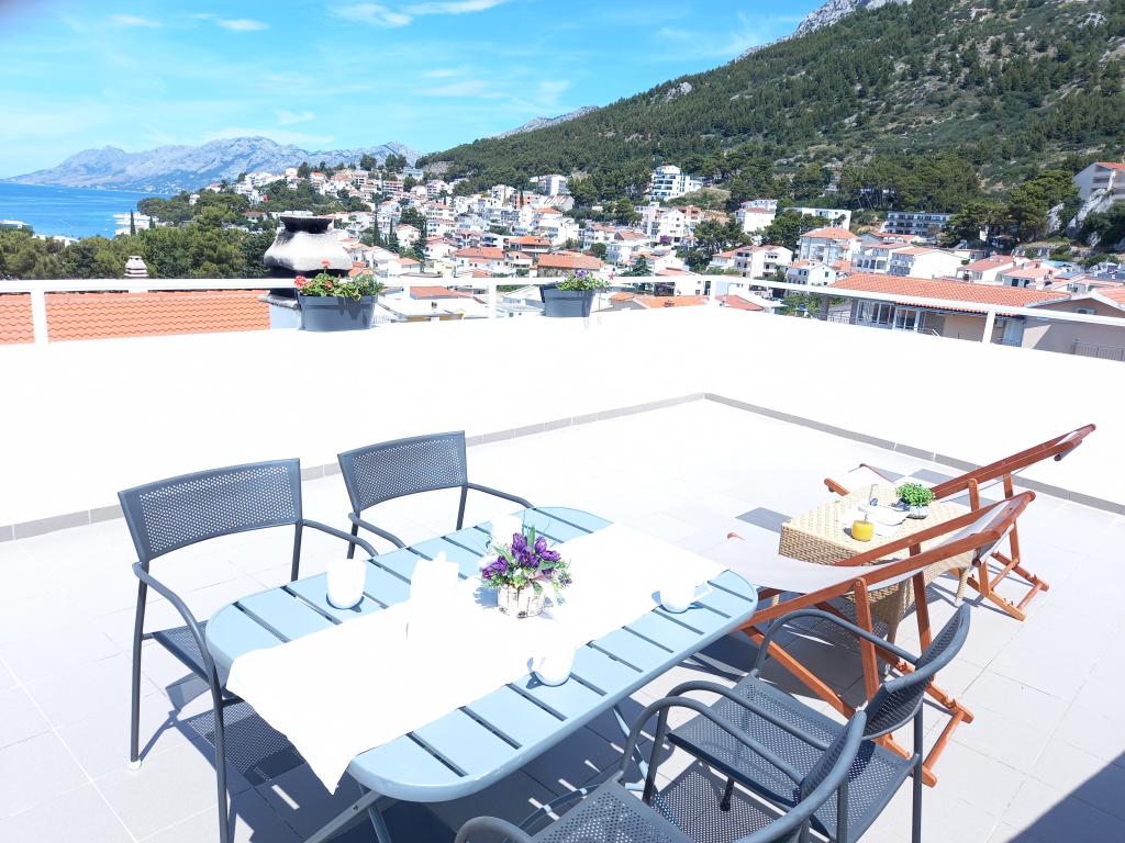 Apartma Nino je sodoben apartma, opremljen z vsem, kar potrebujete za vaš dopust. Apartma je klimatiziran in ima opremljeno kuhinjo. Dve spalnici sta opremljeni s televizorji in imata lastno kopalnico. Apartma ima balkon in teraso s čudovitim pogledom na morje in planino Biokovo. Poleg manjše jedilnice v apartmaju je na terasi še prostor za sedenje in ležalniki. Naš apartma Nino se nahaja 5 minut hoje od centra in glavne plaže. V bližini je tudi igrišče z umetno travo za športne aktivnosti: nogomet, košarka,...