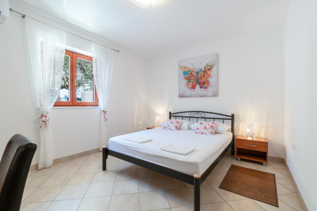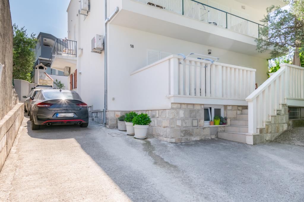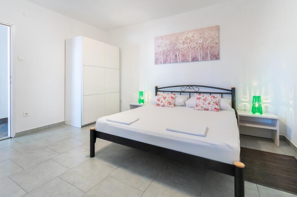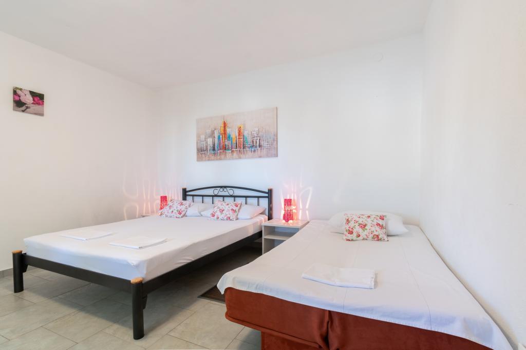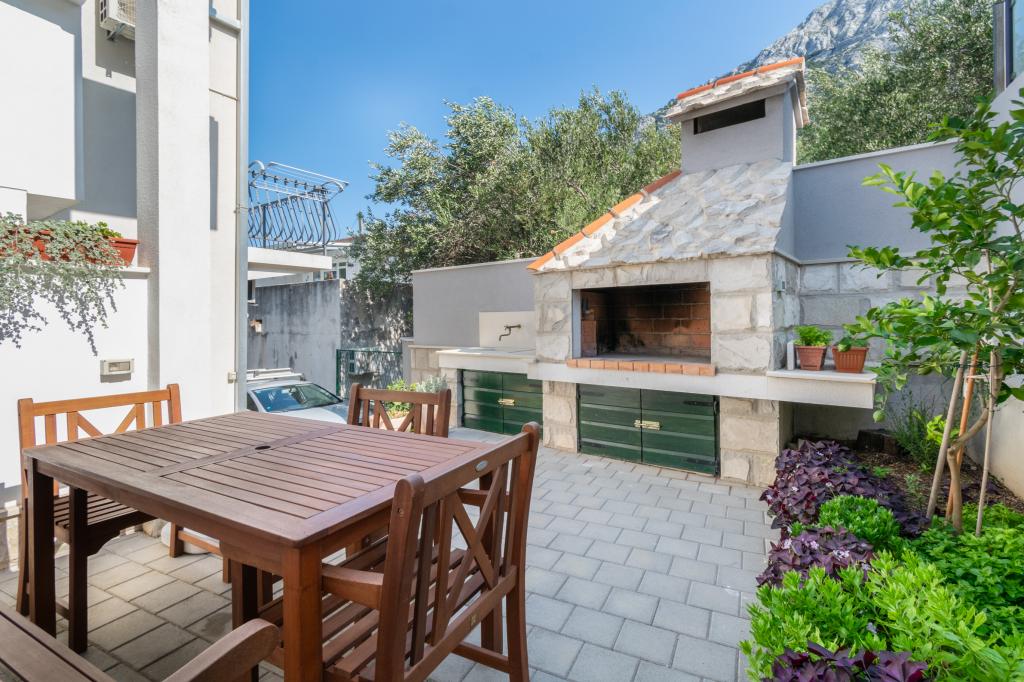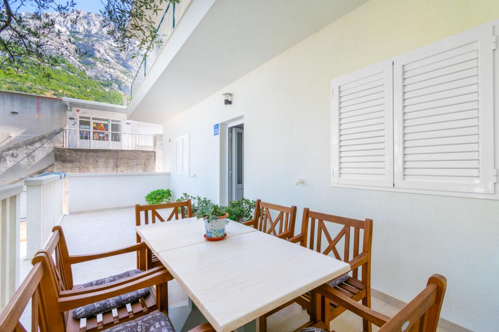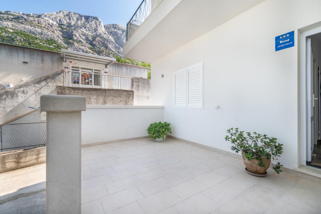 Prostoren in na novo prenovljen trisobni apartma (6+1) se nahaja v čudovitem mestu Baška Voda ob vznožju Biokova. Apartma ima 2 prostorni sobi z zakonsko posteljo in eno sobo z zakonsko posteljo in dodatnim ležiščem, 2 kopalnici, moderno in opremljeno kuhinjo ter prostorno teraso s pogledom na Biokovo in morje. Apartma vsebuje vse, kar potrebujete za brezskrben, prijeten in miren dopust: velika terasa, klima, wi-fi, LCD/SMART TV, pralni stroj, žar, parkirni prostor, posteljnina, brisače. Tržnica, pekarna, mesnica, pošta, lekarna, kavarne in plaže so le nekaj minut hoje stran. Samo središče Baške Vode je le 5 minut hoje od apartmaja s pestro ponudbo restavracij, gostinskih objektov in trgovin s spominki. Tudi poleti je na voljo bogata ponudba adrenalinskih športov, (jet ski, sup deska, parasailing) zabava za najmlajše (nove in atraktivne pedaline, polpodmornice), ležalniki. Zaradi same lokacije apartmaja in bližine centra, med letom niti ne potrebujete avtomobila.
