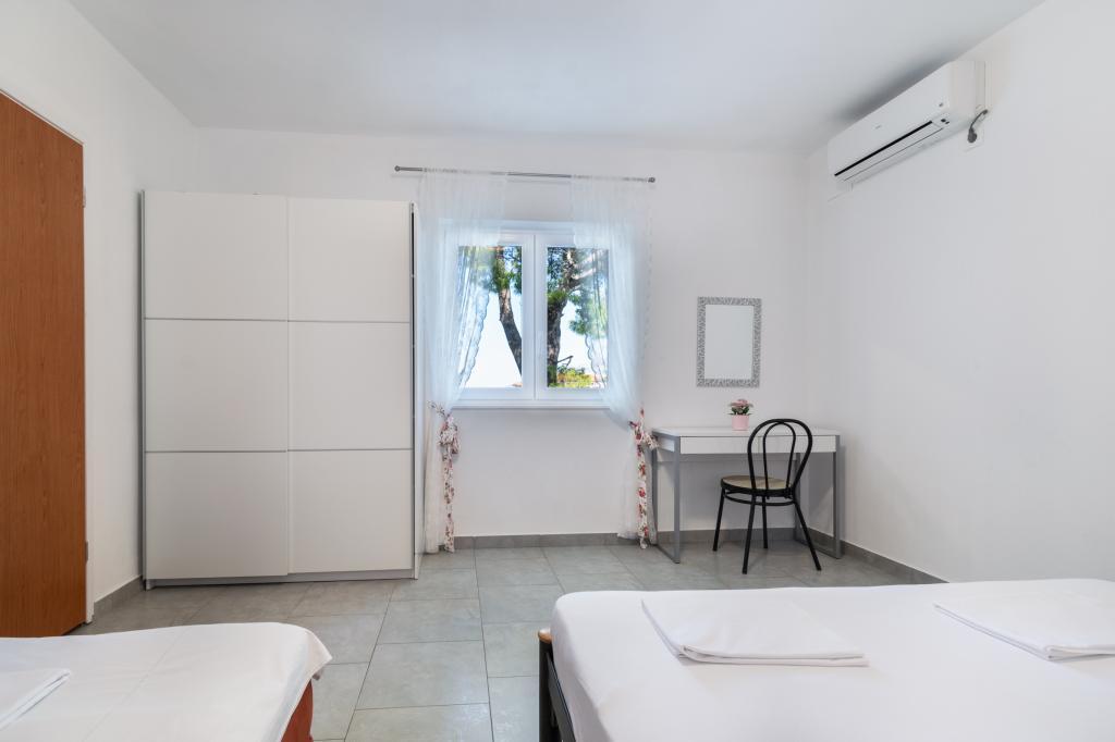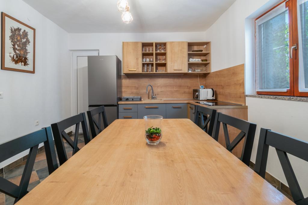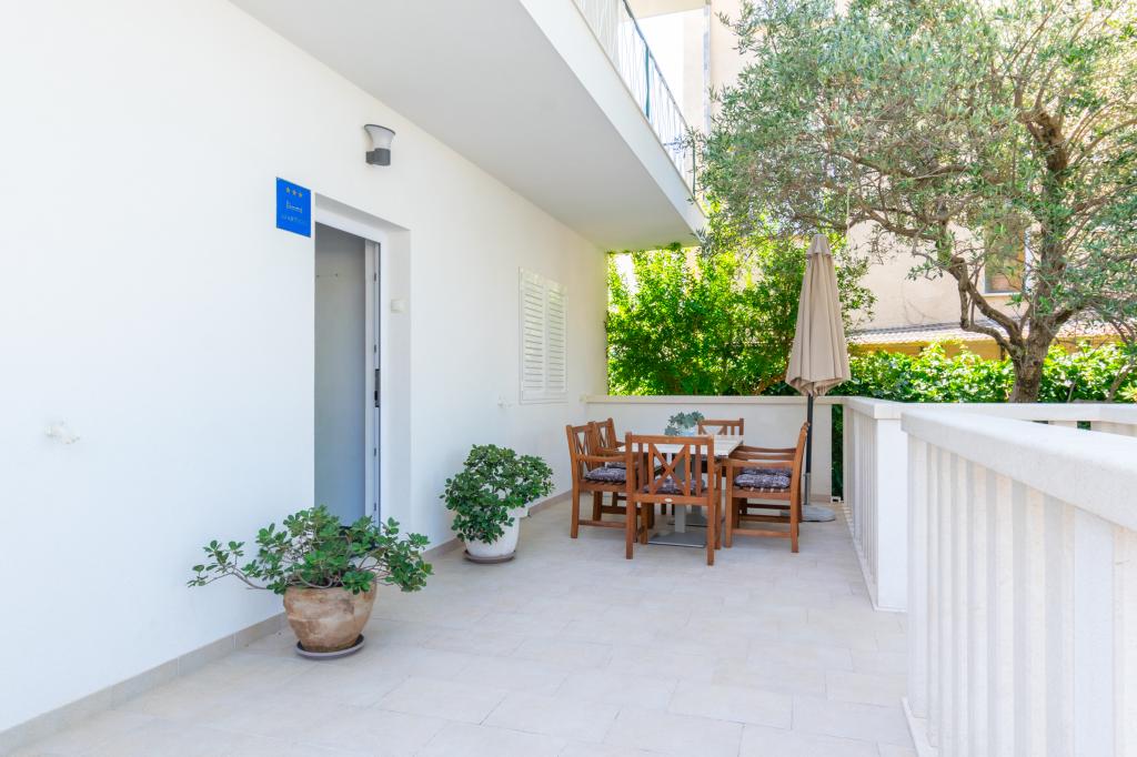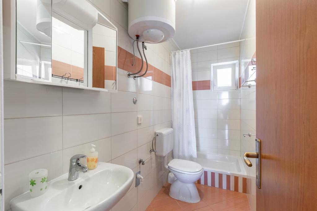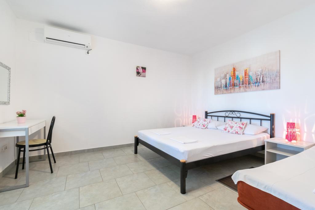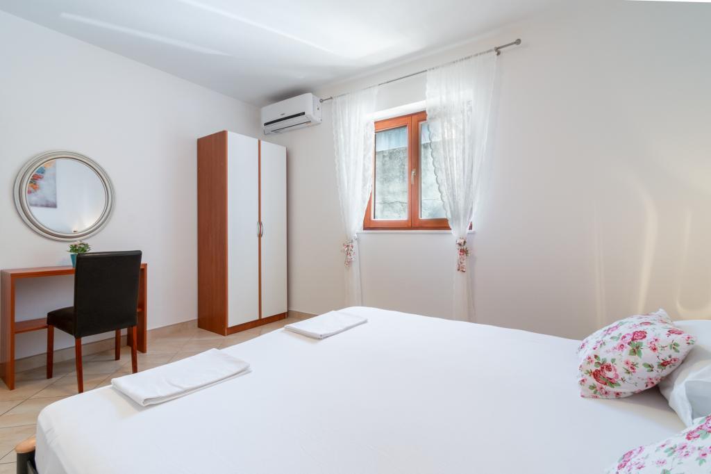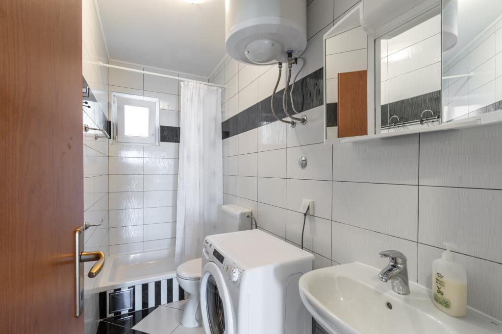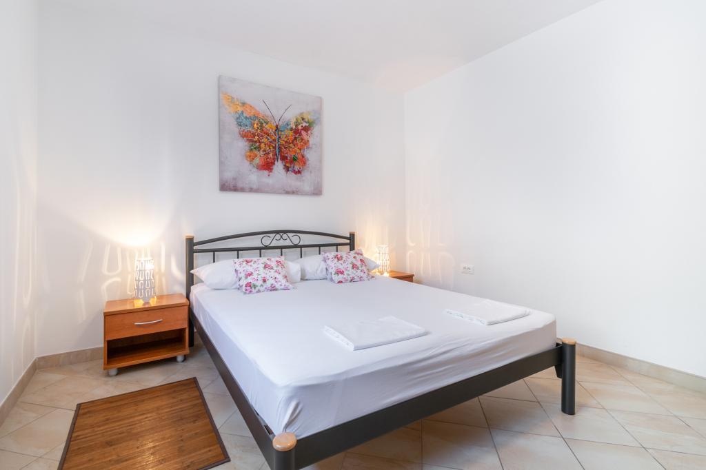 Prostoren in na novo prenovljen trisobni apartma (6+1) se nahaja v čudovitem mestu Baška Voda ob vznožju Biokova. Apartma ima 2 prostorni sobi z zakonsko posteljo in eno sobo z zakonsko posteljo in dodatnim ležiščem, 2 kopalnici, moderno in opremljeno kuhinjo ter prostorno teraso s pogledom na Biokovo in morje. Apartma vsebuje vse, kar potrebujete za brezskrben, prijeten in miren dopust: velika terasa, klima, wi-fi, LCD/SMART TV, pralni stroj, žar, parkirni prostor, posteljnina, brisače. Tržnica, pekarna, mesnica, pošta, lekarna, kavarne in plaže so le nekaj minut hoje stran. Samo središče Baške Vode je le 5 minut hoje od apartmaja s pestro ponudbo restavracij, gostinskih objektov in trgovin s spominki. Tudi poleti je na voljo bogata ponudba adrenalinskih športov, (jet ski, sup deska, parasailing) zabava za najmlajše (nove in atraktivne pedaline, polpodmornice), ležalniki. Zaradi same lokacije apartmaja in bližine centra, med letom niti ne potrebujete avtomobila.
