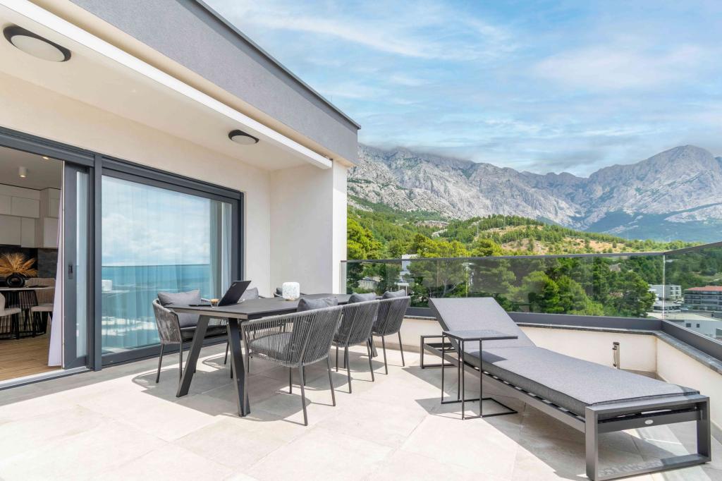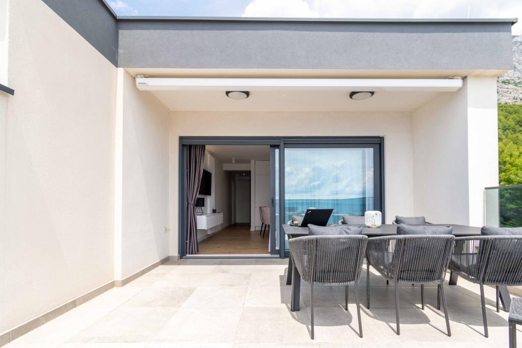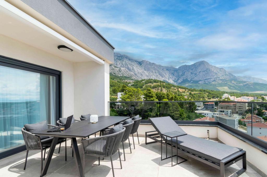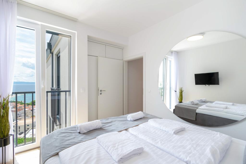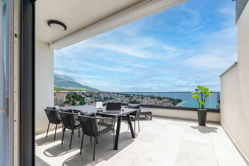 Apartma Sky nudi posebno namestitev z nepozabnim pogledom na morje, Brač in Baško Vodo. Sodoben apartma vključuje 1 spalnico, dnevno sobo z raztegljivim kavčem in veliko teraso s sedežno garnituro ter z ležalniki. Za hišo imate zasebno parkirišče.