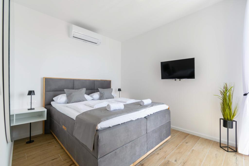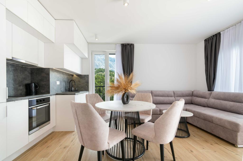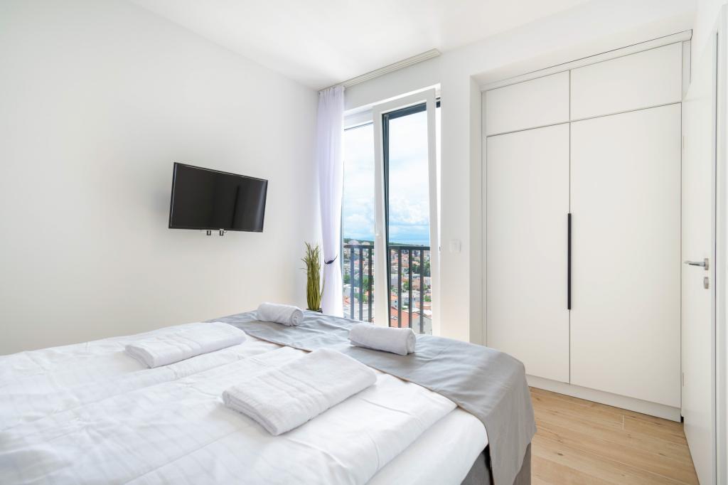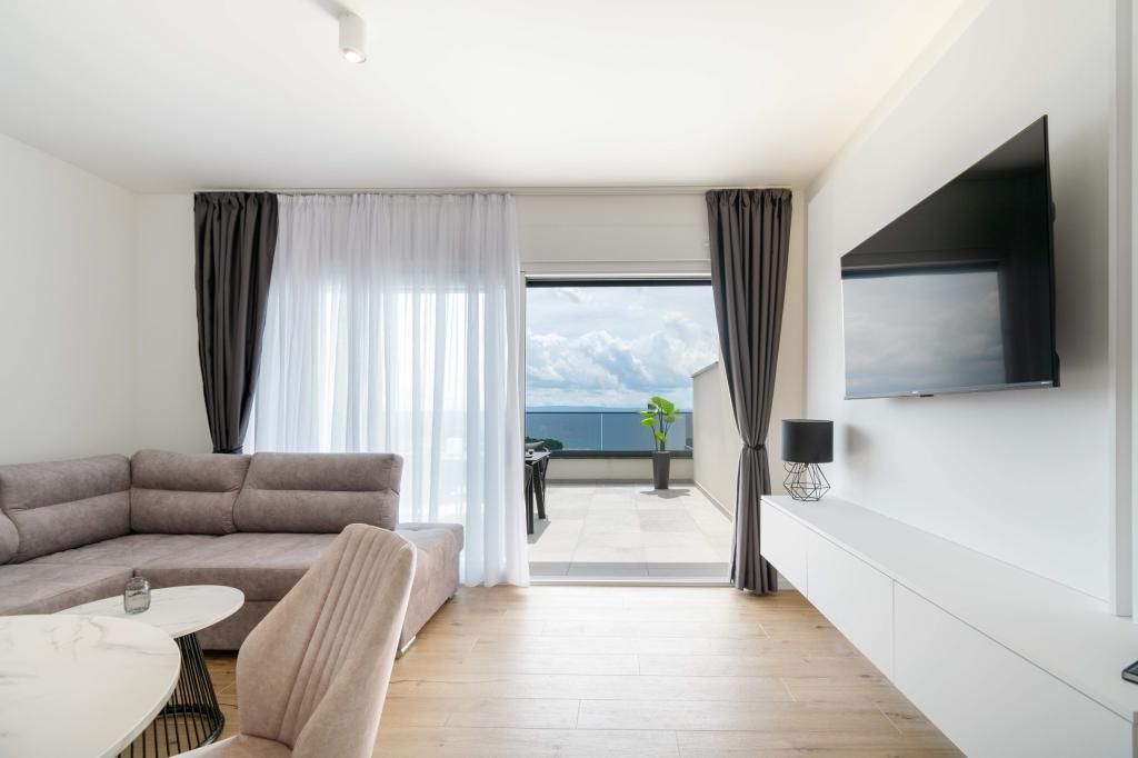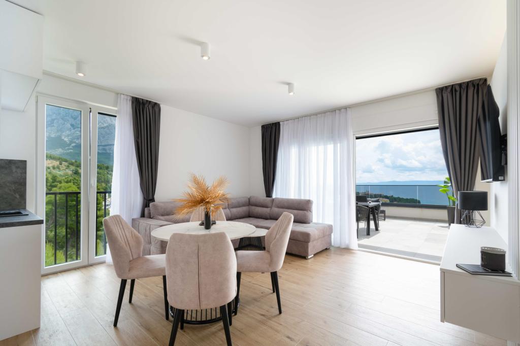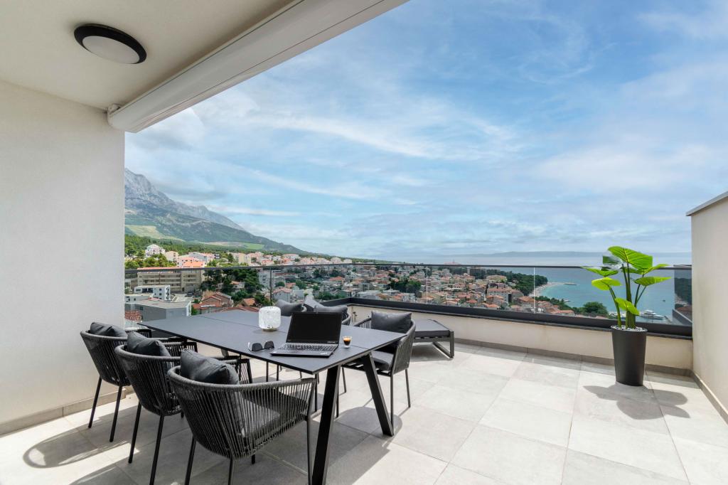 Apartma Sky nudi posebno namestitev z nepozabnim pogledom na morje, Brač in Baško Vodo. Sodoben apartma vključuje 1 spalnico, dnevno sobo z raztegljivim kavčem in veliko teraso s sedežno garnituro ter z ležalniki. Za hišo imate zasebno parkirišče.