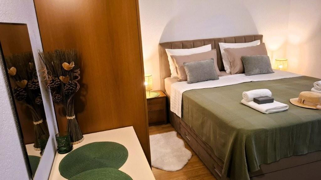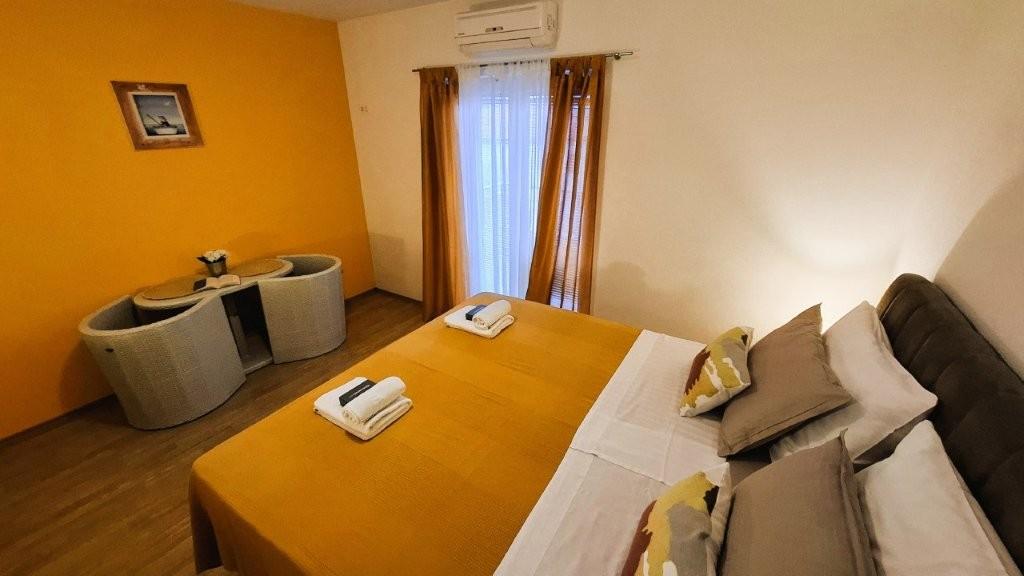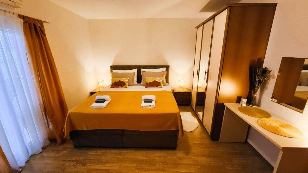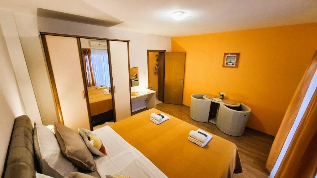 Sodobno opremljeni apartmaji Harmonia so odlična izbira za udobne družinske počitnice ali pare, ki iščejo udobno namestitev v bližini plaže. Približno 200m od plaže Nikola, v privlačnem predelu Baške Vode in nedaleč od centra s čudovitim bočnim pogledom na morje in goro Biokovo. Nudimo namestitev v zelenih in oranžnih apartmajih za 2 odrasli osebi z 2 majhnima otrokoma in v turkiznem apartmaju za 2 odrasli osebi z ev. 1 otrok. Vsak apartma je 40m2, ima veliko spalnico, dnevni prostor, ki vključuje popolnoma opremljeno kuhinjo, mizo in stole ter kavč posteljo, kopalnico in teraso. Zeleni in oranžni apartmaji se nahajajo v prvem nadstropju družinske hiše in imajo velike balkone s stranskim pogledom na morje, turkizno stanovanje pa se nahaja v kleti hiše brez pogleda na morje, z veliko teraso in sedežnimi naslanjači. Vsako stanovanje je popolnoma opremljeno, izžareva čistočo in svetle barve, ki se bodo zagotovo počutili udobno in imeli prijetne počitnice.
