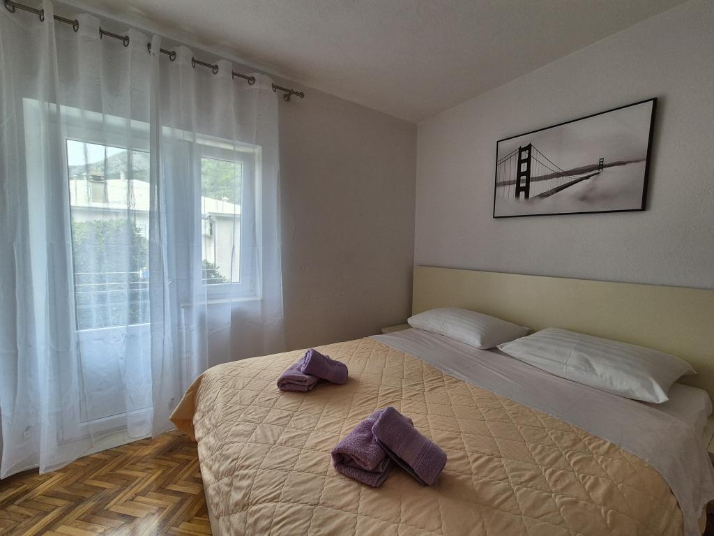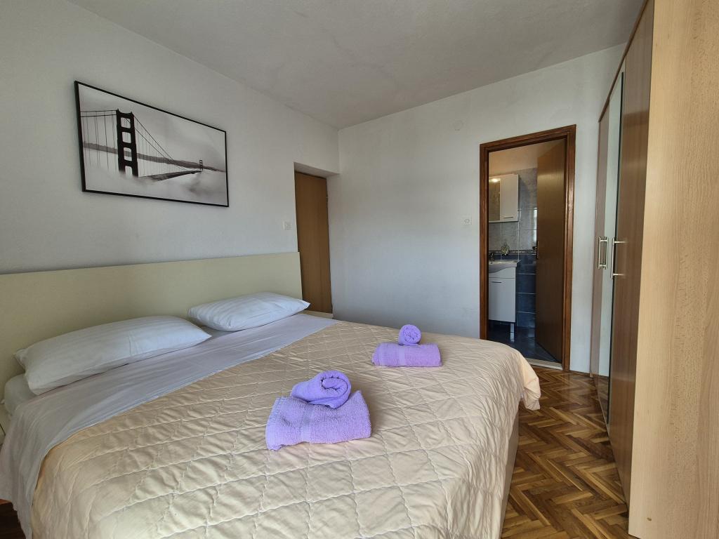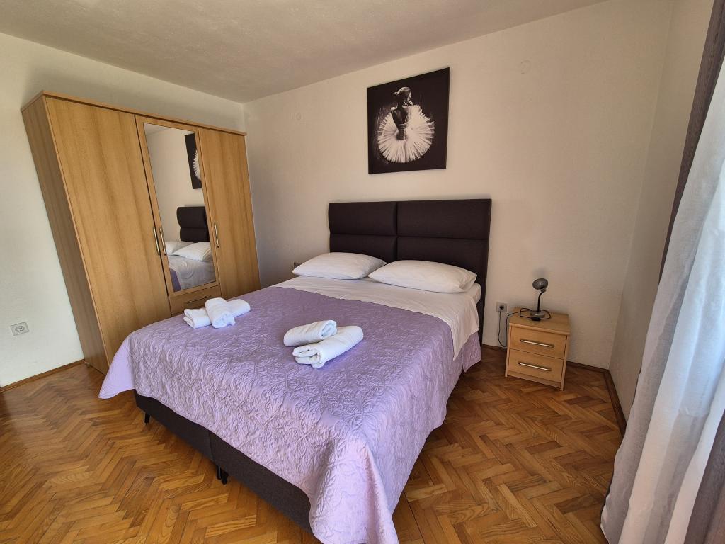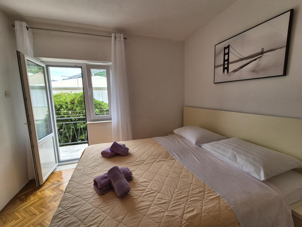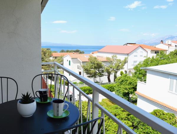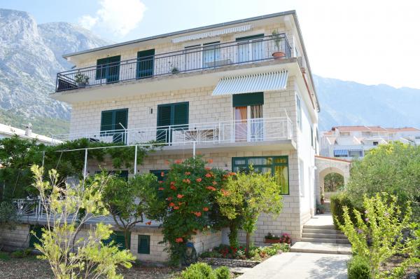 Popolnoma in moderno opremljeni apartmaji v mirnem predelu Baške Vode, parkirišče in kompletna ponudba vsega, kar potrebujete za prijeten in brezskrben oddih (klimatska naprava, TV, internet, pralni stroj, žar, ...) v prijetnem vzdušju gospodinjstva. Blizu morja (200m) in zabavnih zmogljivosti ter veliko plaž. ZASEBNO PARKIRANJE je na voljo na mestu. BREZŽIČNI INTERNET DOSTOP je na voljo v celotni nepremičnini in je brezplačen. Priljubljeno za družine z otroki (prostoren vrt in vrt, mirna lokacija). APARTMA A: 2 prostorni spalnici z balkonom (2 zakonski postelji in 1 enojna postelja) dnevna soba z 1 kavčem, 3 kopalnice, kuhinja s pomivalnim strojem, jedilnica, pogled na morje. APARTMA B: 2 spalnici (2 zakonski postelji), 2 kopalnici, 2 balkona. APARTMA C: 1 spalnica (1 velika zakonska postelja), kavč v jedilnici, balkon. APARTMA D: 2 spalnici (2 zakonski postelji), 1 kopalnica, balkon s pogledom na morje.