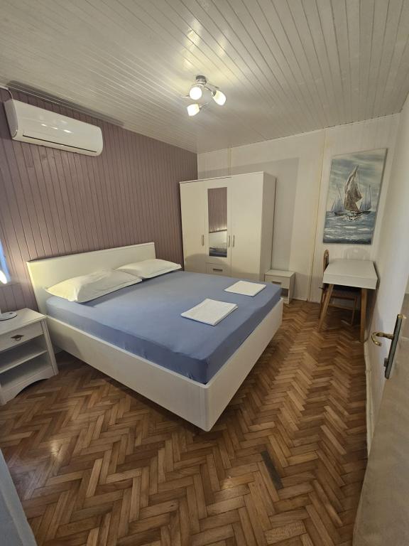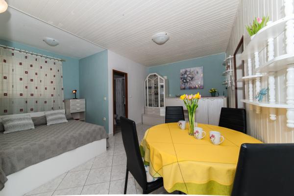 Naša hiša se nahaja v mirnem delu Baške Vode. Sestavljen je iz treh apartmajev z ločenimi vhodi. Hišo lahko najamete celo ali vsako stanovanje posebej. Vsak apartma ima eno parkirno mesto. Vsak apartma je klimatiziran in ima dostop do brezžičnega interneta. Pozorni smo na čistočo in urejenost, še posebej v današnjih razmerah z virusom COVID-19, po tem, ko se vsak gost razkuži. Dobrodošli! Lep pozdrav iz Baške Vode!