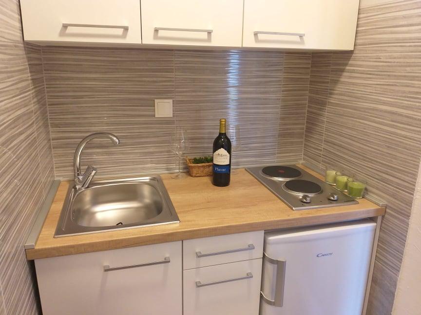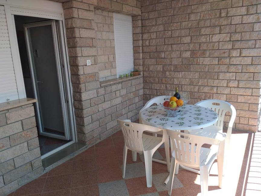 Hiša se nahaja na vzhodni strani Baške Vode v bližini hotela Horizont in na Hrvaškem. Ima parkirišče, morje je 70 metrov. Vse enote se nahajajo v prvem nadstropju.