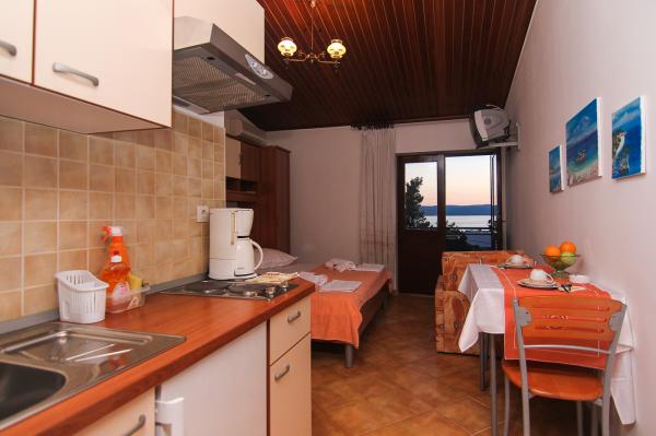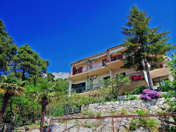 Čudoviti ljudje, srčne, profesionalne, umetniške duše Apartmaji so čisti, urejeni, s čudovitim razgledom in poštenimi cenami. So na takem mestu, da je tudi ko je +40 in brez klime prijetno. Plaža je oddaljena dve minuti. Blizu je tudi Baška voda in Brela. Ni hribov in le nekaj stopnic (ki imajo senzorsko lučko, naj vas to ne prestraši, ni tako težko, kot se morda zdi. Prijateljem smo že priporočili... Zagotovo še pridemo