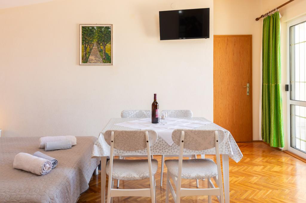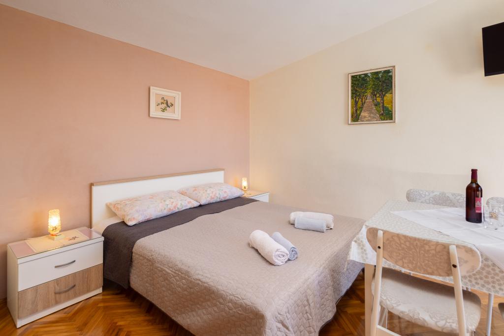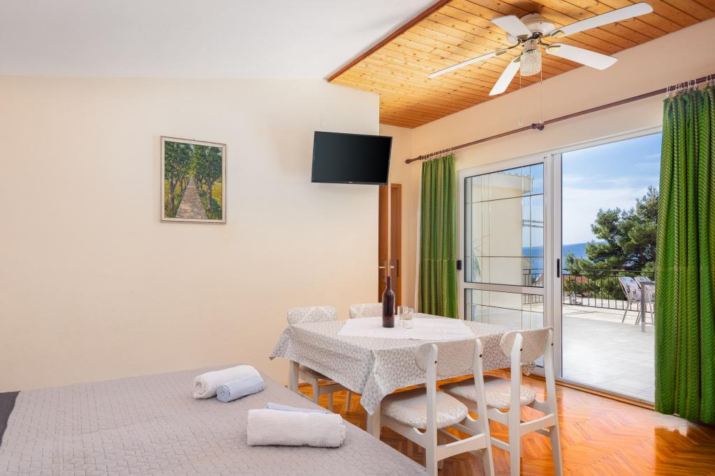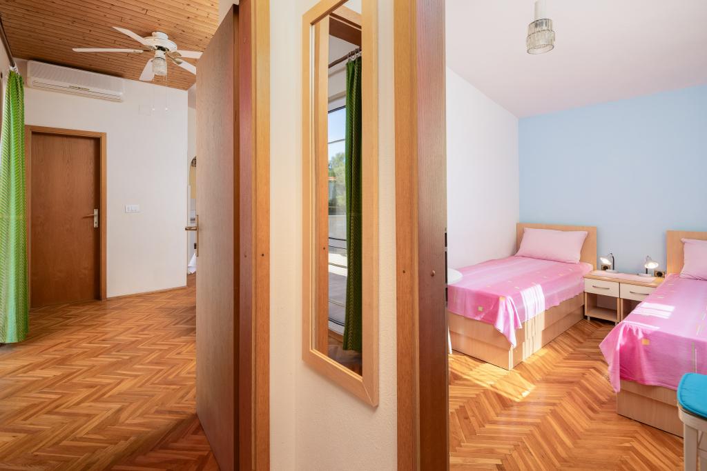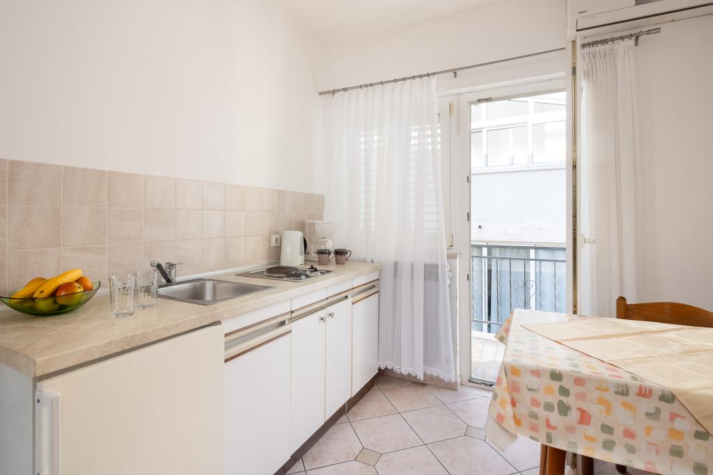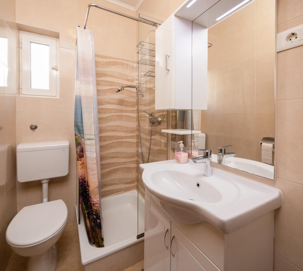 Ti apartmaji se nahajajo v mirnem delu Baške Vode in ponujajo udobno in praktično namestitev, le približno 400 m od plaže. Idealni za pare, družine ali manjše skupine, vključujejo še en prostoren apartma z dvema spalnicama in dvema kopalnicama ter manjšo enoto, primerno za 2 odrasli osebi in otroka. Oba apartmaja imata funkcionalno razporeditev, opremljene kuhinje, udobne dnevne sobe in zunanje prostore, vključno z zasebnim balkonom in dostopom do skupne terase z žarom. Gostom je na voljo tudi zasebno parkirišče in mirno okolje v bližini vseh ugodnosti. Idealna izbira za sproščeno in brezskrbno bivanje v Baški Vodi, z osebjem, ki je na voljo ves čas bivanja.
