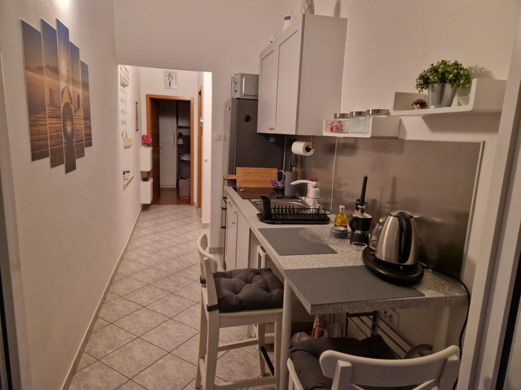 Popolnoma opremljen studio apartma za dve osebi v mirni ulici, 3 minute od morja, 10 minut od centra ... En otrok 0-7 let v App 1 (pritličje) brezplačno ... in majhni hišni ljubljenčki ...
