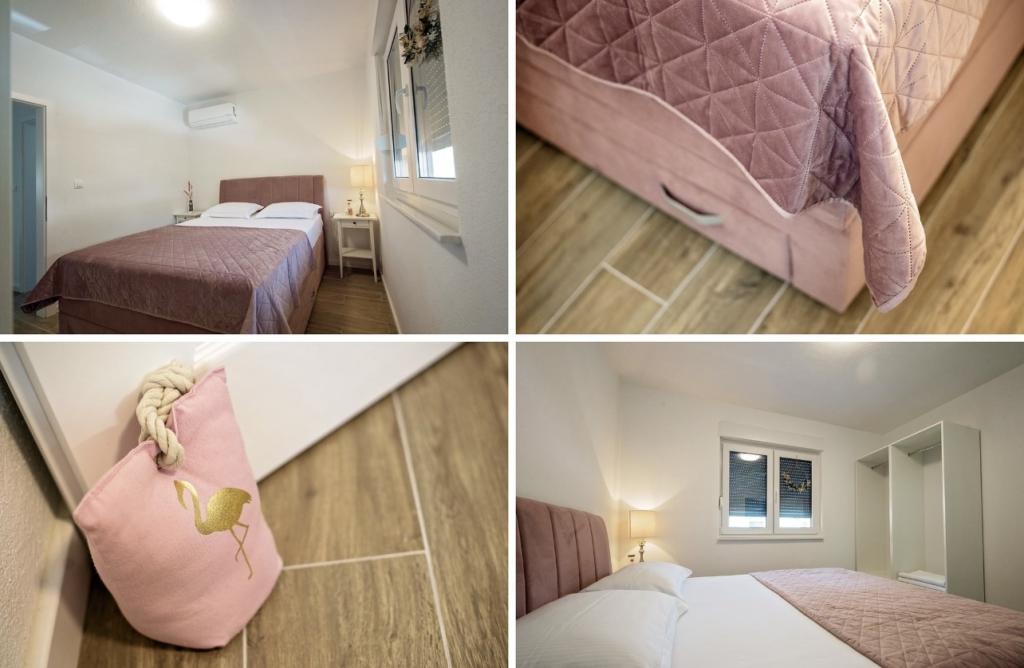 Prostor za najem. Apartma z dvema spalnicama, WC/tuš, kuhinja. Sobe imajo klimatsko napravo. Imate parkirišče v senci in veliko dvorišče. Nudimo trampolin za otroke. Kuhinja je prostorna.