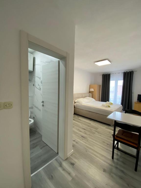 Ponujamo vam popolnoma opremljene apartmaje v mirnem predelu Baške Vode. Objekt se nahaja 500 metrov od plaže in centra, 10 minut hoje. Možne so različne kombinacije namestitve z več osebami, skupine.