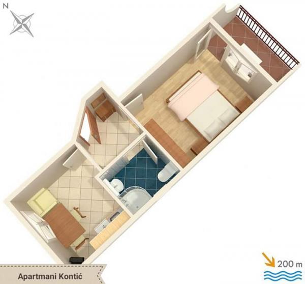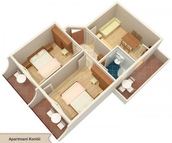 Apartmaji Kontić se nahajajo v Baški Vodi in ponujajo klimatizirane apartmaje. Gostom je na voljo zasebno parkirišče. Na voljo je brezplačen brezžični internet, najbližja prodnata plaža pa je 150 m stran. Vsi apartmaji imajo popolnoma opremljeno majhno kuhinjo, satelitsko TV in lastno kopalnico. Na balkonih apartmajev boste uživali v čudovitih sončnih zahodih in panoramskem pogledu na morje in goro Biokovo. Gostje lahko uživajo v potapljanju, plavanju, ribolovu, nogometu, košarki, tenisu, odbojki na mivki in drugih športih. Planina Biokovo je idealna za pohodništvo ali kolesarjenje. Apartmaji Kontić se nahajajo 10 km od Makarske in so zato dobro izhodišče za izlete in raziskovanje dalmatinske obale, otokov in drugih zgodovinskih in kulturnih znamenitosti. Na vas je, da se prepustite in izkoristite svoj dopust po najboljših močeh ...