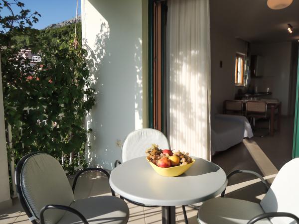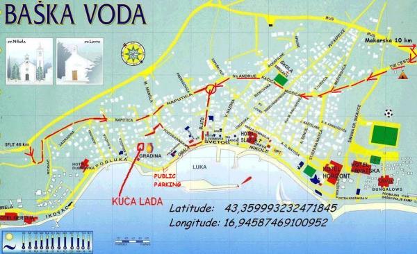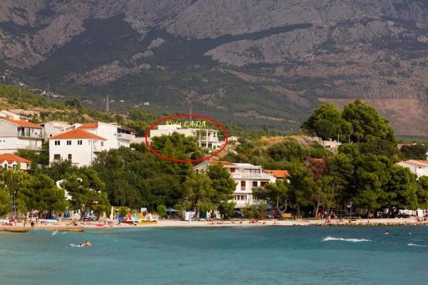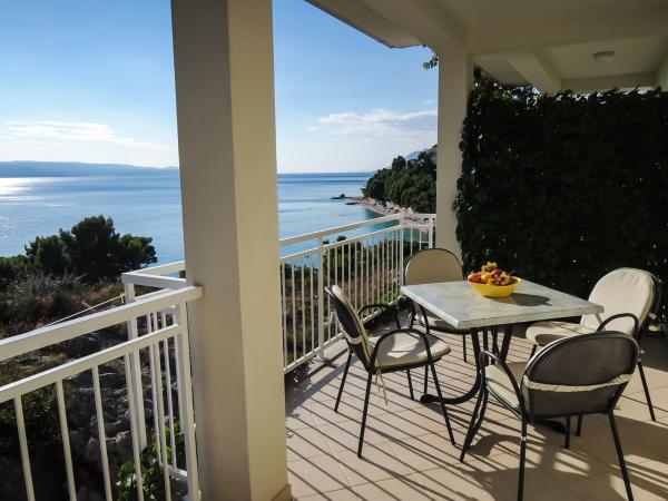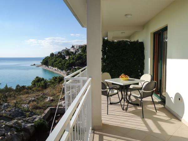 Apartmaji s pogledom na morje, plače, in otoke, se nahaja v prvem nadstropju hiše, ki se nahaja na mirni lokaciji v Baški Vodi na hribčku imenuje Gradina 20 m nadmorske višine, 30 m od morja, 2 -3 min od najlepše plaže in 5 minut od centra Baške Vode. Privatno parkirišče pred hišo.