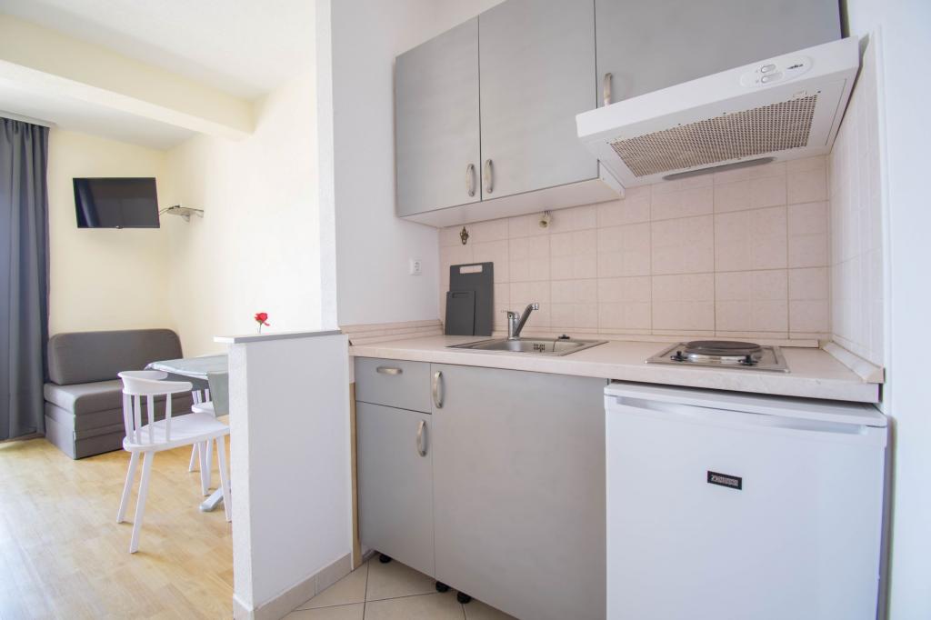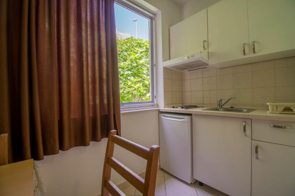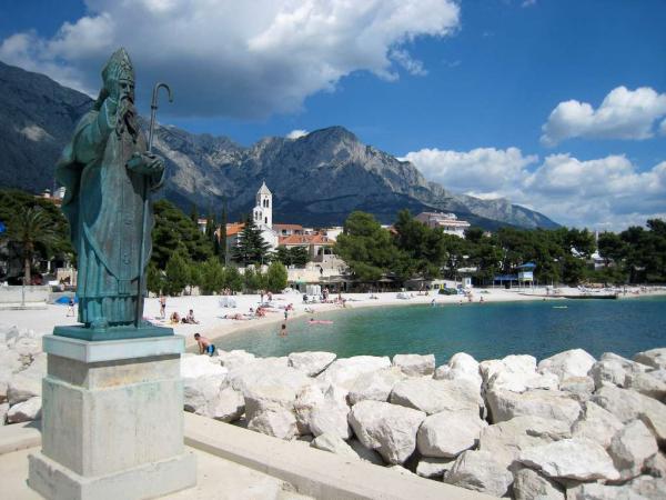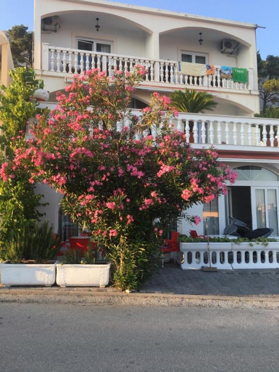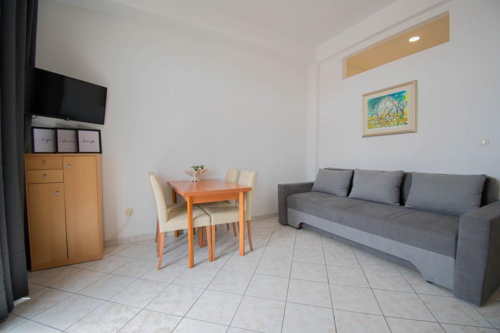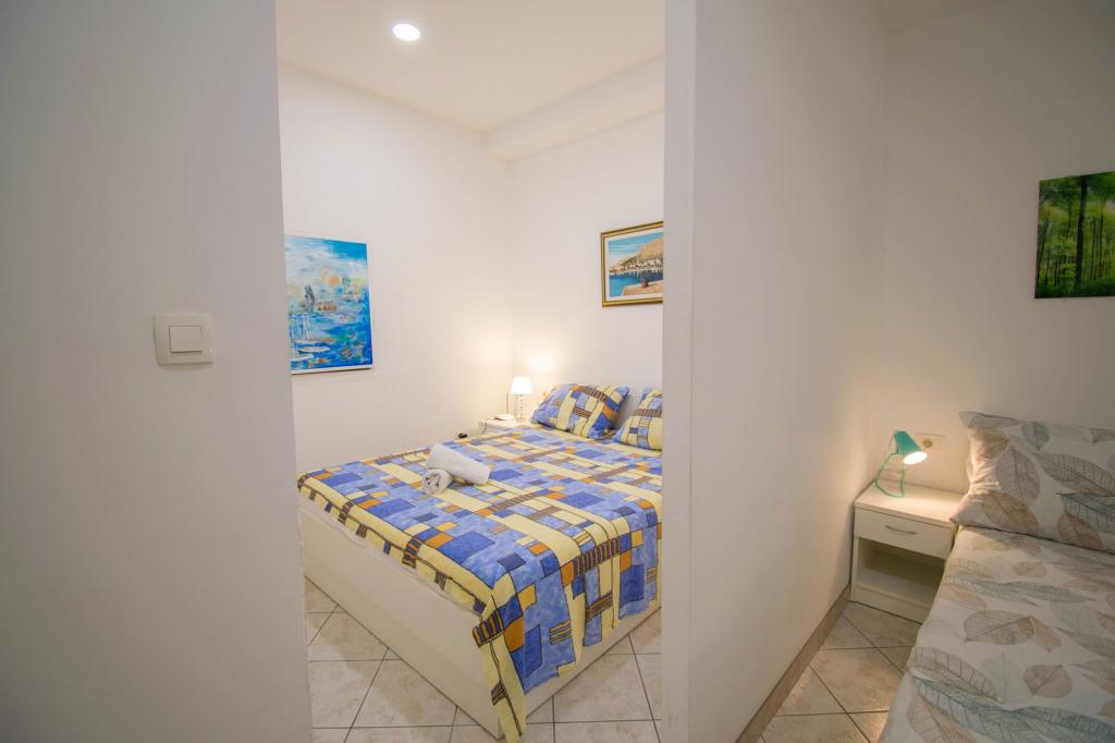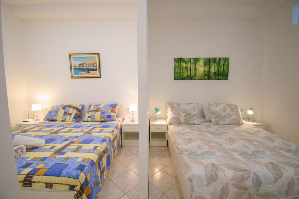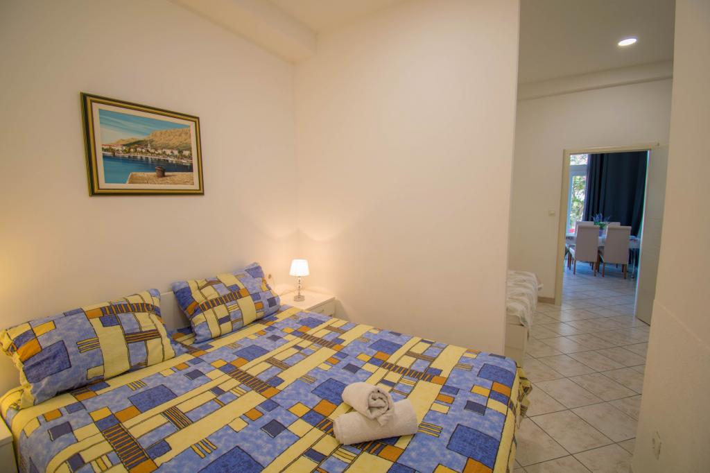 Zemljišče se nahaja v mirnem delu Baške Vode. Objekt se nahaja 3 minute hoje od centra in plaže. Restavracija se nahaja 20 metrov od bivalnih prostorov. V bližini trgovine, razdalja 40 metrov. Dva apartmaja v pritličju z dostopom za invalide. Parkirišče je vključeno v ceno. Možnost prevoza z letališča do namestitve doplačilo.