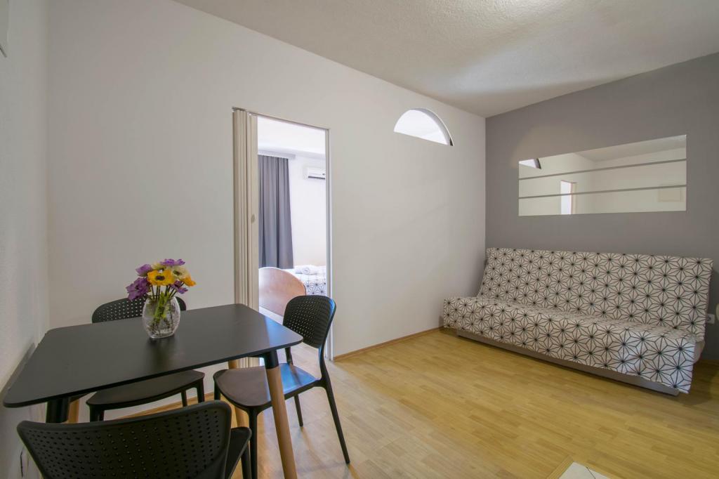 Stanovanje se je nahajalo v pritličju, na ulici, tako da ni bilo mogoče spati z odprtimi vrati. Klima kot povsod, le v glavni dnevni sobi. V glavni dnevni sobi je samo okno, spalnica je brez oken, a to je bil plus, ker tam ni bilo sonca. Sušilec perila je plus, minus oprema, nekaj krožnikov in kozarcev, nič mikrovalovke, je pa bil kotliček s stoli pred vhodom, kljub ulici, nihče ni gledal na krožnike, je pa majhna terasa. . Parkiranje na višini za hišo. Sobe zgoraj bi bile bolj atmosferske.