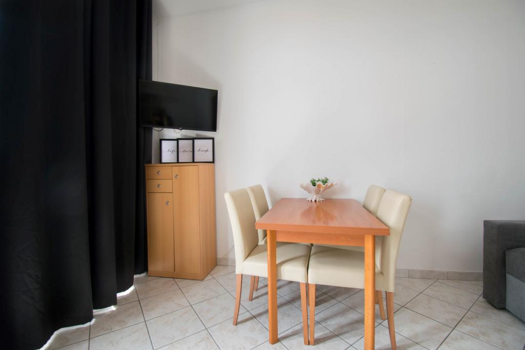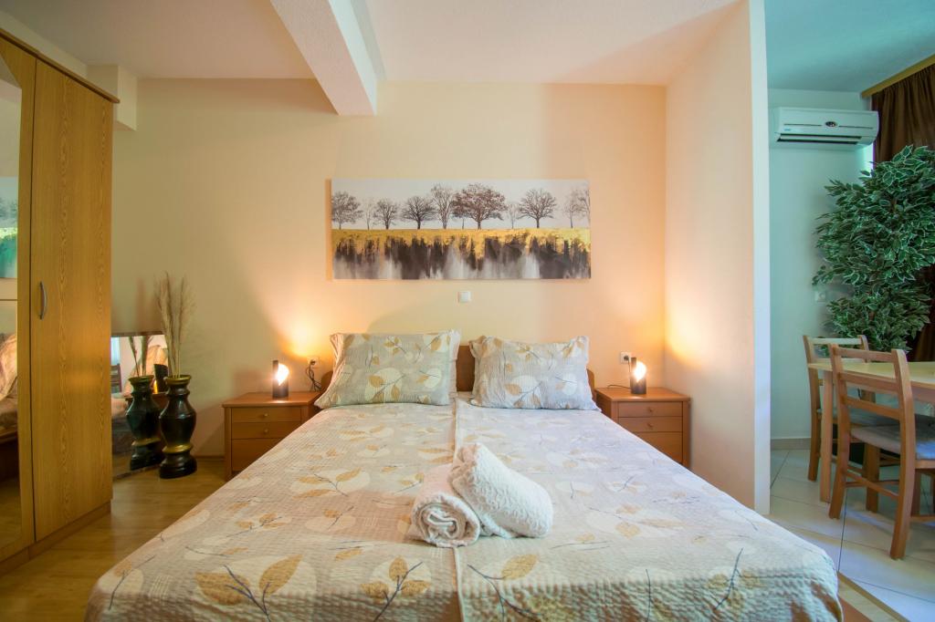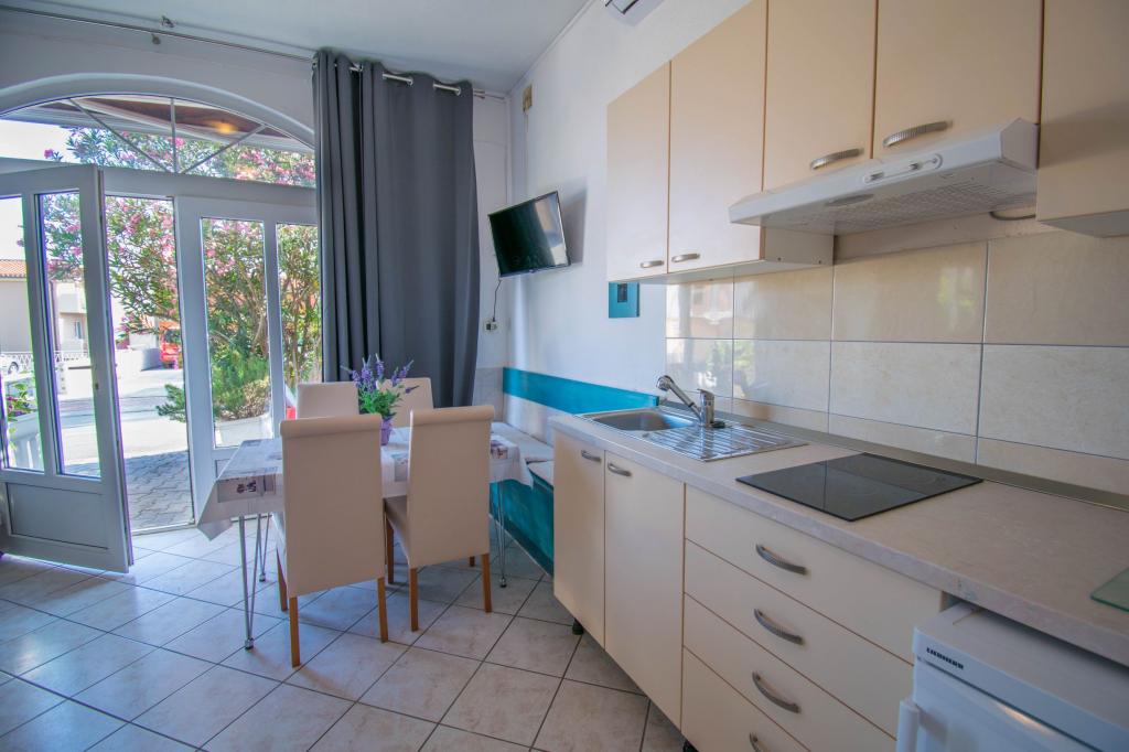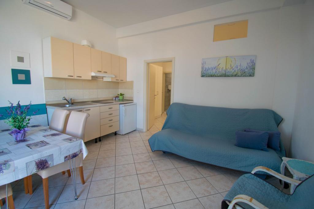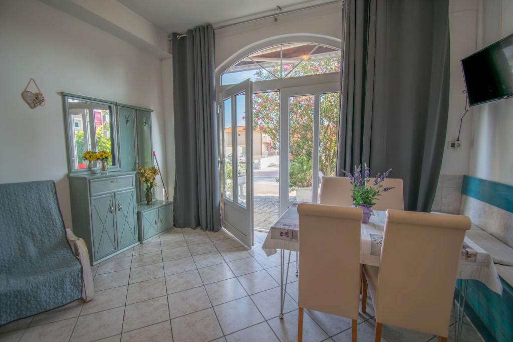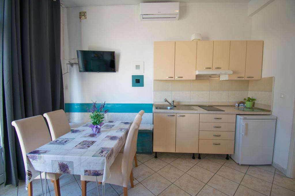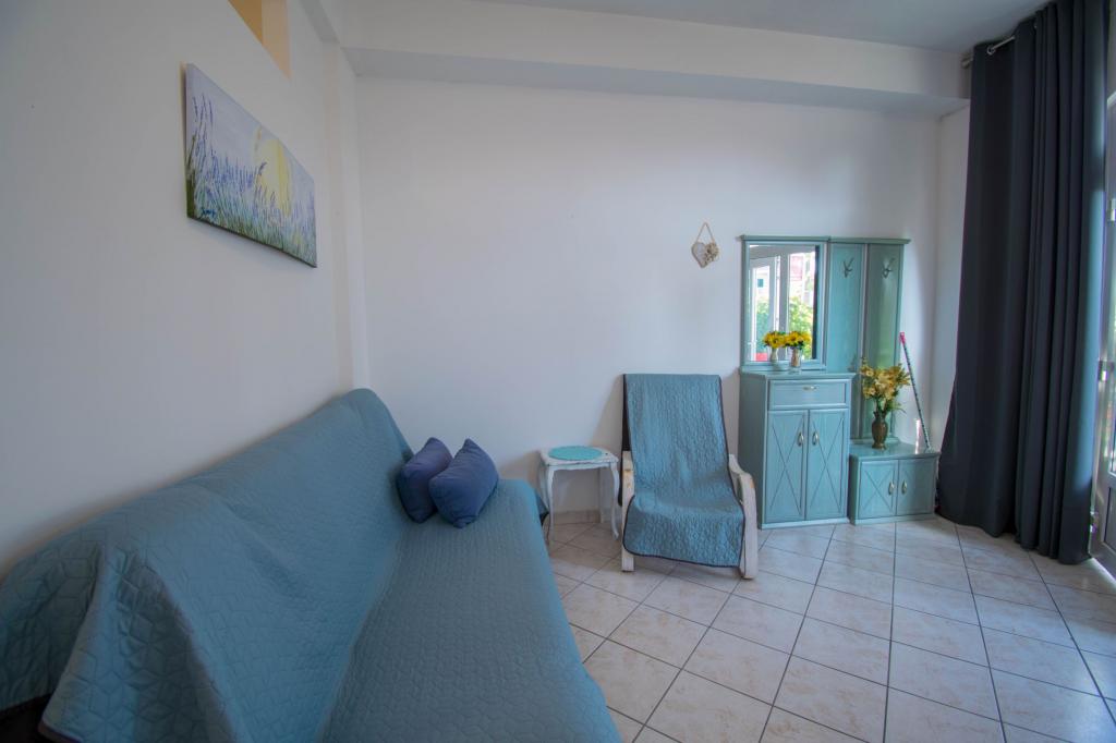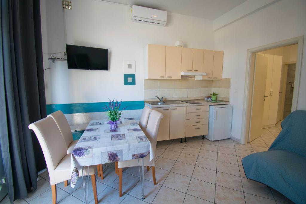 Stanovanje kot je opisano v ponudbi. Nahaja se ob glavni cesti v vasi, zato jo je zelo enostavno najti. Je blizu plaže in centra mesta - največ 5 minut hoje. Parkirišče je na voljo, vendar ne pri samem objektu, le približno 150-200 m od njega. Zelo blizu - v radiju nekaj sto metrov tržnica in pekarna. Stanovanje, ki smo ga najeli, je bilo v pritličju. Bilo je čisto in lepo. Deluje klimatska naprava. Udobna in popolnoma opremljena kuhinja (lonci, krožniki, kozarci in ostali pripomočki, hladilnik in električni kuhalnik z dvema kuhalnikoma). Kopalnica s tušem - vse OK. Sobe imajo velike garderobne omare in velike zelo udobne postelje. Ob izhodu iz apartmaja je majhna terasa z mizo, a sediš skoraj na pločniku (ne vem ali je to slabost ali prednost). Lastnik zelo prijazen in ustrežljiv. Govori zelo dobro angleško. Res priporočam to stanovanje.