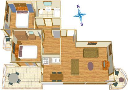 Apartma za dve osebi, možnost dveh dodatnih ležišč (65 m2)