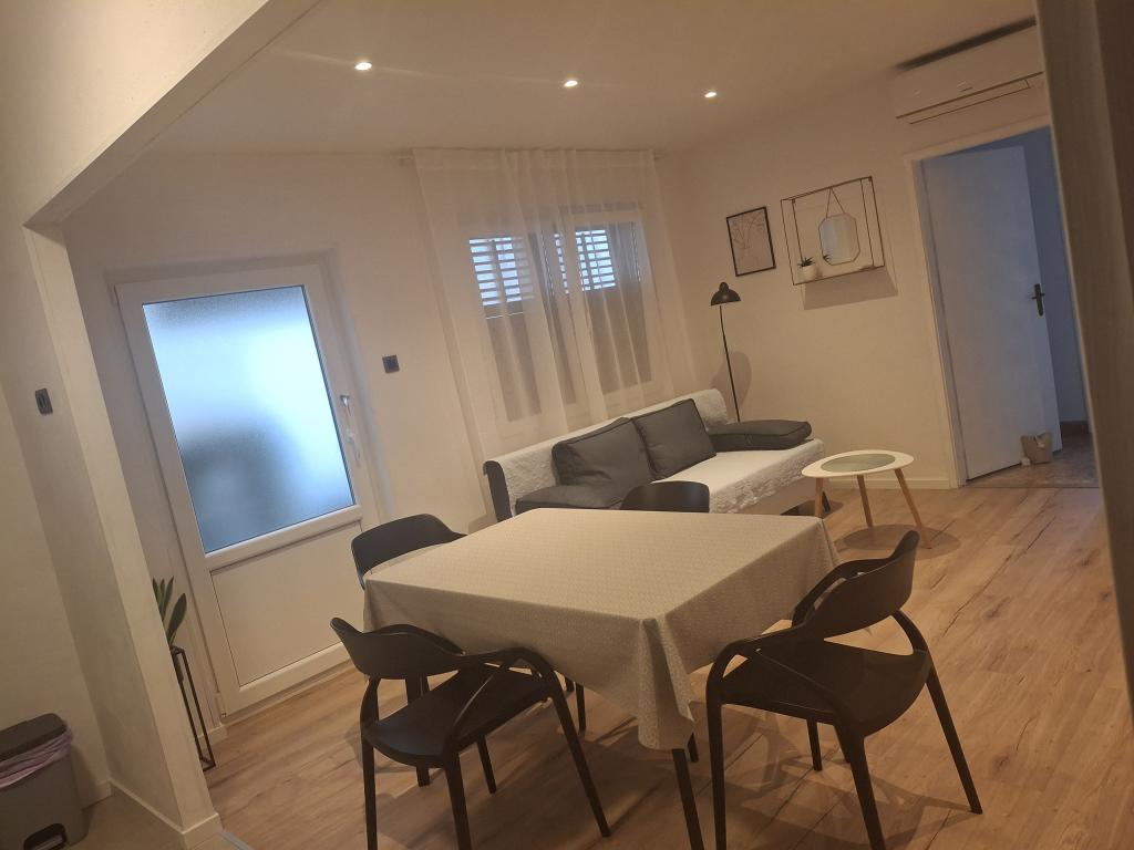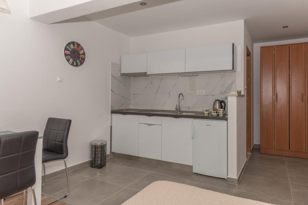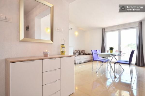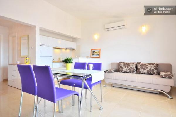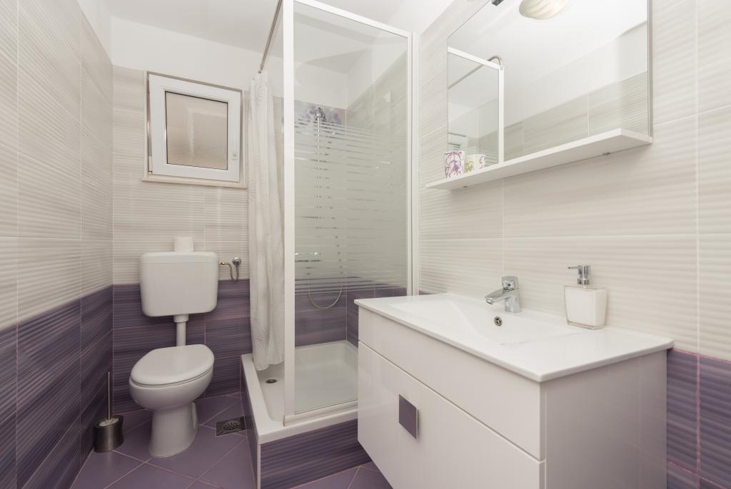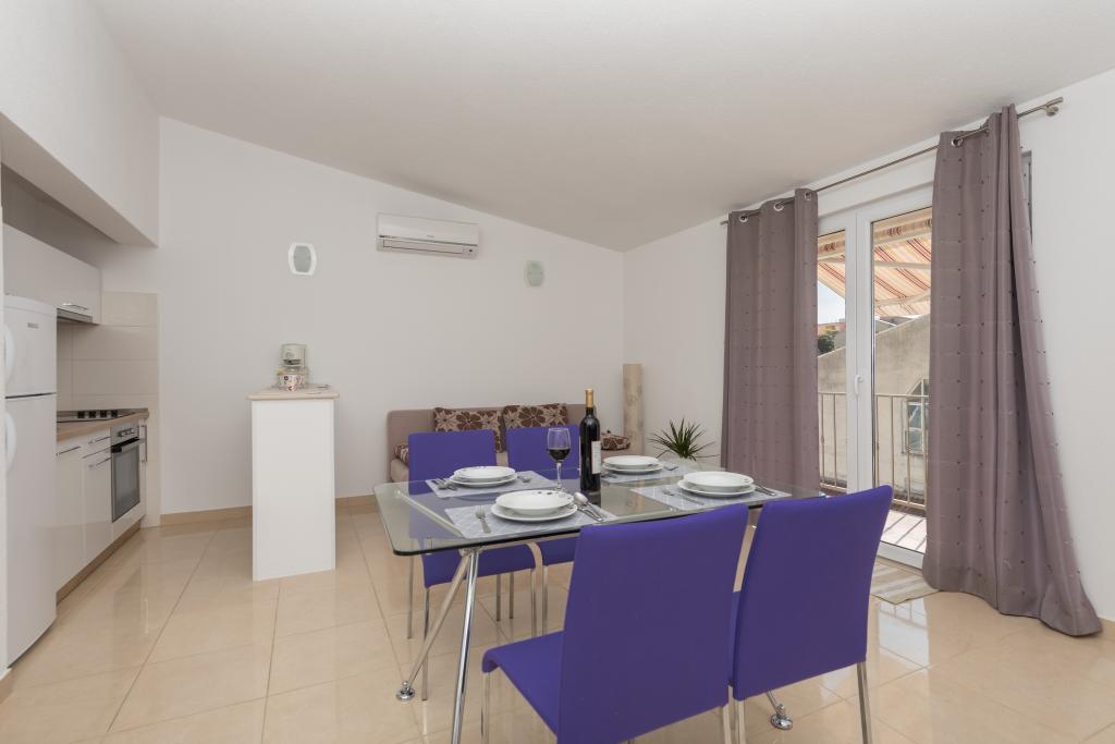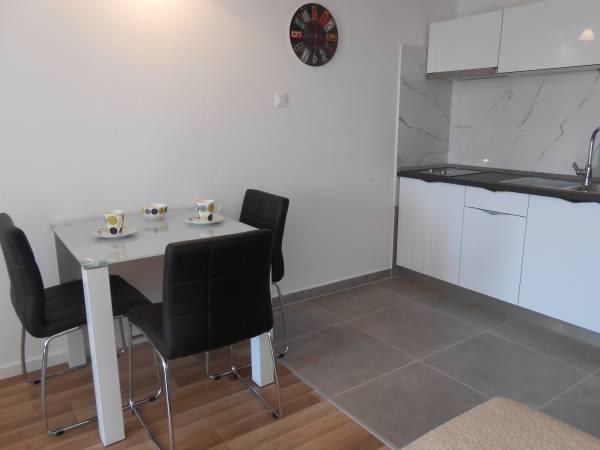 Klimatizirani apartmaji s pogledom na morje, le 200 m od glavne plaže, 4 minute hoje. APARTMA 2+2 -, udoben. Moderno opremljen apartma - 50 m2, ločena spalnica z zakonsko posteljo velikosti king size in raztegljivo posteljo za 2 osebi v dnevni sobi. APARTMA 4+ 1 z 2 spalnicama, velika dnevna soba z raztegljivo posteljo za 1 osebo-otroka. Primerno za družine in pare. Popolnoma klimatiziran, 3 klimatske naprave. APARTMA 3 udoben apartma za 2-3 osebe z balkonom - spektakularen pogled na morje in otoke. V okolici so restavracije, parkirišče ob hiši.