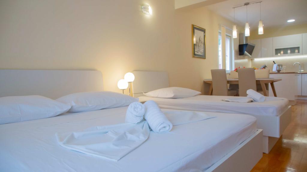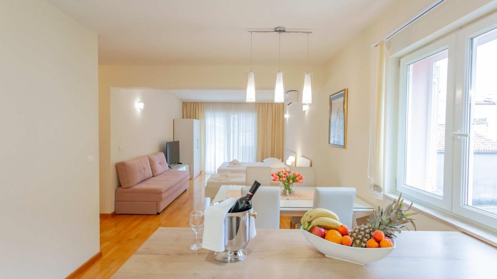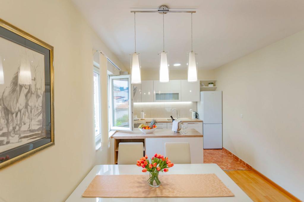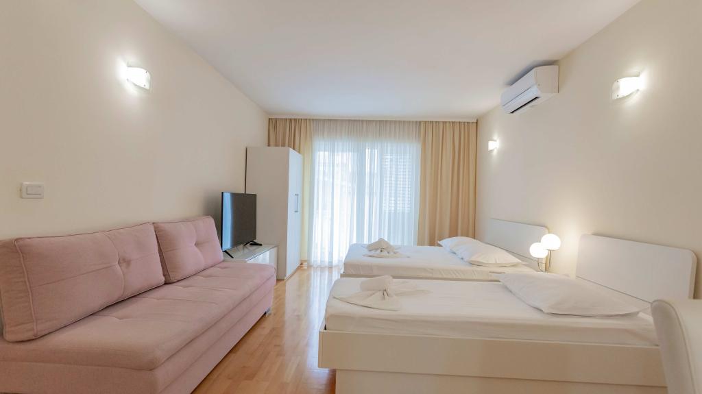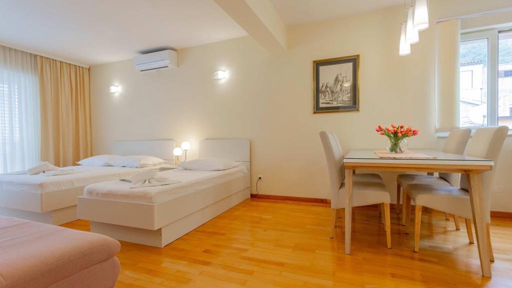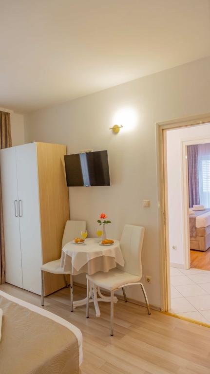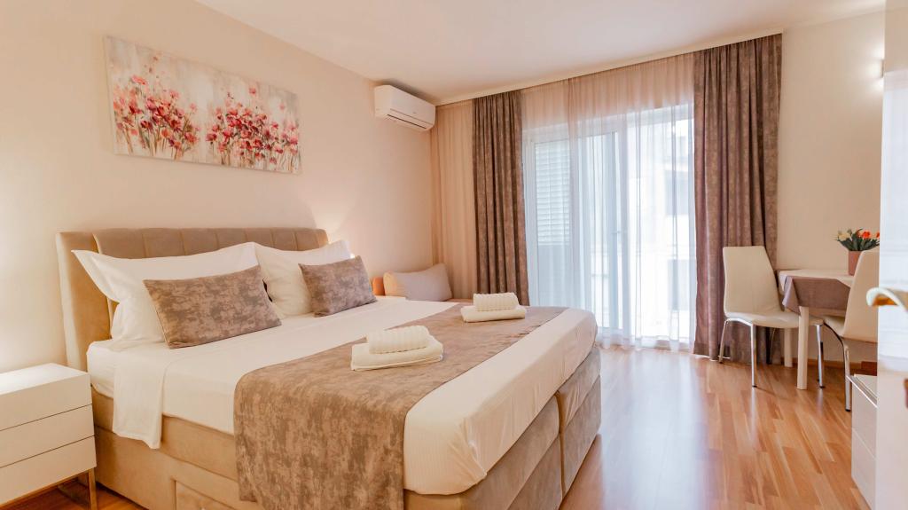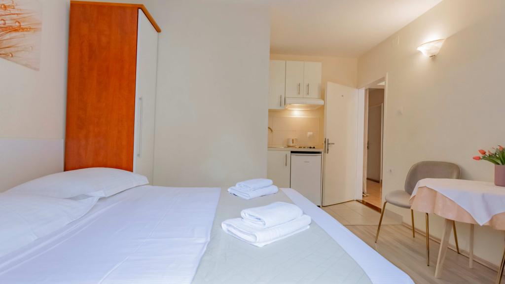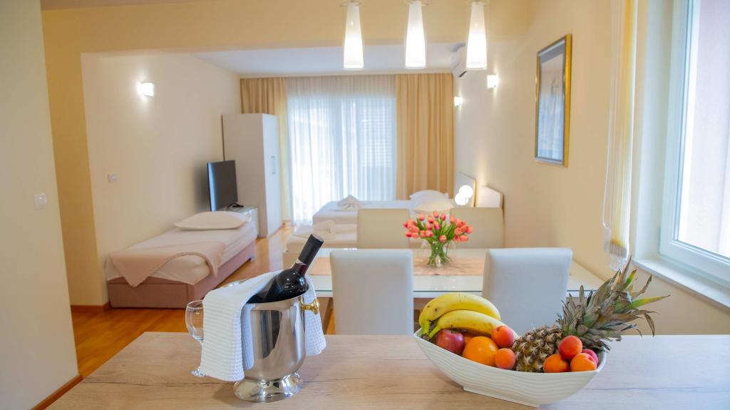 Naši popolnoma opremljeni apartmaji se nahajajo na mirni ulici v središču Baške Vode, le 2 minuti hoje od glavne plaže, trgovin, restavracij in centra mesta. Vsak apartma ima klimatsko napravo, brezplačen brezžični internet in zasebno parkirišče pred stavbo. So idealna izbira za goste, ki želijo uživati v bližini morja, hkrati pa imeti mir in udobje med počitnicami.