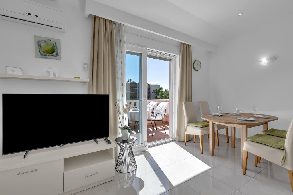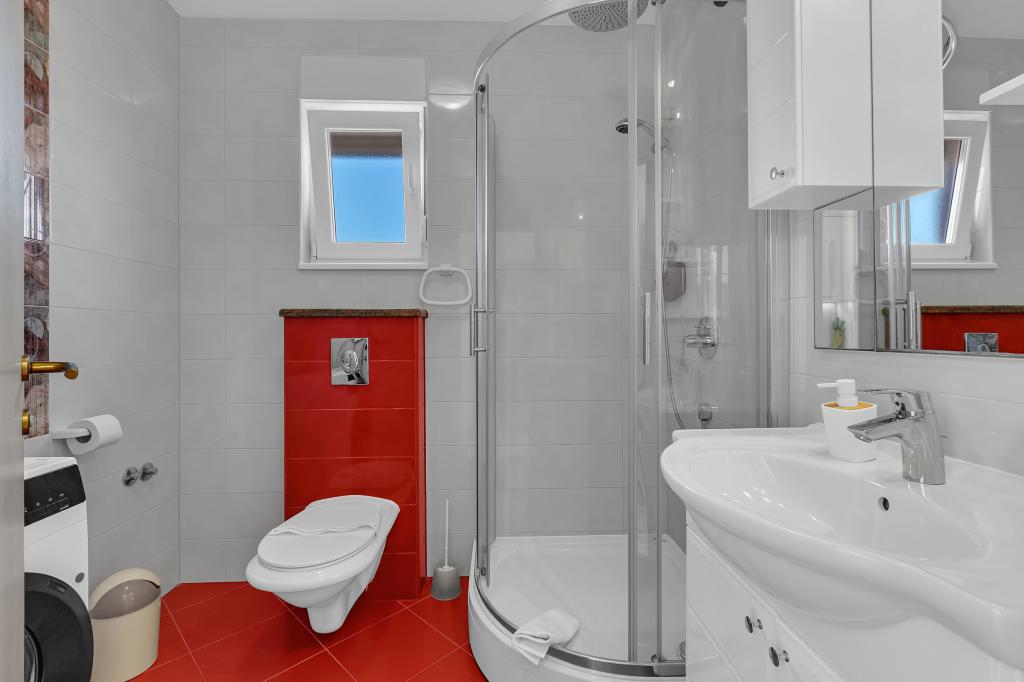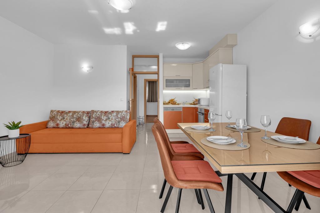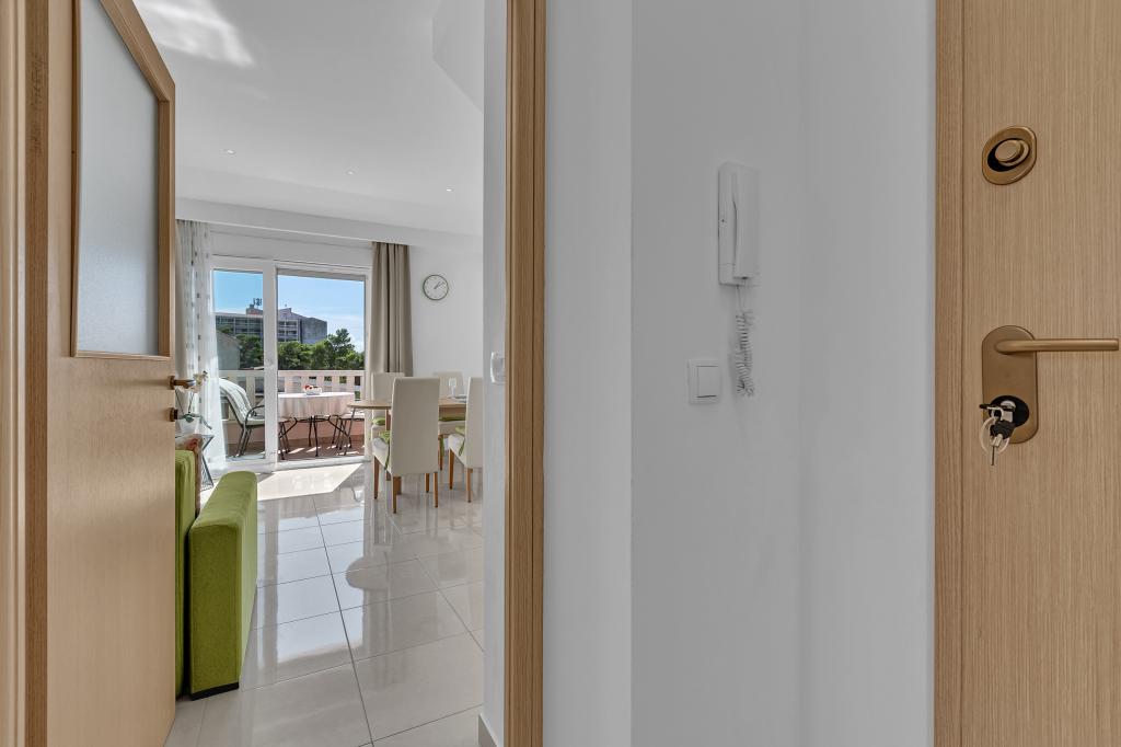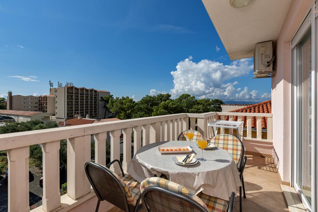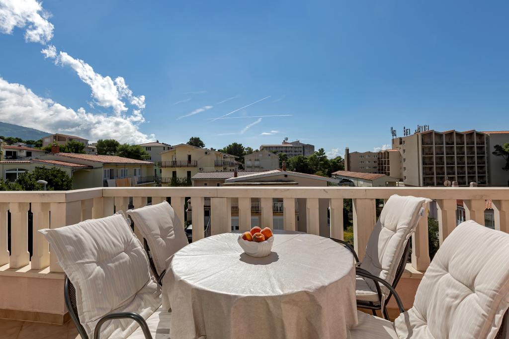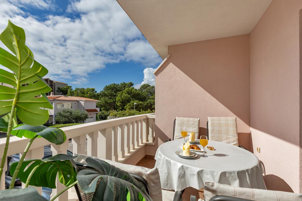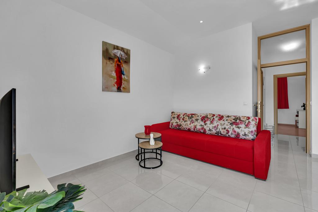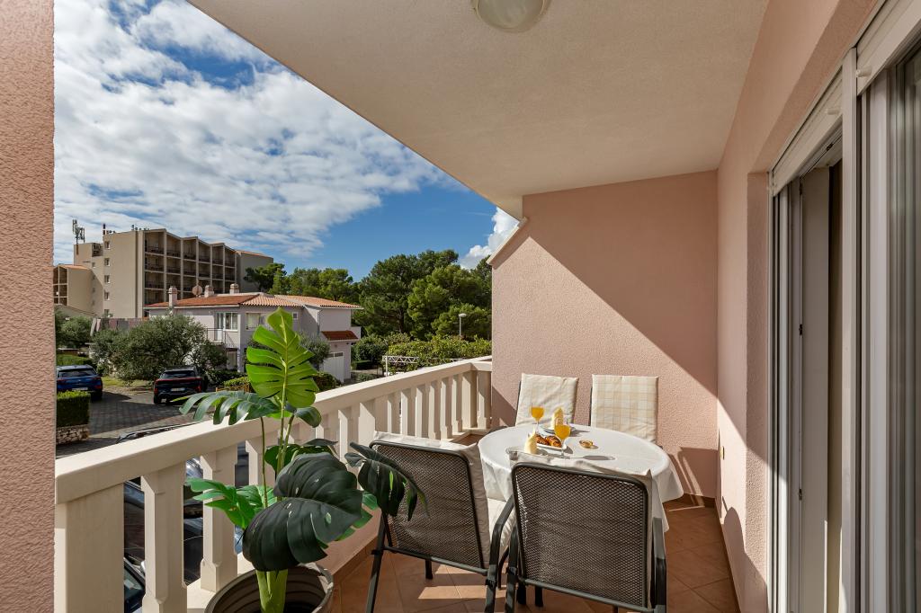 NOVA STANOVANJA! Vsi naši apartmaji so moderno opremljeni. Skupaj imamo v ponudbi šest (6) apartmajev, od katerih je pet (5) enosobnih in en dupleks - dvosoben. Na dvorišču je majhen bazen za goste, a) Enosobni apartmaji (2 odrasla in 2 otroka) imajo: sobo z zakonsko posteljo, veliko kopalnico z veliko tuš kabino, popolnoma opremljeno moderno kuhinjo z jedilnico in dnevno sobo s klimatsko napravo in udobnim raztegljivim kavčem za dva odrasla otroka ter brezžični internet. Vsako od teh stanovanj ima velik 9 m2 velik balkon iz dnevne sobe. b) Dvosobno, dvonadstropno stanovanje 4 (4 odrasli in 2 otroka) ima v prvem nadstropju moderno sobo z zakonsko posteljo in eno kopalnico s tušem in straniščem, popolnoma opremljeno kuhinjo z jedilnico in dnevno sobo z udobnim raztegljivim kavčem za dva odrasla otroka. V drugo nadstropje se pride po zavitem stopnišču, kjer se nahaja velika soba, kopalnica in ločen WC. . Obe nadstropji sta klimatizirani.
