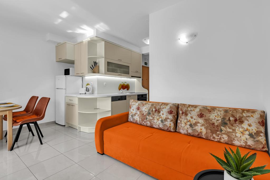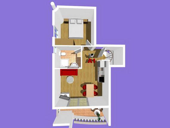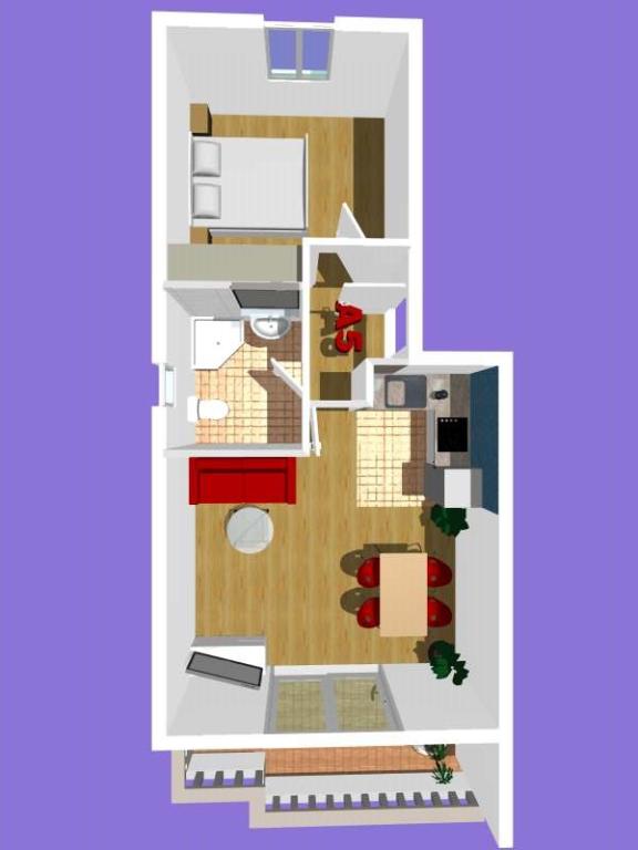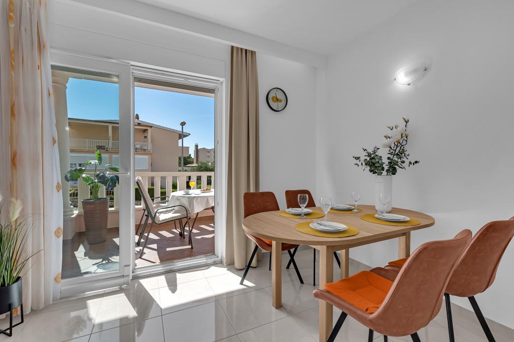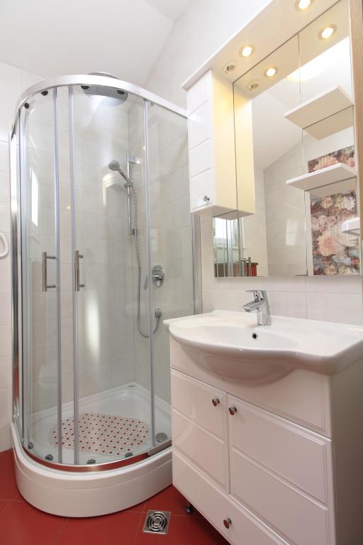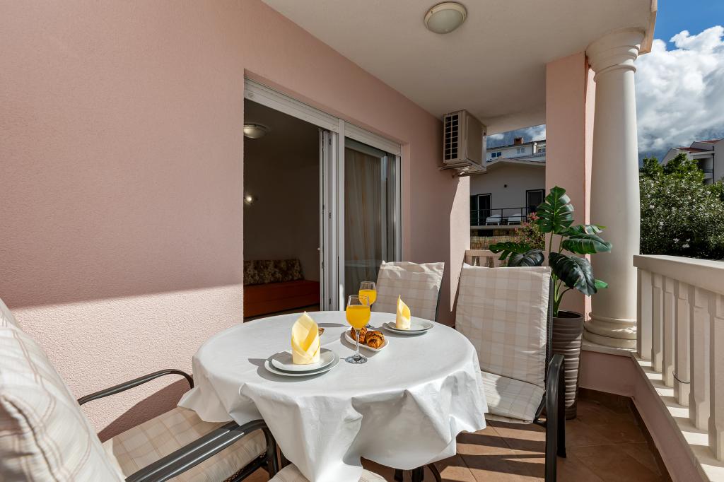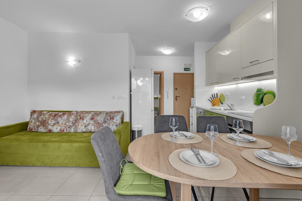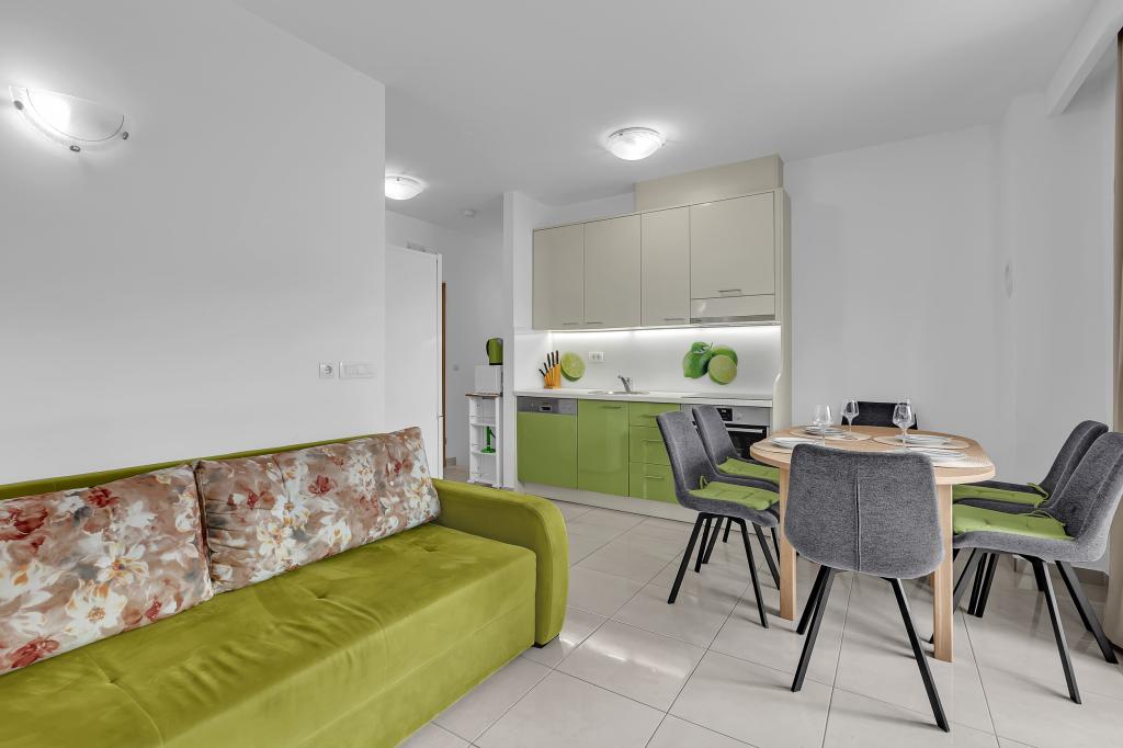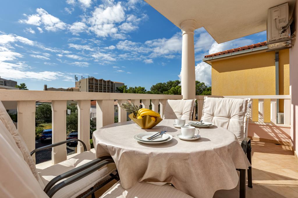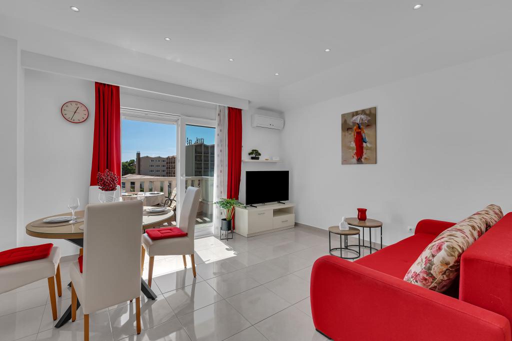 NOVA STANOVANJA! Vsi naši apartmaji so moderno opremljeni. Skupaj imamo v ponudbi šest (6) apartmajev, od katerih je pet (5) enosobnih in en dupleks - dvosoben. Na dvorišču je majhen bazen za goste, a) Enosobni apartmaji (2 odrasla in 2 otroka) imajo: sobo z zakonsko posteljo, veliko kopalnico z veliko tuš kabino, popolnoma opremljeno moderno kuhinjo z jedilnico in dnevno sobo s klimatsko napravo in udobnim raztegljivim kavčem za dva odrasla otroka ter brezžični internet. Vsako od teh stanovanj ima velik 9 m2 velik balkon iz dnevne sobe. b) Dvosobno, dvonadstropno stanovanje 4 (4 odrasli in 2 otroka) ima v prvem nadstropju moderno sobo z zakonsko posteljo in eno kopalnico s tušem in straniščem, popolnoma opremljeno kuhinjo z jedilnico in dnevno sobo z udobnim raztegljivim kavčem za dva odrasla otroka. V drugo nadstropje se pride po zavitem stopnišču, kjer se nahaja velika soba, kopalnica in ločen WC. . Obe nadstropji sta klimatizirani.