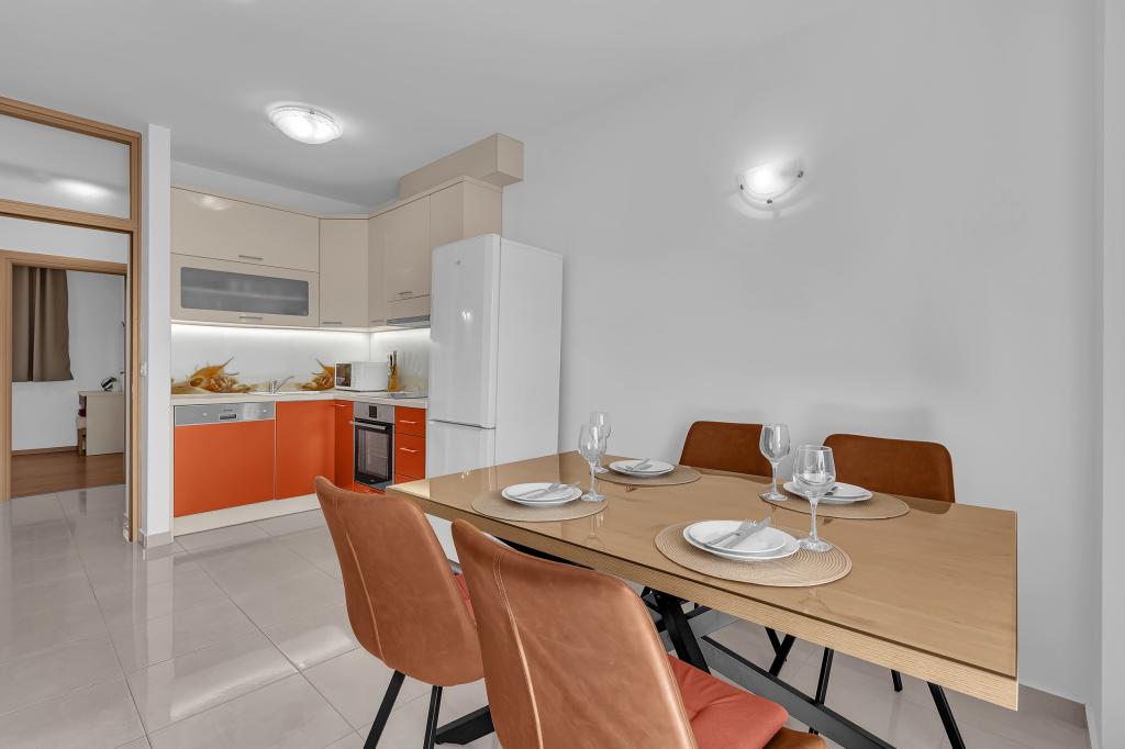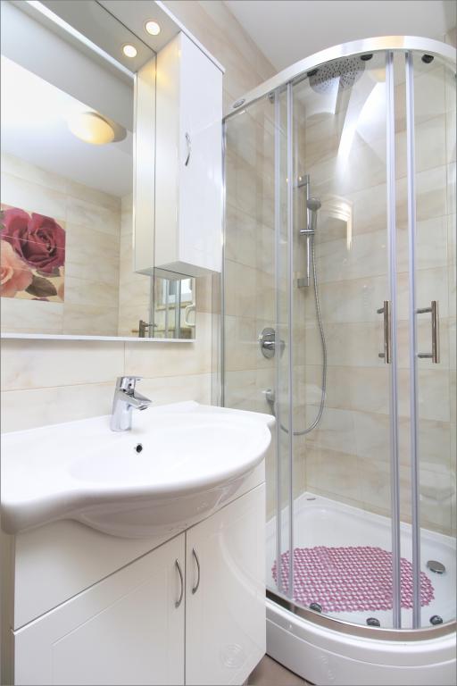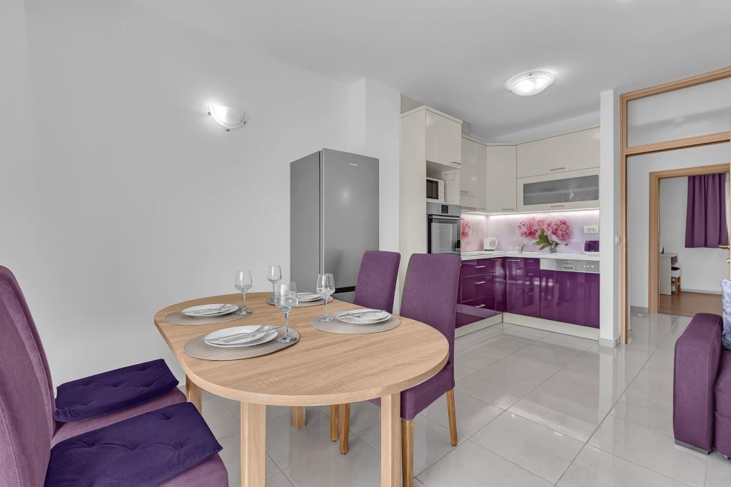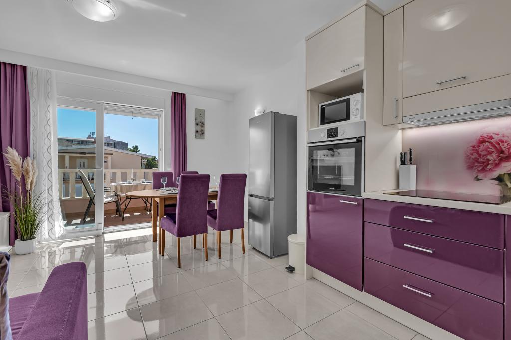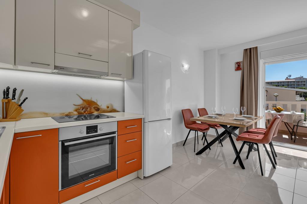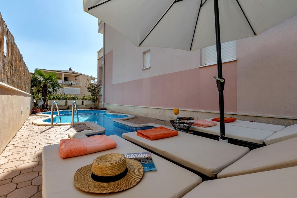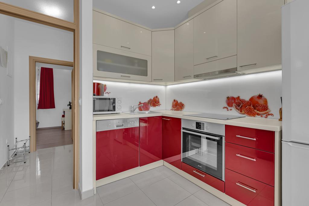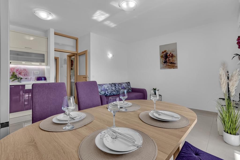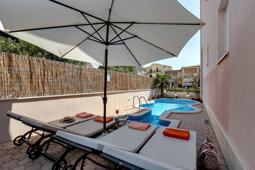 NOVA STANOVANJA! Vsi naši apartmaji so moderno opremljeni. Skupaj imamo v ponudbi šest (6) apartmajev, od katerih je pet (5) enosobnih in en dupleks - dvosoben. Na dvorišču je majhen bazen za goste, a) Enosobni apartmaji (2 odrasla in 2 otroka) imajo: sobo z zakonsko posteljo, veliko kopalnico z veliko tuš kabino, popolnoma opremljeno moderno kuhinjo z jedilnico in dnevno sobo s klimatsko napravo in udobnim raztegljivim kavčem za dva odrasla otroka ter brezžični internet. Vsako od teh stanovanj ima velik 9 m2 velik balkon iz dnevne sobe. b) Dvosobno, dvonadstropno stanovanje 4 (4 odrasli in 2 otroka) ima v prvem nadstropju moderno sobo z zakonsko posteljo in eno kopalnico s tušem in straniščem, popolnoma opremljeno kuhinjo z jedilnico in dnevno sobo z udobnim raztegljivim kavčem za dva odrasla otroka. V drugo nadstropje se pride po zavitem stopnišču, kjer se nahaja velika soba, kopalnica in ločen WC. . Obe nadstropji sta klimatizirani.