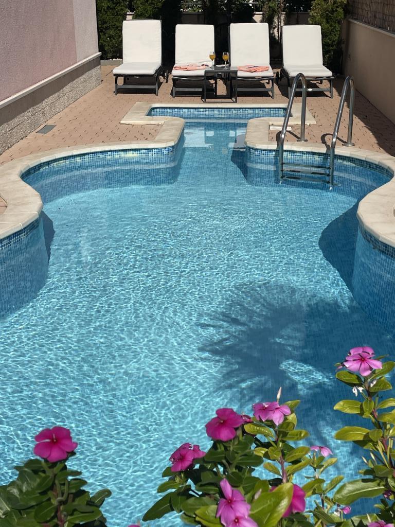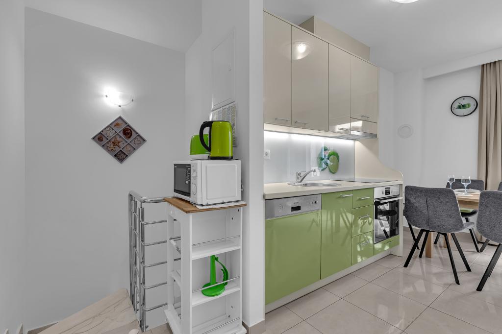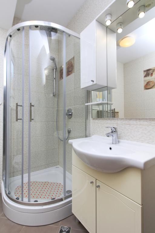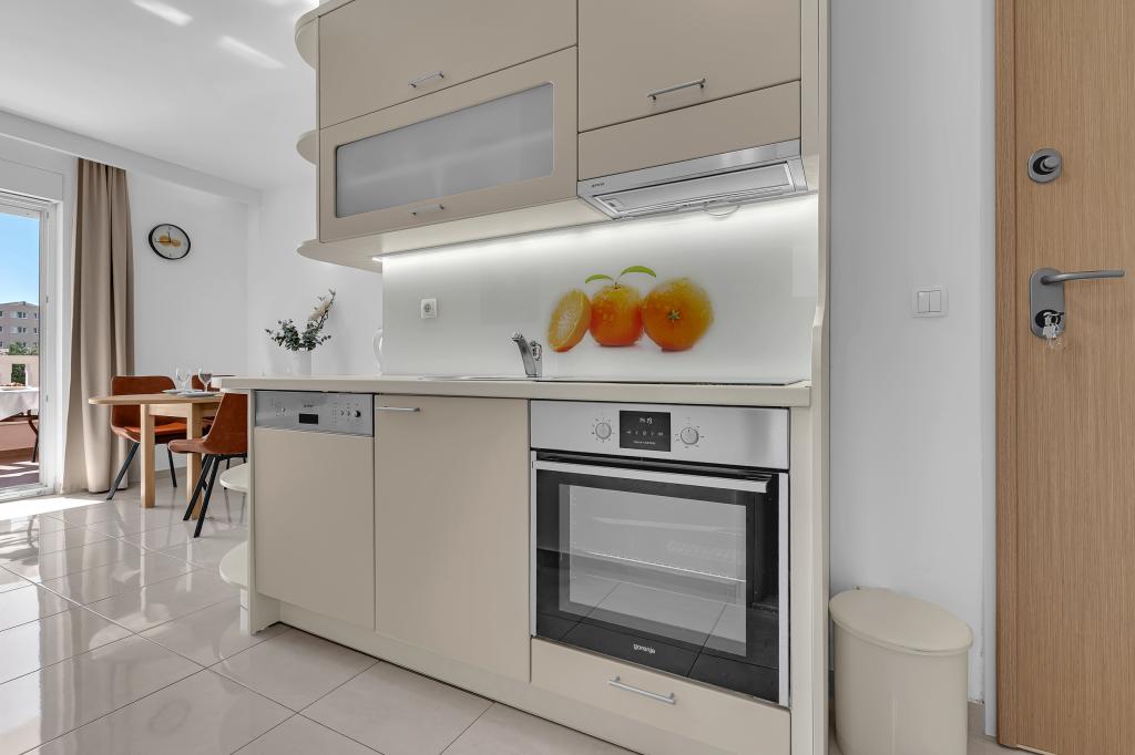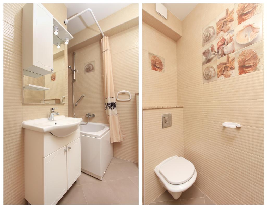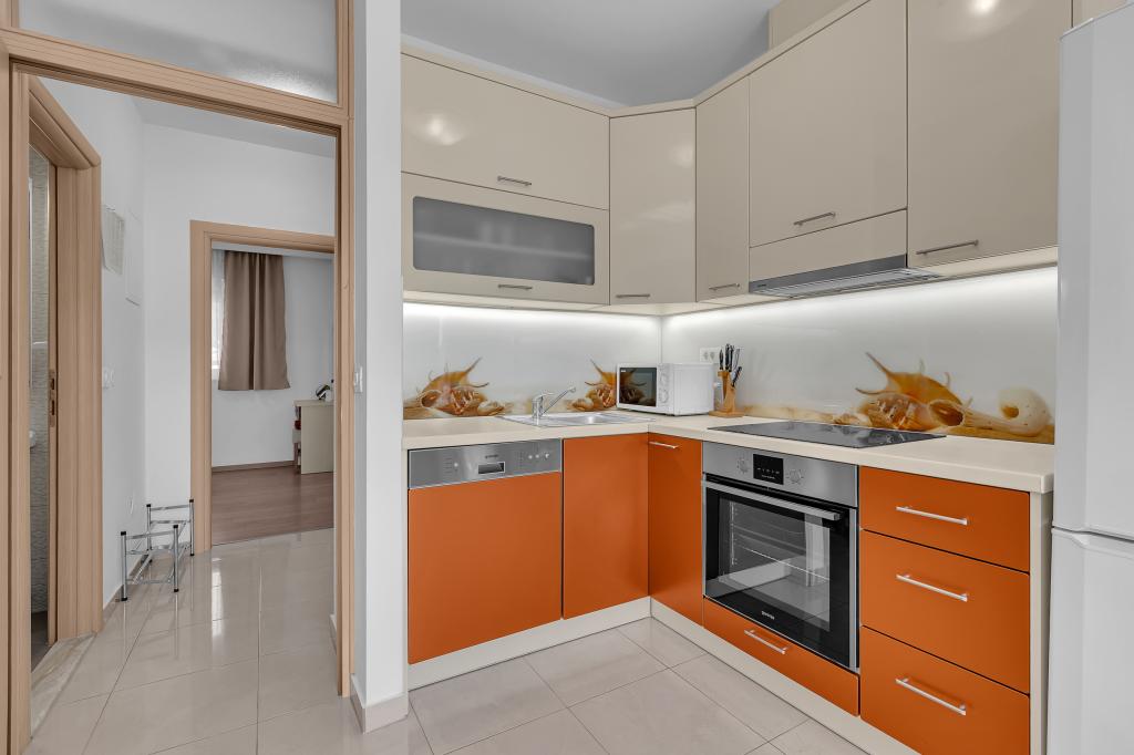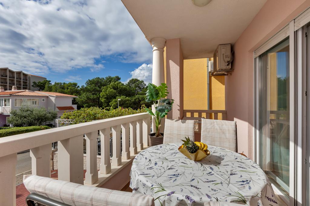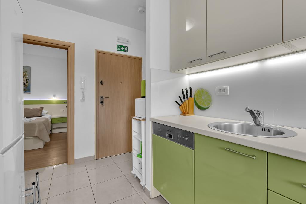 NOVA STANOVANJA! Vsi naši apartmaji so moderno opremljeni. Skupaj imamo v ponudbi šest (6) apartmajev, od katerih je pet (5) enosobnih in en dupleks - dvosoben. Na dvorišču je majhen bazen za goste, a) Enosobni apartmaji (2 odrasla in 2 otroka) imajo: sobo z zakonsko posteljo, veliko kopalnico z veliko tuš kabino, popolnoma opremljeno moderno kuhinjo z jedilnico in dnevno sobo s klimatsko napravo in udobnim raztegljivim kavčem za dva odrasla otroka ter brezžični internet. Vsako od teh stanovanj ima velik 9 m2 velik balkon iz dnevne sobe. b) Dvosobno, dvonadstropno stanovanje 4 (4 odrasli in 2 otroka) ima v prvem nadstropju moderno sobo z zakonsko posteljo in eno kopalnico s tušem in straniščem, popolnoma opremljeno kuhinjo z jedilnico in dnevno sobo z udobnim raztegljivim kavčem za dva odrasla otroka. V drugo nadstropje se pride po zavitem stopnišču, kjer se nahaja velika soba, kopalnica in ločen WC. . Obe nadstropji sta klimatizirani.