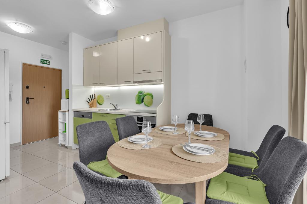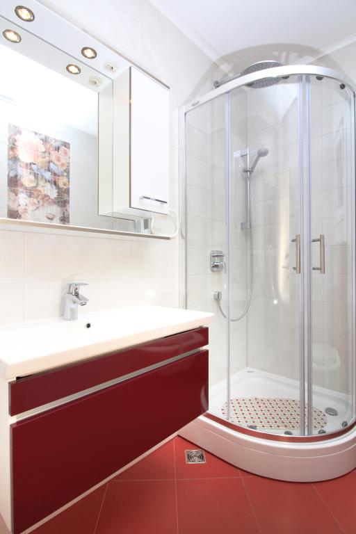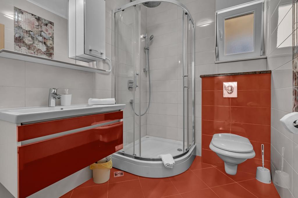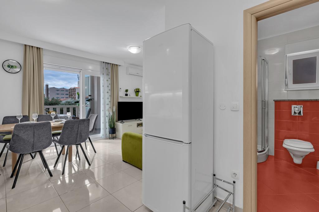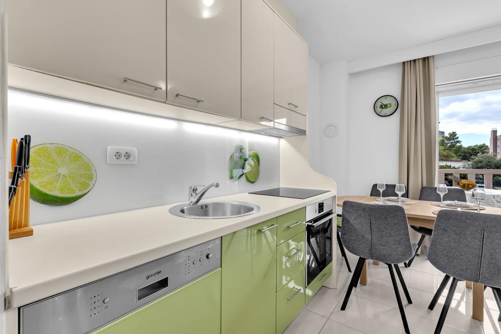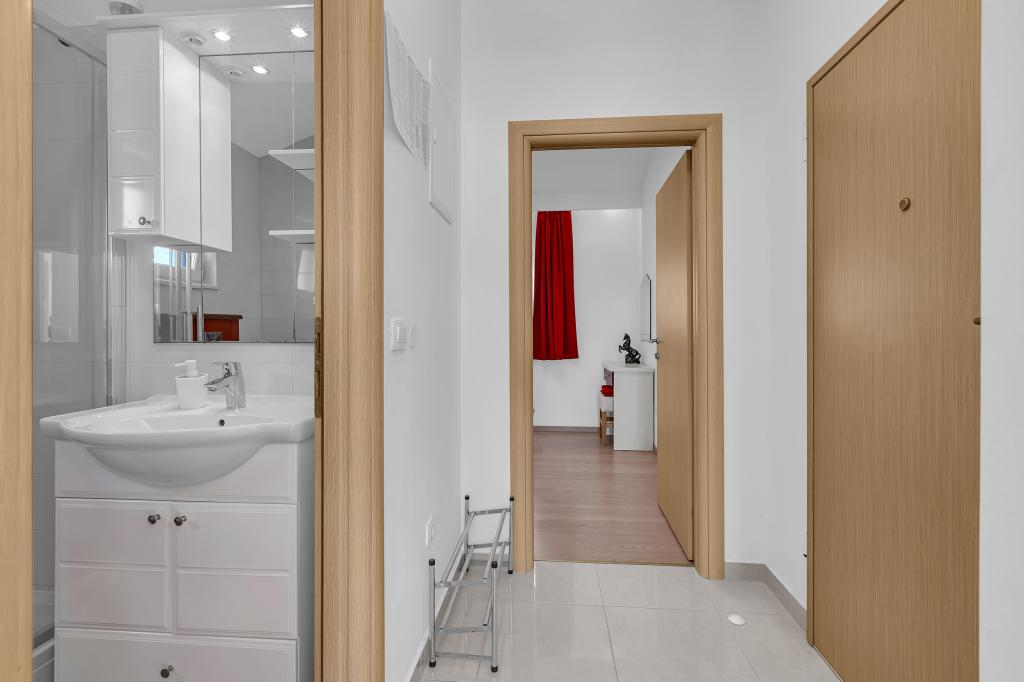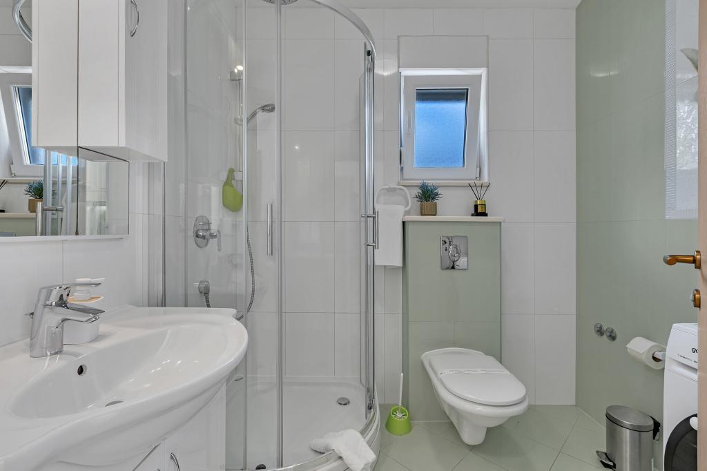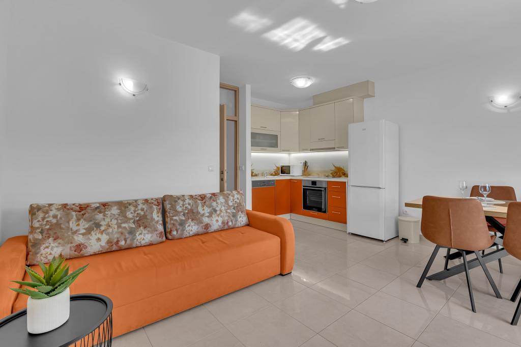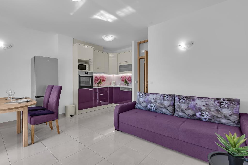 NOVA STANOVANJA! Vsi naši apartmaji so moderno opremljeni. Skupaj imamo v ponudbi šest (6) apartmajev, od katerih je pet (5) enosobnih in en dupleks - dvosoben. Na dvorišču je majhen bazen za goste, a) Enosobni apartmaji (2 odrasla in 2 otroka) imajo: sobo z zakonsko posteljo, veliko kopalnico z veliko tuš kabino, popolnoma opremljeno moderno kuhinjo z jedilnico in dnevno sobo s klimatsko napravo in udobnim raztegljivim kavčem za dva odrasla otroka ter brezžični internet. Vsako od teh stanovanj ima velik 9 m2 velik balkon iz dnevne sobe. b) Dvosobno, dvonadstropno stanovanje 4 (4 odrasli in 2 otroka) ima v prvem nadstropju moderno sobo z zakonsko posteljo in eno kopalnico s tušem in straniščem, popolnoma opremljeno kuhinjo z jedilnico in dnevno sobo z udobnim raztegljivim kavčem za dva odrasla otroka. V drugo nadstropje se pride po zavitem stopnišču, kjer se nahaja velika soba, kopalnica in ločen WC. . Obe nadstropji sta klimatizirani.