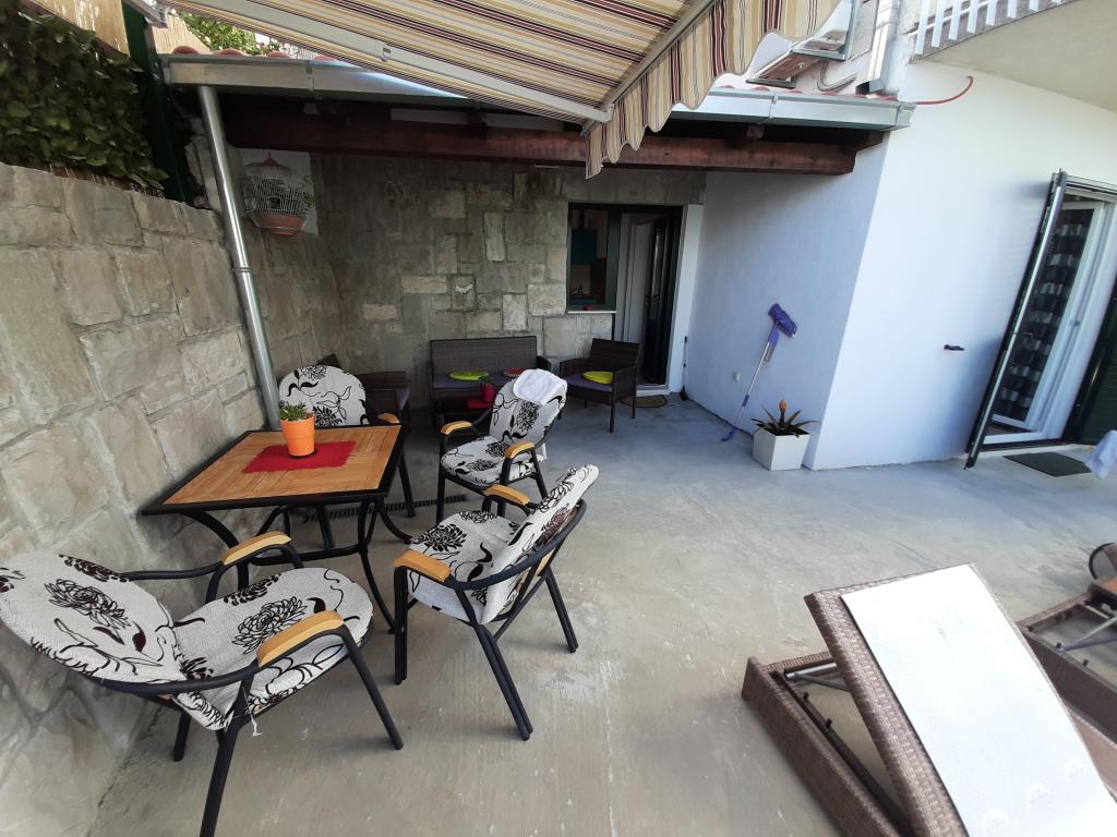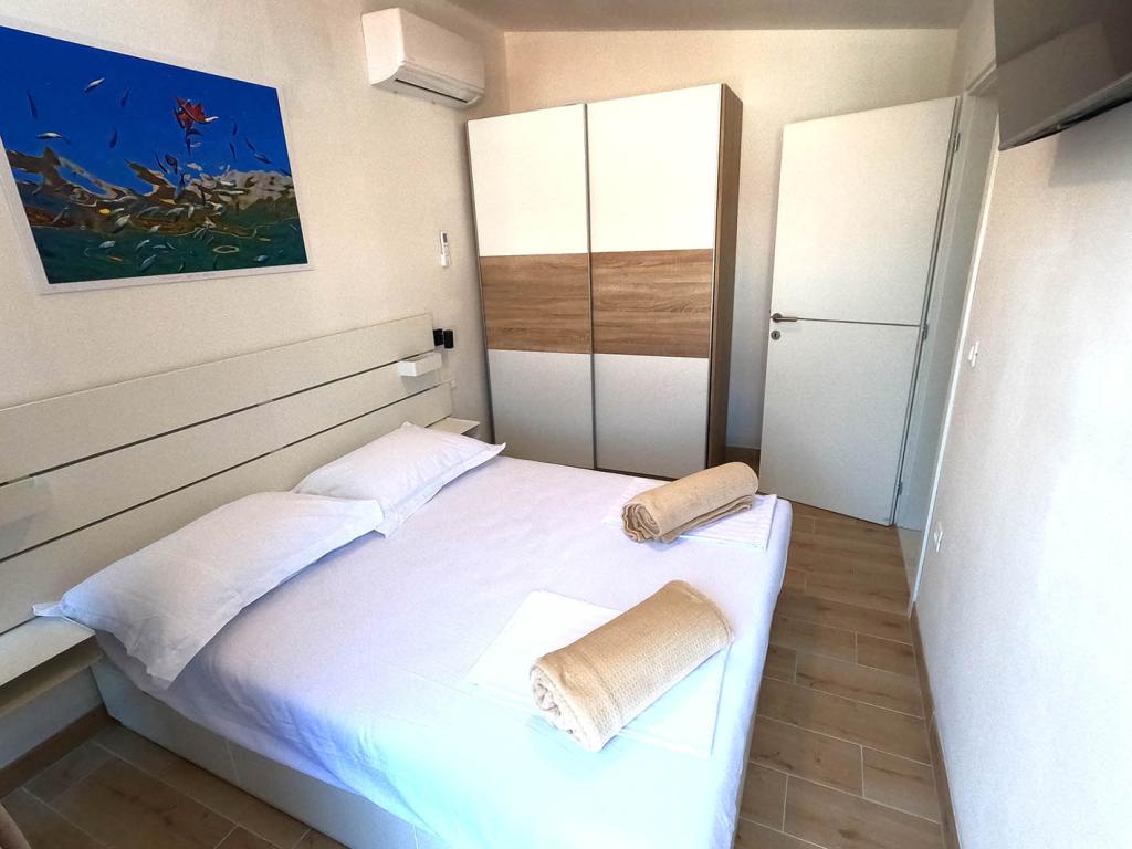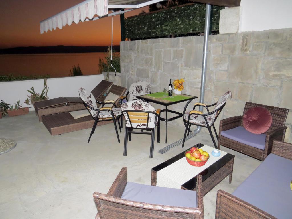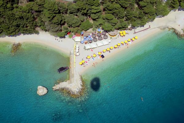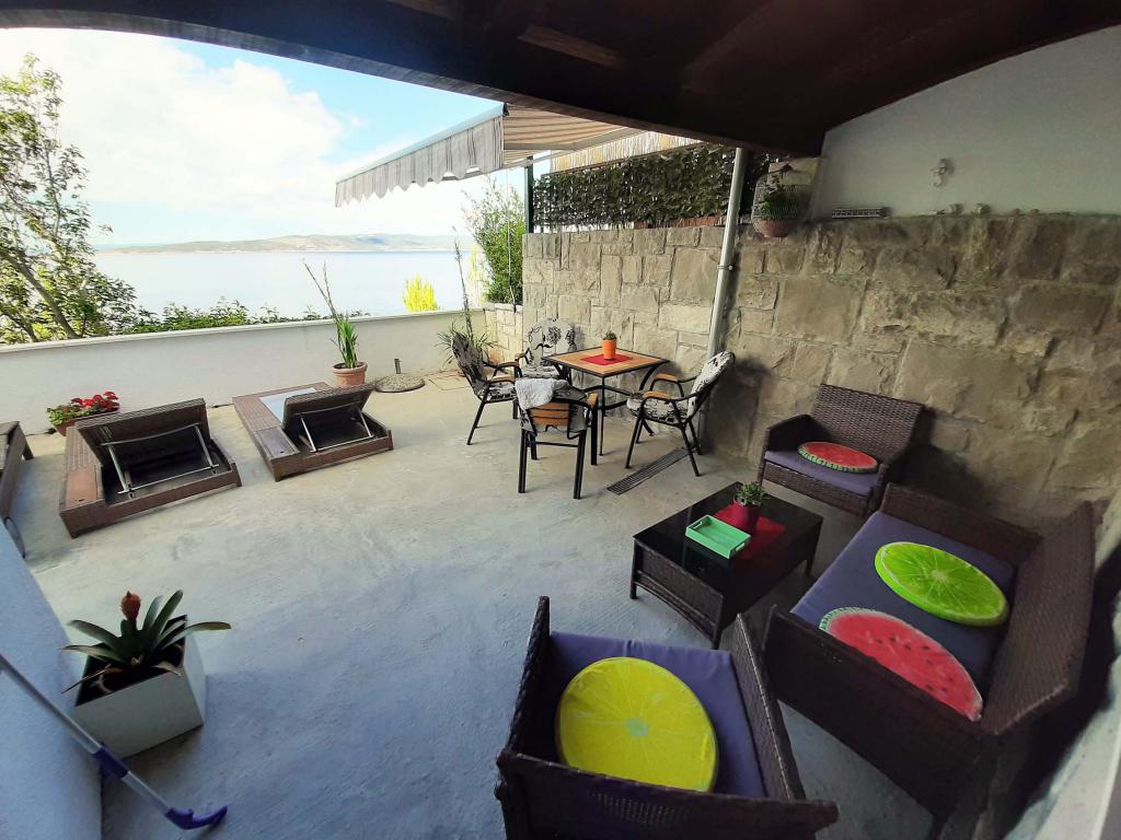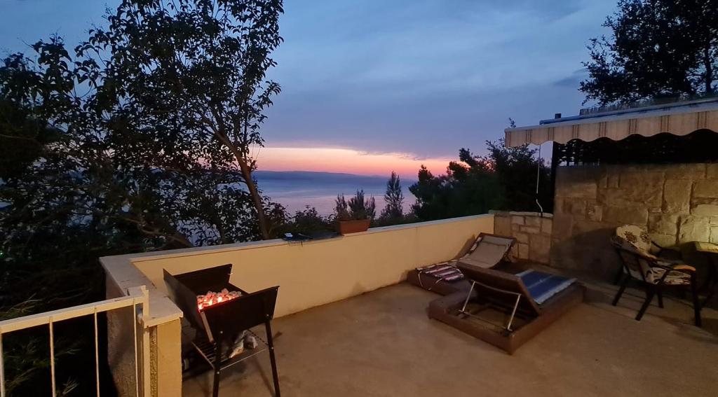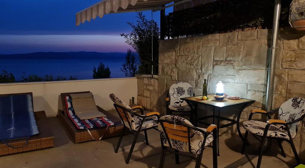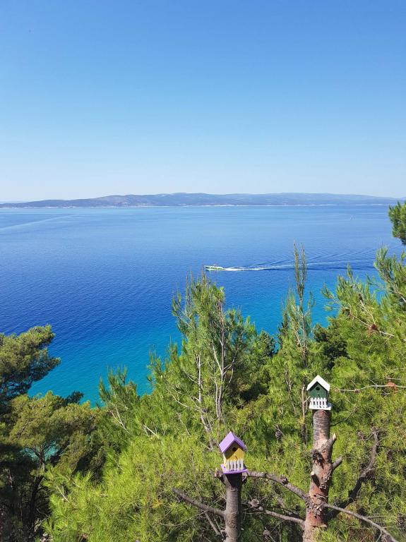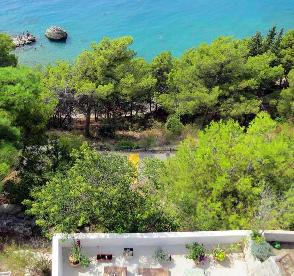 Na novo obnovljen in popolnoma opremljen apartma v mirnem predelu med Baško Vodo in Brela, ki se nahaja v prvi vrsti do morja, nad čudovito plažo. Objekt je od središča obeh krajev oddaljen 10 minut hoje (približno 500 m). Velika terasa s baldahinom in pogledom na morje, 2 dvoposteljni sobi, dve kopalnici in kuhinja z dostopom na teraso. Vse novo. Stanovanje se nahaja v ločenem nadstropju z ločenim vhodom, velik vrt ločen od vseh sosedov. Zasebno parkirišče v senci tik nad hišo.