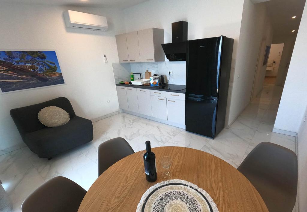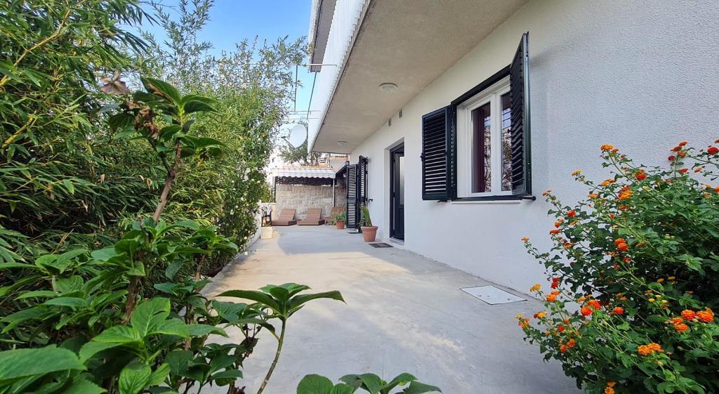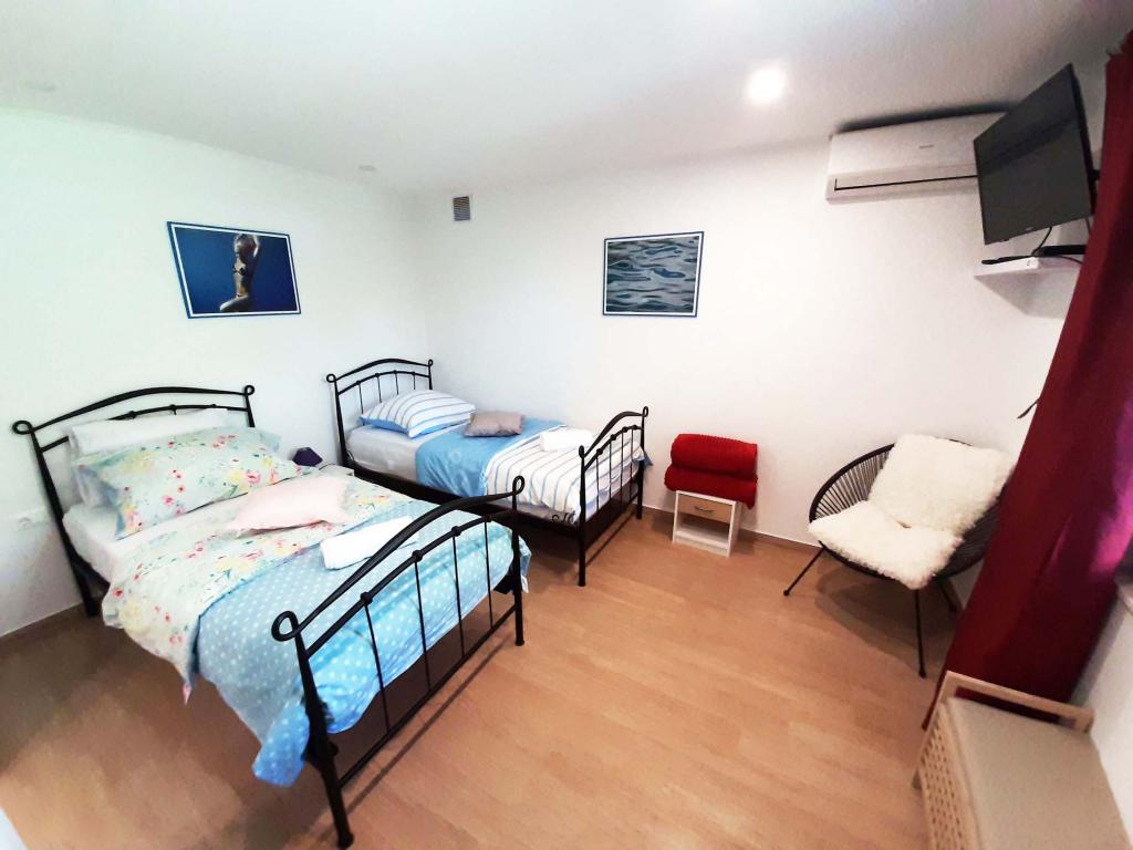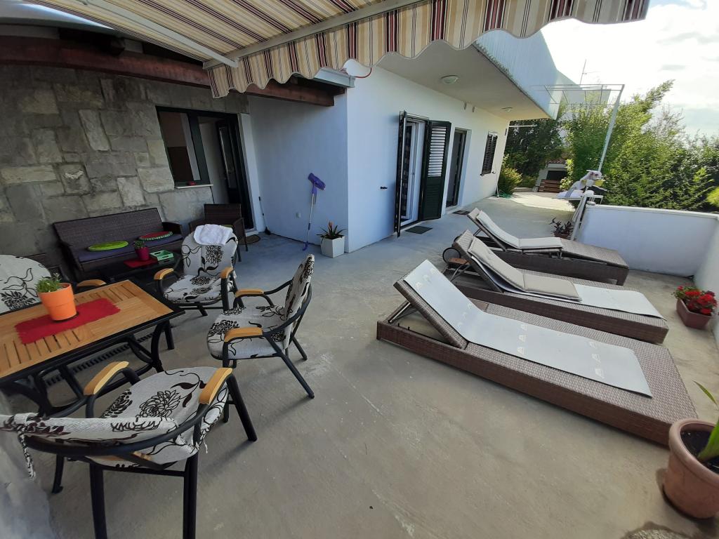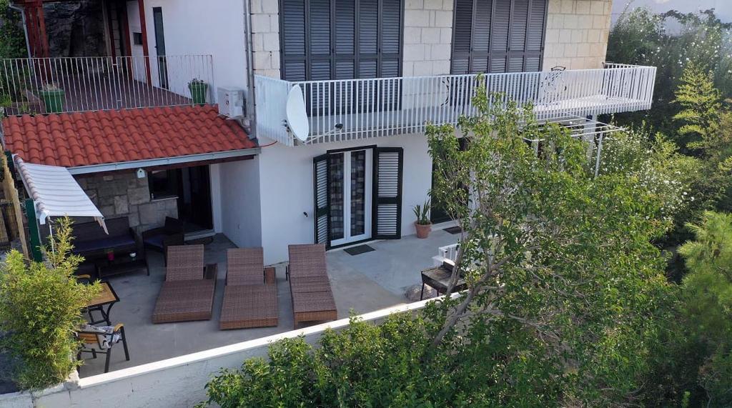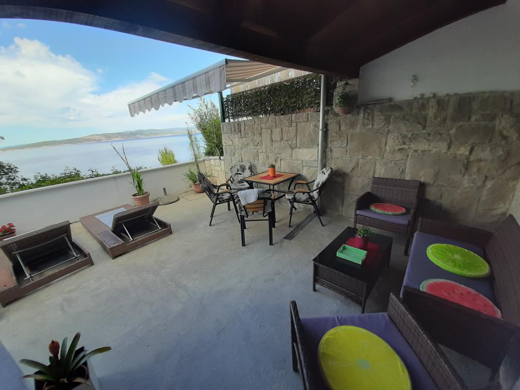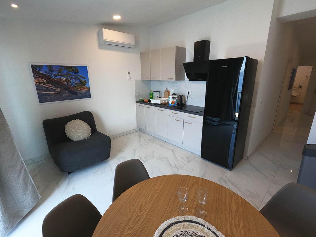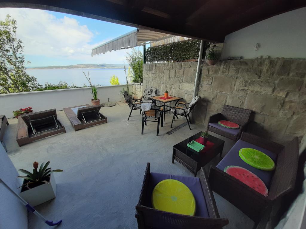 Na novo obnovljen in popolnoma opremljen apartma v mirnem predelu med Baško Vodo in Brela, ki se nahaja v prvi vrsti do morja, nad čudovito plažo. Objekt je od središča obeh krajev oddaljen 10 minut hoje (približno 500 m). Velika terasa s baldahinom in pogledom na morje, 2 dvoposteljni sobi, dve kopalnici in kuhinja z dostopom na teraso. Vse novo. Stanovanje se nahaja v ločenem nadstropju z ločenim vhodom, velik vrt ločen od vseh sosedov. Zasebno parkirišče v senci tik nad hišo.